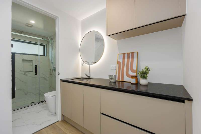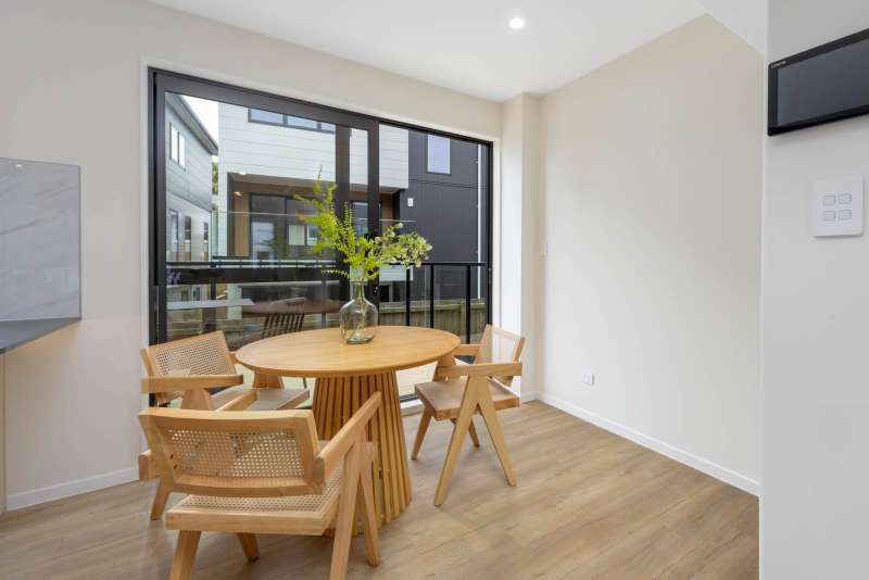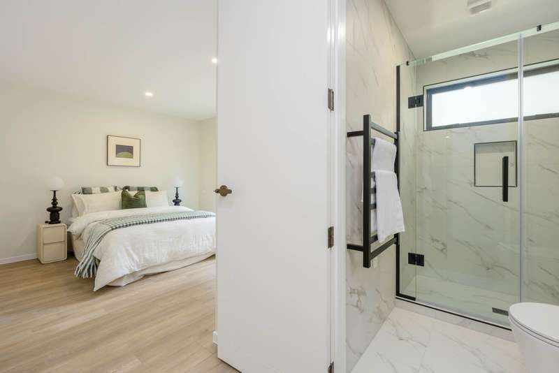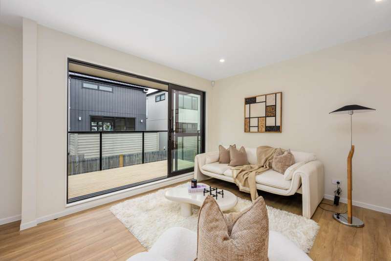 This brand new standalone home offers 4 bedrooms and 3.5 bathrooms (including 2 ensuites) plus an internal-access garage - smartly designed for modern family living. It sits within a boutique development that includes both duplex and standalone freehold homes. Layout: • Ground Level — One bedroom, a full bathroom, separate laundry, and internal-access garage • First Level — Stylish kitchen with Miele appliances; open-plan living and dining opening to dual-aspect outdoor areas (north- and south-facing decks) for all-day light and airflow; plus a guest toilet • Upper Level — Three bedrooms including one ensuite, plus a separate family bathroom; enhanced by a skylight for abundant natural light Kitchen — The Heart of the Home Anchored by an oversized island, the kitchen is designed as the social centre of the home - ideal for casual breakfasts, homework time or pre-dinner drinks while the chef cooks. Premium joinery with Hettich soft-close hardware (hinges & drawers) ensures smooth, durable operation; Miele appliances deliver reliable performance. Excellent sightlines connect the kitchen to both north and south decks, encouraging effortless indoor–outdoor entertaining and cross-breeze ventilation. Key Features: • Freehold title – no body corporate fees • Fully tiled bathrooms, LED lighting, quality insulation, and double-glazed windows • Hansgrohe tapware throughout • PDL (by Schneider Electric) switches and outlets throughout • Hettich soft-close cabinet hardware • Two heat pumps for year-round comfort • Master Build 10-Year Guarantee School Zones & Location In zone for Westlake Boys’ High School, Westlake Girls’ High School, and Campbells Bay Primary. Close to public transport and motorway access; walking distance to Pupuke Golf Course; minutes to Milford Shopping Centre and East Coast Bays beaches. About the Street — Catalina Crescent, Forrest Hill Set on a quiet, established crescent, this address enjoys a calm residential feel with limited passing traffic. The gentle curve of the street naturally slows vehicles, keeping road noise low and the ambience peaceful. Mature gardens and leafy outlooks add to the sense of privacy—perfect for unhurried evening walks and family living—while you’re still just moments from everyday amenities.