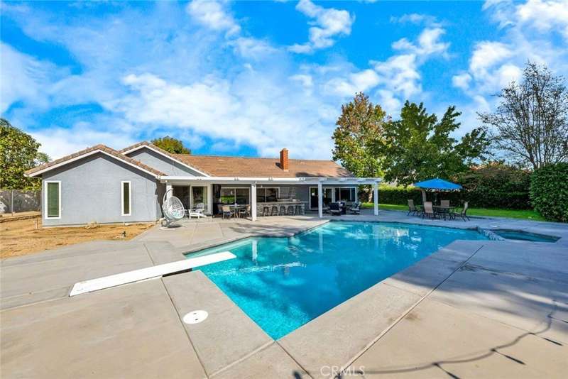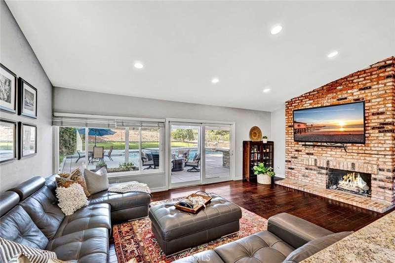 A rare opportunity in the heart of Yorba Linda! This beautifully designed single-level home blends modern comfort with timeless character, featuring vaulted ceilings, rich wood flooring, and abundant natural light throughout. The inviting living and family rooms each showcase a striking floor-to-ceiling brick fireplace—ideal for everyday living and entertaining. The remodeled kitchen opens seamlessly to the dining area and backyard, making indoor-outdoor living effortless. The spacious primary suite enjoys direct sliding-door access to the serene rear yard, soaring ceilings, a walk-in closet, dual-sink vanity, and a walk-in shower. Generously sized guest bedrooms all feature wood floors, and the updated guest bath also offers a dual vanity. Outside, the expansive lot sets this home apart: RV access, a sparkling pool, tennis court, batting cages, built-in barbecue and mature landscaping make this entertainer’s paradise. The generous grounds also offer ample room for an ADU, guest quarters—or even horse facilities—so the possibilities are truly endless. Ideally situated on a quiet flat cul-de-sac in the heart of Yorba Linda, you’re just minutes from the nationally-recognized Richard Nixon Presidential Library and Museum, scenic equestrian trails, local shopping and dining, and the acclaimed Placentia-Yorba Linda Unified School District—renowned for its strong academic performance and award-winning schools. Homes that check all these boxes rarely come to market—don’t miss your chance.