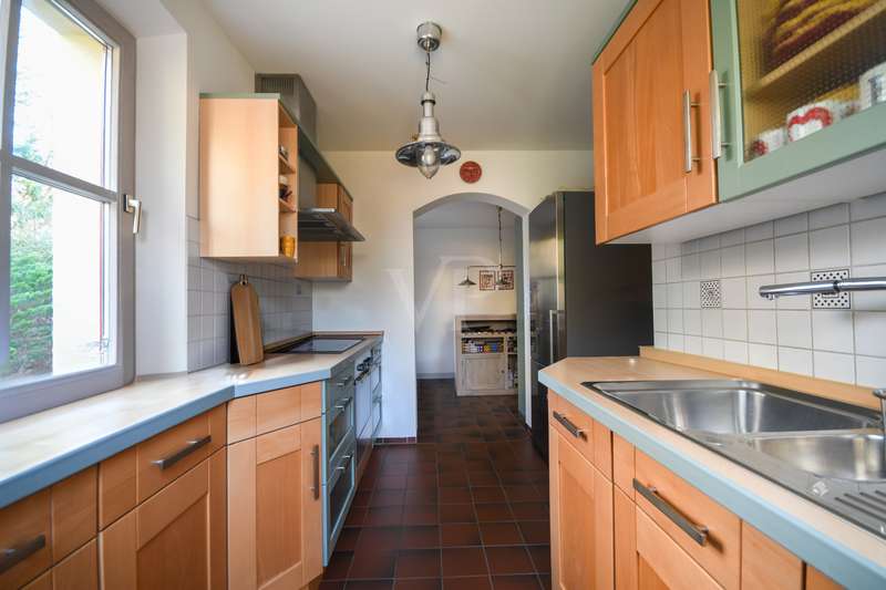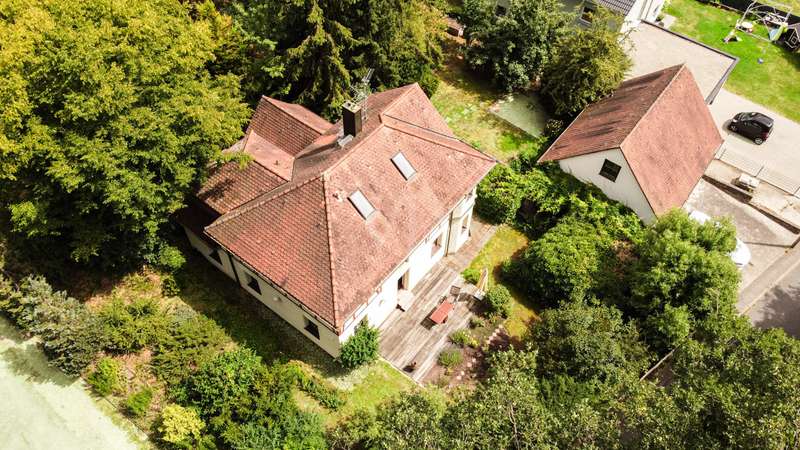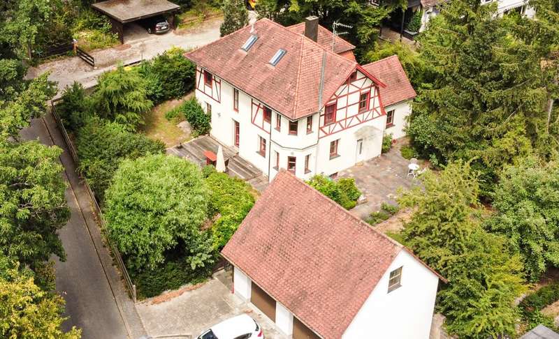 Discover your new home in 360° here: https://von-poll.com/tour/fuerth/7CZ0 This enchanting half-timbered house from the early 1900s combines historical charm with contemporary living comfort. Following extensive renovation in 1995, it offers a special living atmosphere for lovers of individual properties. On a spacious plot of approx. 1,000 m², you can enjoy peace and privacy in the midst of idyllic nature. On the first floor, the inviting living/dining area is complemented by a stylish fireplace that guarantees a cozy atmosphere. Directly adjacent is the kitchen with an additional room that is ideal as a preparation kitchen. There is also a separate TV room or study as well as an unfinished room that has remained unused until now - a perfect opportunity to create a second bathroom, for example. A guest WC completes the space on offer. A comfortable master area with a spacious bedroom, an en-suite bathroom and a dressing room awaits you on the upper floor. There is also a (study/children's) room and a utility room. With minor conversion work, the floor plan can be optimally adapted to the needs of a family (see floor plan ideas). The converted attic offers further space potential and opens up a wide range of possible uses. The lovingly landscaped garden offers an idyllic, sheltered atmosphere. Tall trees and dense shrubs provide privacy, while various seating areas offer space for individual design. Whether for garden lovers, families or for relaxation - here you can enjoy life in the countryside to the full. The double garage is a real highlight: it has a basement, a pit and a loft. Water connections and electrics are already in place - ideal for a wide range of hobbies or as an additional utility room. The house is available by arrangement, probably at the end of 2025/beginning of 2026. Furniture can be taken over by arrangement. The energy certificate is currently being drawn up and will be available for viewing at the latest.