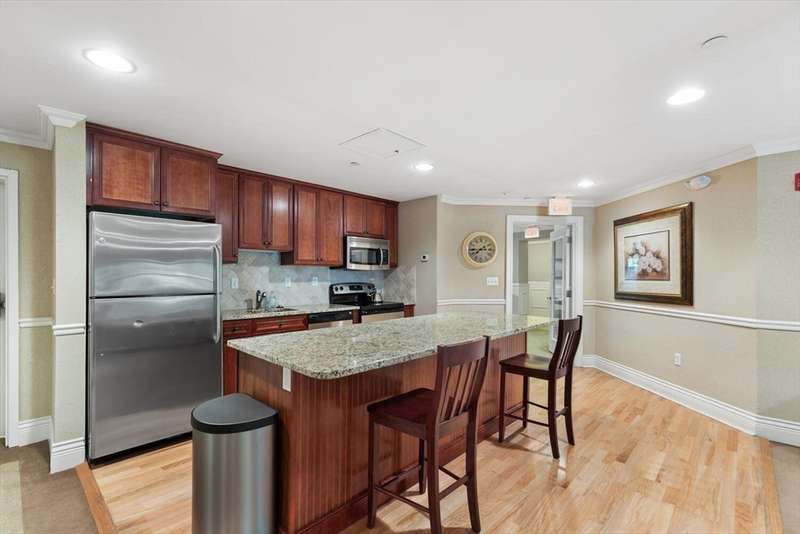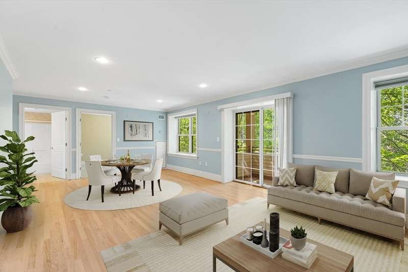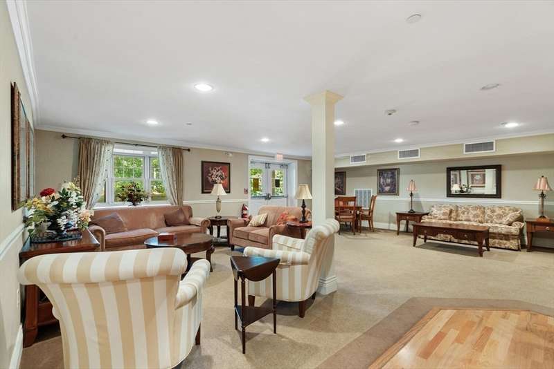 1 car garage! Luxury living in a premier 55+ community! This bright, 3rd floor, end unit, offers the comfort of single floor living in a secure elevator building. The oversized family & dining areas feature hardwood floors, crown molding, and access to a private covered balcony perfect to catch fresh air without leaving home. The open-concept kitchen has a double pantry and great storage. The primary bedroom includes a walk-in closet and spacious walk-in shower. 2nd bedroom is ideal for guests or a home office. Second full bath has a tub offering the best of both worlds with grab bars for safety. Condo features in-unit laundry. The residents of this community enjoy access to a fitness center, an elegant function room, and beautifully maintained outdoor patios. Conveniently located near shops, restaurants and medical centers including Newton-Wellesley Hospital. 2 deeded parking spaces. This condo combines comfort, security, and convenience in one of the most desirable towns.