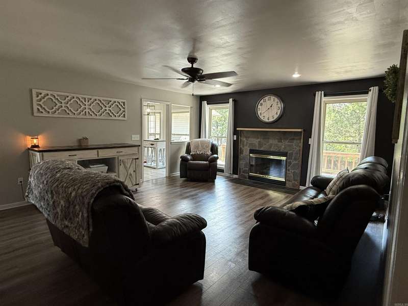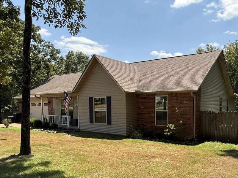 MOVE-IN READY-Beautiful 3 BR, 2.5-BA home on two lots, with room for your boat, RV, etc. Plenty of space for your family and pets. The roof, windows, and HVAC are 7-9 yrs old. The home features a living room with a gas fireplace, a large den with a half bath, and a golf cart garage with storage. Convenient to town, just 5 min. to Dam Site Marina, 3 min. to Thunderbird Golf Course. The stove and dryer can use natural gas or electricity. Entertain on your back deck with piped in natural gas grill. A beautiful cove on Greers Ferry Lake is within walking distance in this neighborhood. The home also had new gutters, water heater, disposal, and Vivant Smart Home Security System installed in 2021. A new gas range w/griddle was installed in 2024. Primary suite features double vanities, his/her closets, jacuzzi tub, and separate shower. The Vivant Smart Home Security System is paid in full and transferable to new owner with a low monthly fee for security coverage on doors/windows/exterior areas and includes surveillance camera above the garage door. Control your home, including the HVAC system, with the Vivant Smart Home. Be sure to check out the interactive CubiCasa Tour.