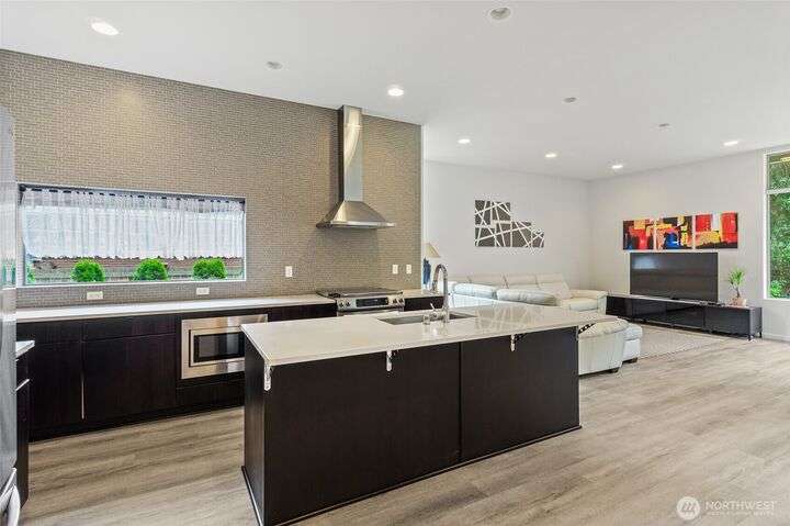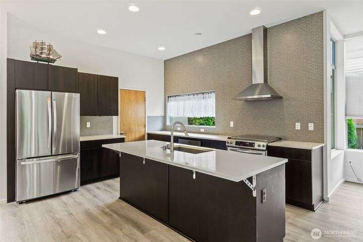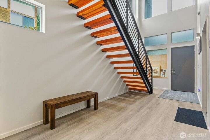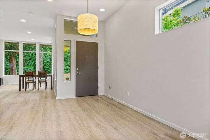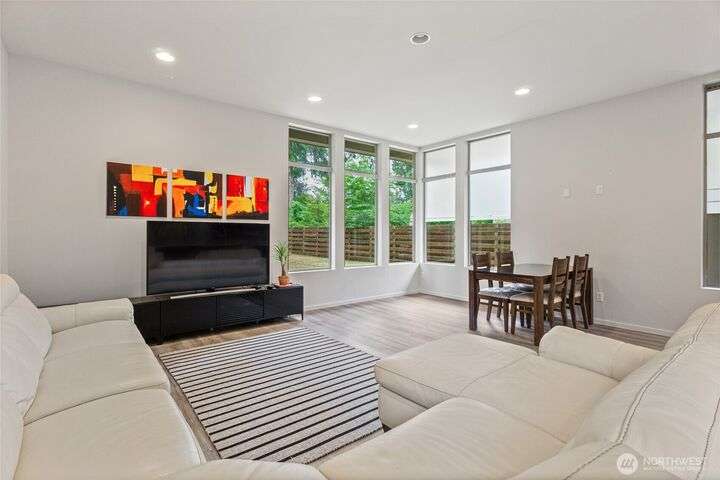 4-bed/2.5-bath home in the Haller Lake neighborhood of North Seattle situated on a large lot w/ spacious yard +2 car garage. The main level features an open concept living room and kitchen. The kitchen is finished with newer SS appliances, pantry, center island w/breakfast bar, and quartz counters. Also on the 1st floor is a guest bathroom and space for a dining table. Top floor has 3 beds, full bathroom, laundry room &primary suite. Primary suite has vaulted ceilings, a walk-in closet, and a wraparound balcony. Other features of the house include a tankless hot water heater, heated flooring, and radiant heat. Terms: 1st, 1mo rent sec deposit. No smoking. No Pets. Credit score: 750+. Renters insurance reqd. No Co-signers. 3:1 income ratio