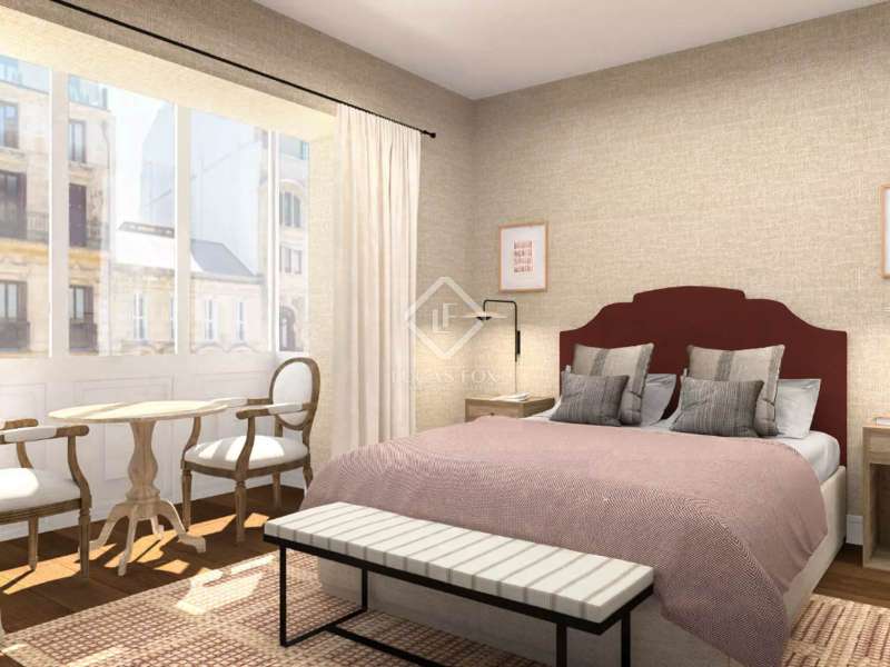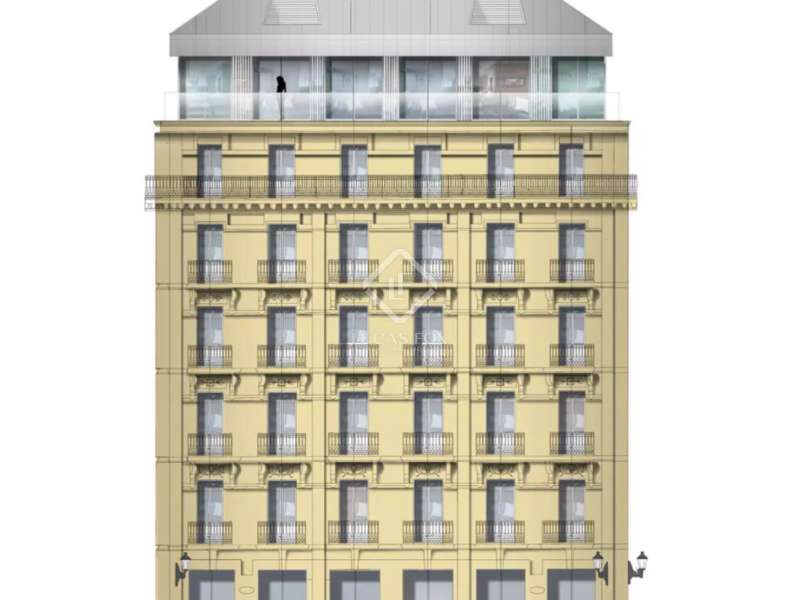 This new development is strategically located on the exclusive Plaza de Bilbao, in the Romantic Area of San Sebastián. The emblematic building, the former Chamber of Urban Property, has been fully refurbished with a concrete structure, but maintaining its beautiful and classic original curved stone façade and modernist entrance, combining the elegance of a building from the beginning of the 20th century with the comforts of the 21st century. The development has a total of 17 apartments, all of them exterior-facing with large windows and views towards Plaza de Bilbao. The building has a commercial premises on the ground floor, storage rooms and there is the possibility of finding a parking space just 50 metres away. The property is very bright as it has two balconies overlooking the Plaza de Bilbao and also a large balcony overlooking the Calle Alfonso VIII, a pedestrian street with quiet terraces, which connects the square with the Catedral del Buen Pastor. The apartment has a surface area of 119 m² built and 92 m2 usable, distributed in a spacious living-dining room, with access to two balconies with frontal views of the fountain in Bilbao square and two double bedrooms, with built-in wardrobes. The main bedroom has an en-suite bathroom and a bay window overlooking Alfonso VIII street. In the corridor there is another complete bathroom. There is the possibility of a third service bedroom that connects with a small laundry room that leads to the courtyard. The distribution of the properties makes the most of the spaces, there is very little corridor and the height of the ceilings gives a lot of space. The refurbishment is being carried out with high quality materials and installations and will have thermal-acoustic insulation throughout. The architecture and engineering project, as well as the construction management, oversee one of the most prestigious companies in the Basque Country, and the main contractor is one of the best Basque construction companies, specialized in this type of rehabilitation. Two prestigious designers have participated in the project, ensuring an elegant, contemporary finish. Please contact us for further information.