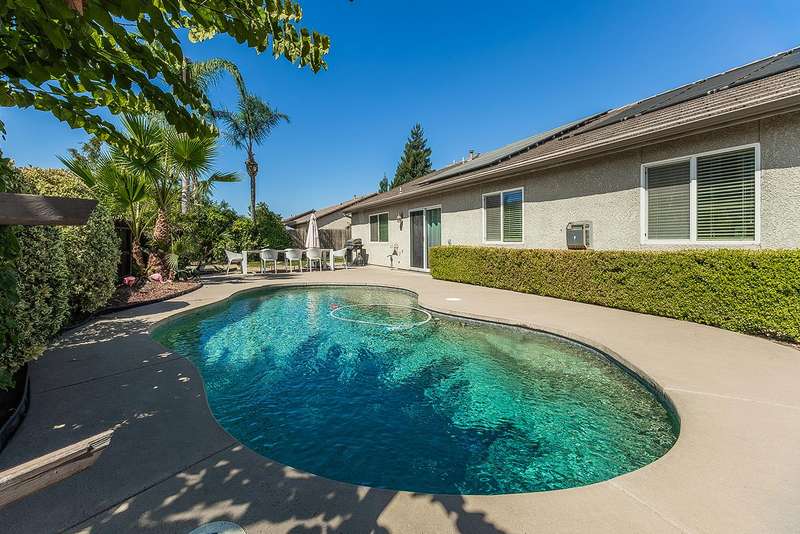 This lovely home has everything you have always wanted at a price you can afford! Owned solar, a heated pebble tec pool, 3bds plus an extra room for an office or exercise room 1.75 bths. and a 3 car garage all positioned on a prime corner lot. Featuring a light and bright open floor plan, a spacious great room with a fireplace, a gourmet kitchen with a gas range, granite counters and ample cabinetry.The primary bdrm has an adjoining bth. Additional spacious bdrms. Tile and luxuryvinyl plank flooring throughout. And of course, walking distance to Award Winning Clovis Schools. Make your appointment today!!
