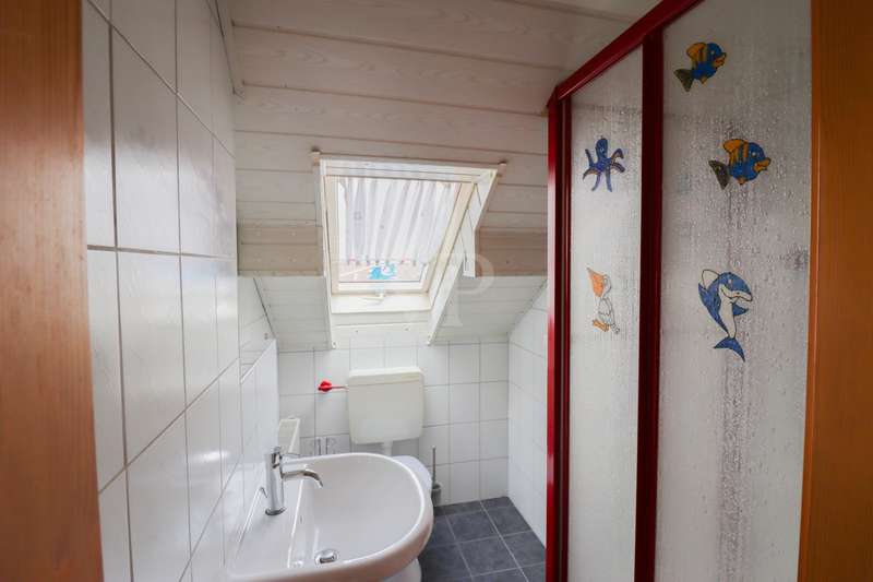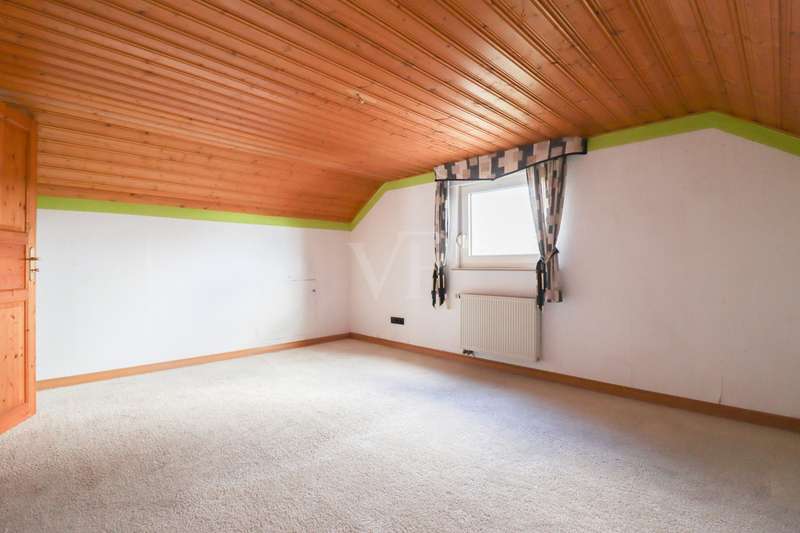 For sale are 2 residential units (upper floor and attic) in a 3-family house built in 1963. The attic was converted in 1995, creating an attractive living space. The property is situated on a spacious plot of approx. 840 m² in a quiet location in Schopfloch. The apartment on the upper floor offers a spacious and bright living atmosphere on approx. 81 m². It has laminate, tiled, PVC and carpeted floors. The large bedroom has a double window and a wooden ceiling. There are also two further children's or study rooms. The daylight bathroom is equipped with a bathtub, a shower, a WC and a washbasin. The spacious kitchen has a fireplace. The bright living room has a Swedish stove and provides direct access to the balcony. The apartment has a good room layout, but is in need of renovation. The attic apartment was converted in 1995 and offers a well thought-out room layout on approx. 43 m². The open-plan living and dining area has a fitted kitchen and a Swedish stove. There is a practical storage room with windows that were replaced in 2007. The large bedroom is carpeted. The daylight bathroom is equipped with a shower, a WC, a washbasin and a built-in cupboard. There is also an intermediate electricity meter. Both apartments are heated by a gas heating system with hot water tank, which was renewed in 2019. A separate heating system is available for the first floor. The upper floor has double-glazed windows from 1986 with shutters. The use of the residential building is currently regulated by a transfer agreement, whereby the upper and attic floors as well as the first floor each have their own division with garden use and cellar room use. A communal laundry room is available in the basement. The declaration of division is currently being applied for. The property is in need of renovation and offers you the opportunity to design/upgrade it according to your own ideas. For further information and a viewing, please do not hesitate to contact us at any time!