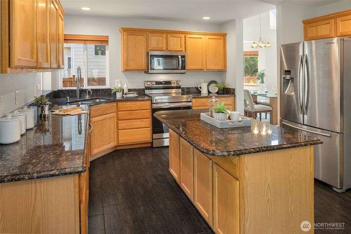 This meticulously maintained home nestled in the serene Parke Meadows community offers a blend of comfort and relaxation. Featuring 4 bedrooms + a versatile bonus room ideal for entertaining or as 5th bedroom. Updates include newer roof, high-efficiency furnace, carpeting, appliances, and central A/C for year-round comfort. Entryway opens to high ceilings & expansive windows, ensuring abundant natural lighting. The Kitchen features granite countertops, large island, pantry, and newer appliances. Primary suite includes double closets & impressive five-piece bath. Guest bedroom on the main level. Patio space with lighted gazebo set amidst landscaped gardens, ideal for indoor-outdoor living. 3-car garage offers ample storage. Pre-inspected!