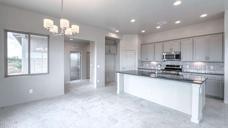 New In-Town Community! 2051 sf, 4br/2ba home with 3-car garage on an over 1/4 acre in-town lot and walking distance to stores & schools. Kitchen features Grey painted cabinets with hardware, soft-close, and 5x5 backsplash, granite countertops throughout with under cabinet lighting, pendant lights over the island. Bathrooms feature executive height cabinets, tile shower wall surrounds. Wood look tile throughout with upgraded carpet and pad in the bedrooms with 3.25'' baseboard. Primary suite has large walk-in closet and double sinks. Pre-wires and bracing for ceiling fans & wall mount tv, plumbed for soft water with fridge/freezer outlet in garage. Front yard irrigation with timer. Energy Star Certified, HERS Rated & Environments for Living Guaranteed Home.