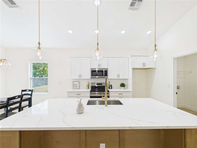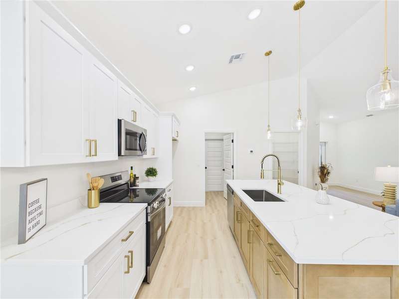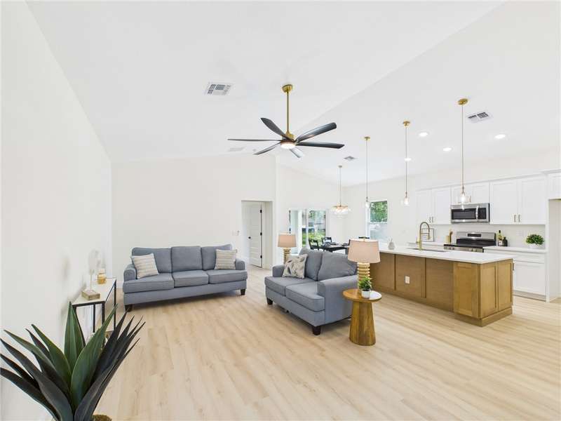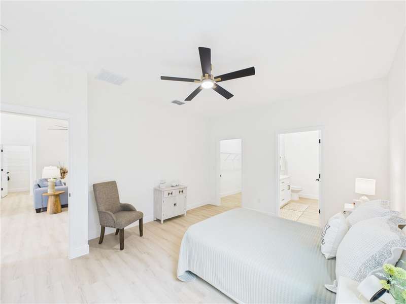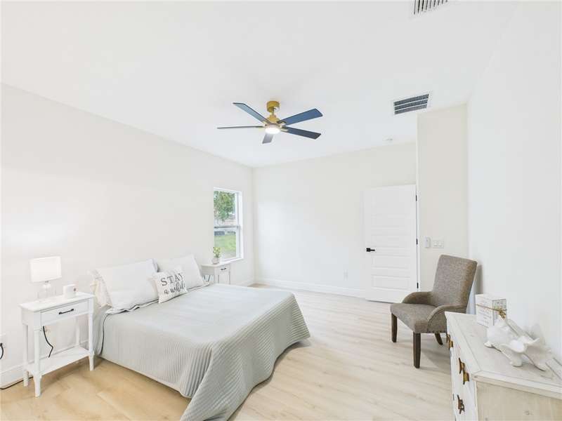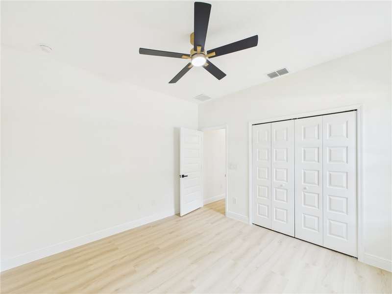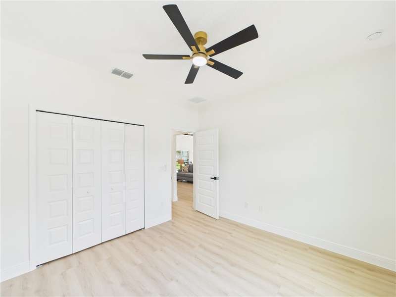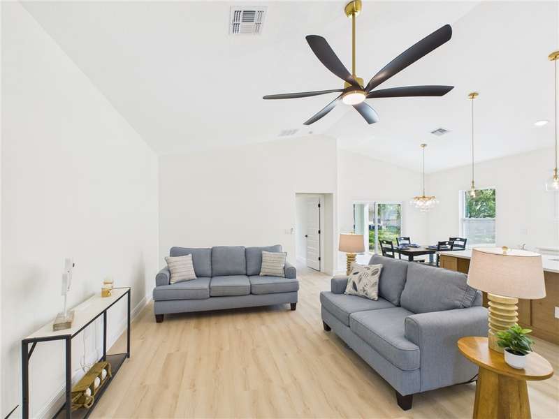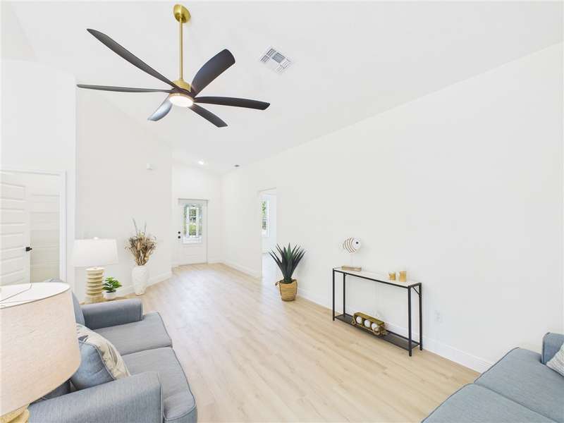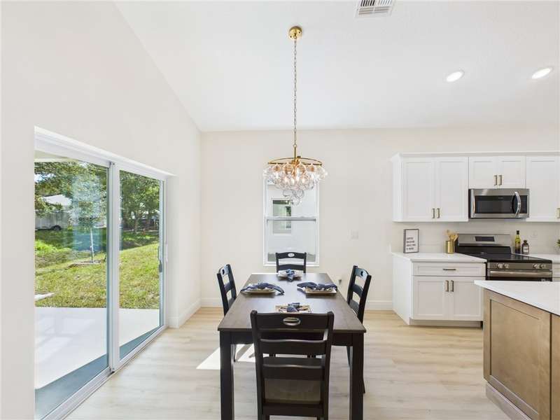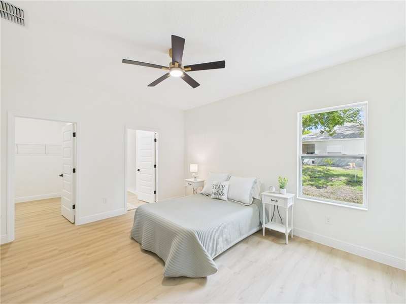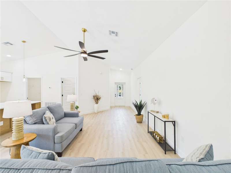Come see this amazing newly built 3/2 home and experience quality builder upgrades. On a corner lot, with county water, the upgrades in this home make it move-in ready. Luxury vinyl plank flooring throughout, soft close shaker cabinetry in both baths and kitchen, topped with luxury quartz counters, IMPACT resistant glass doors and windows, modern fans, lighting fixtures and garage door opener are already installed! With easy access to CR 512, you are minutes away from the Indian River Lagoon and our fabulous Beaches! Seller will credit buyer $1500 for refrigerator purchase upon closing!