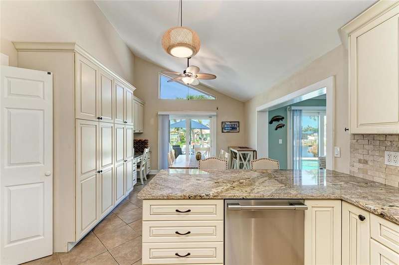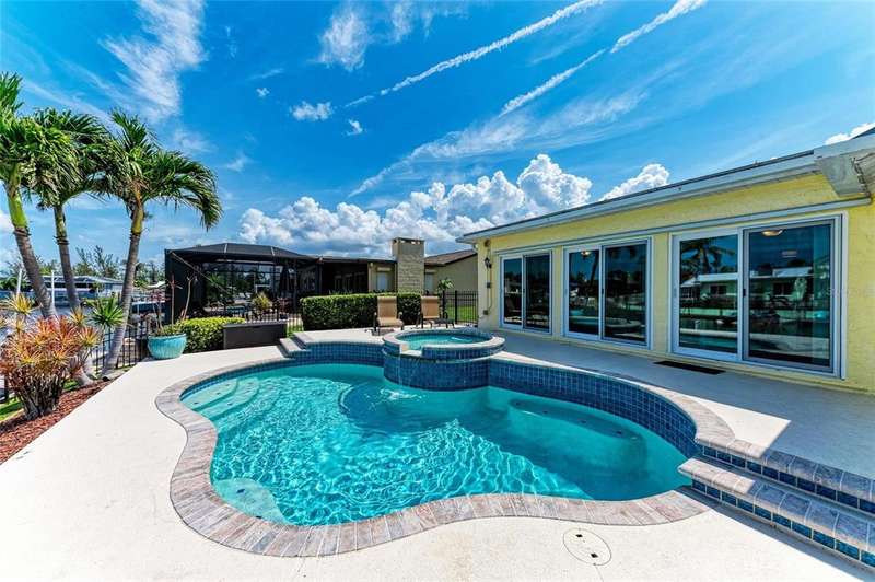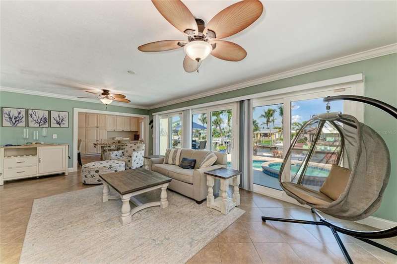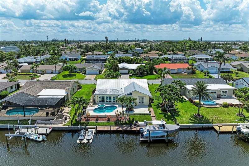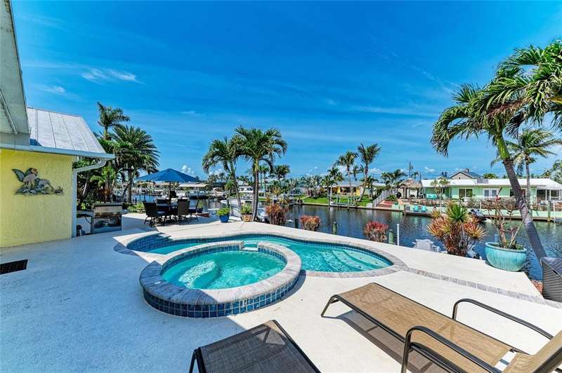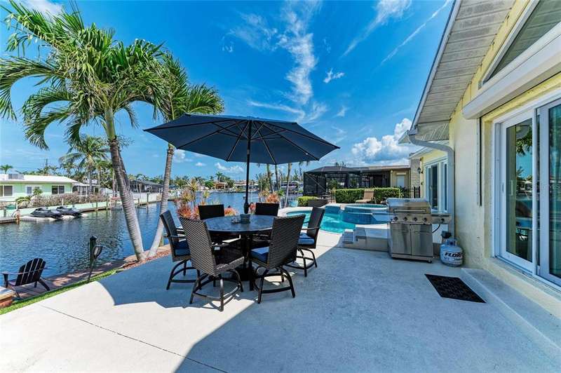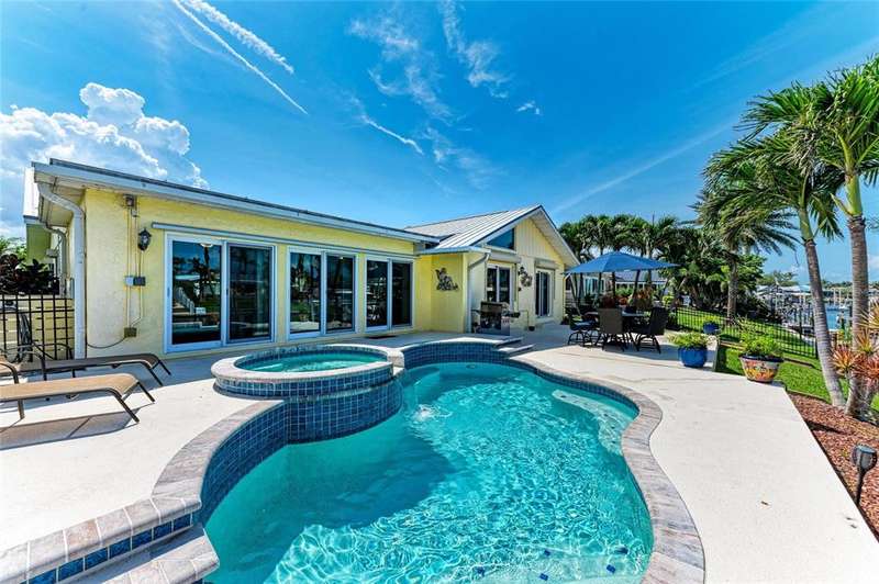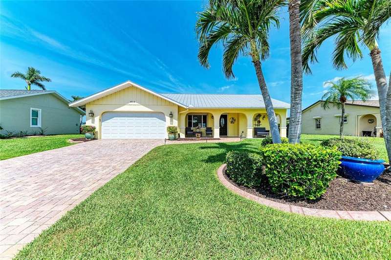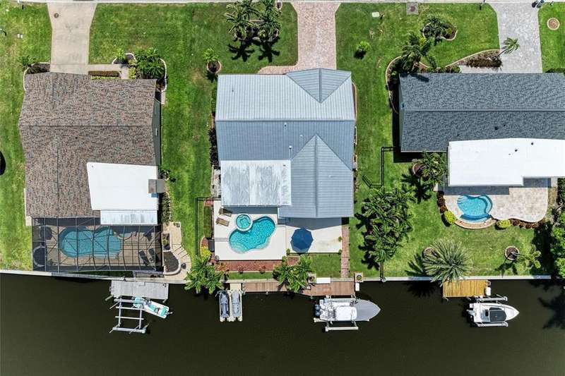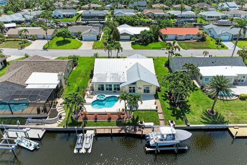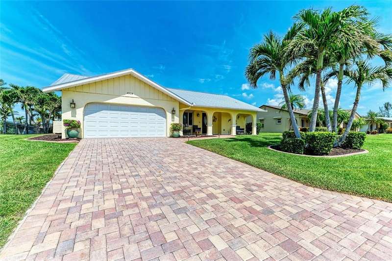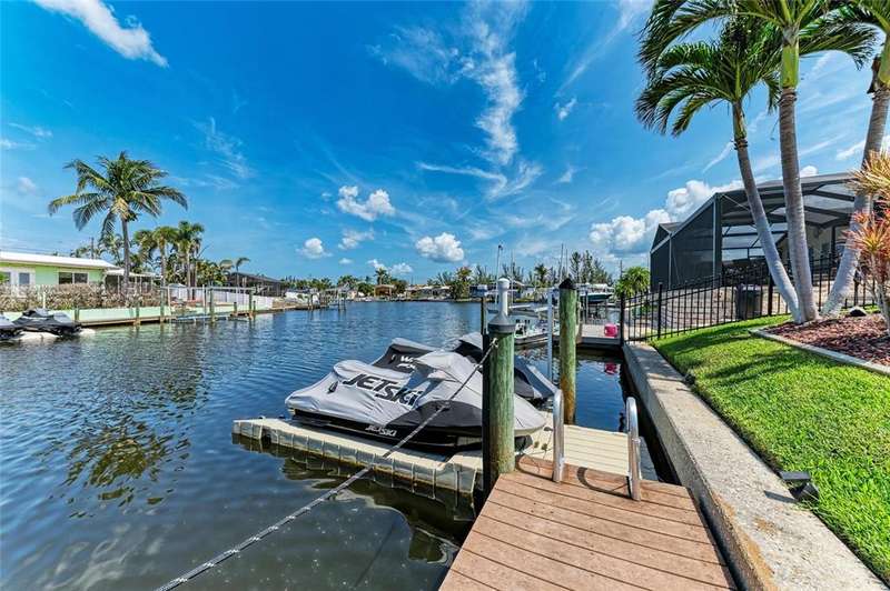 Under contract-accepting backup offers. ** $25,000 price improvement ** Welcome to your slice of Paradise with this beautifully well maintained waterfront residence in Coral Shores East only 3 miles to the sandy beaches of Anna Maria Island. This home experienced NO flooding in 2024 storms. ( Recent flood quote is only $1600) This home offers canal front living with direct access to the Intracoastal Waterway and Gulf of Mexico from your private composite 50ft dock with 10,000lb lift with power and water and fish cleaning table. There is also new dock lighting. Bring your powerboat or sailboat with with NO bridges out to big water. Imagine relaxing and soaking up the Florida sunshine in your pool/spa on the expanded patio (24’x18’) offering amazing sunset views. The pool was recently redone with new pebble-tech, coping, a new cartridge filtration system and a new pool pump! The pool is self cleaning and has a new heat pump and cooling feature with remotely controlled pool app allowing you to fully control the pool from anywhere! The entire lot is landscaped beautifully with lush grass, shrubs, potted plants, trees, and a well for irrigation. The backyard is surrounded by a beautiful fence and features an abundance of native plants and trees. The newly renovated kitchen features gorgeous wood cabinets, granite counter space for all your cooking needs and a large wall unit with pullouts and lots of storage. Crown moulding surrounds all rooms of this Brand new sliding hurricane doors (5) were installed in the family room and rear bedroom as well. The AC compressor has been replaced in the last year as well as the hot water heater. All plumbing fixtures and lighting fixtures have also been replaced in the last year. The electrical panel as been replaced with a 200amp main. All exterior windows that are not impact have roll-down shutters and a metal roof to keep your home secure from storms. The garage door was recently replaced with a hurricane resistant model. This home is NOT a "Member" of the HOA allowing for short term rentals. If you are looking for an amazing well maintained waterfront home, minutes to the beaches that allows you the benefit of short term rentals with the peace of mind of reduced flooding risks... you have found it !! Schedule your private showing today! This home will not disappoint!