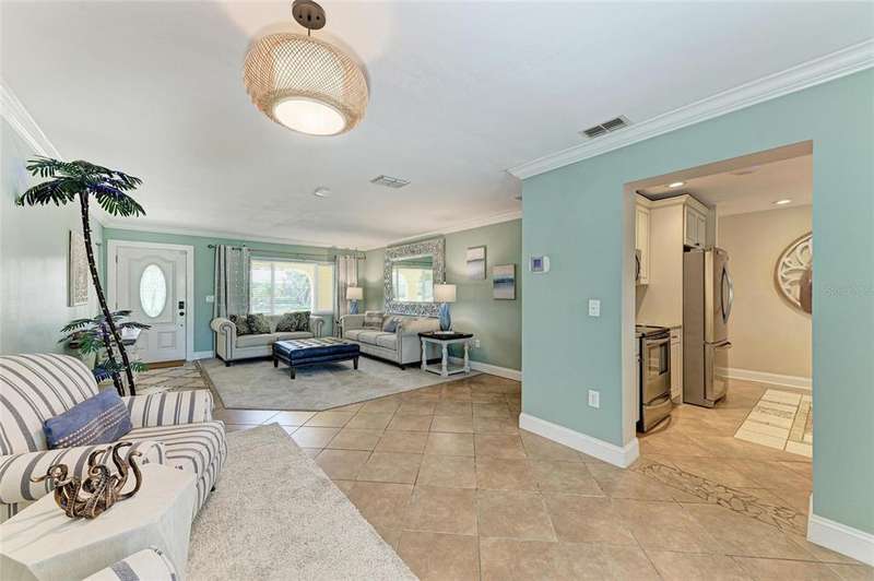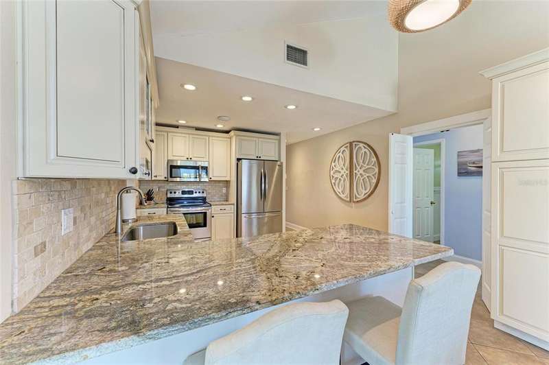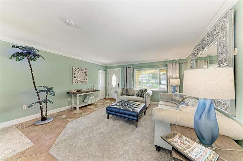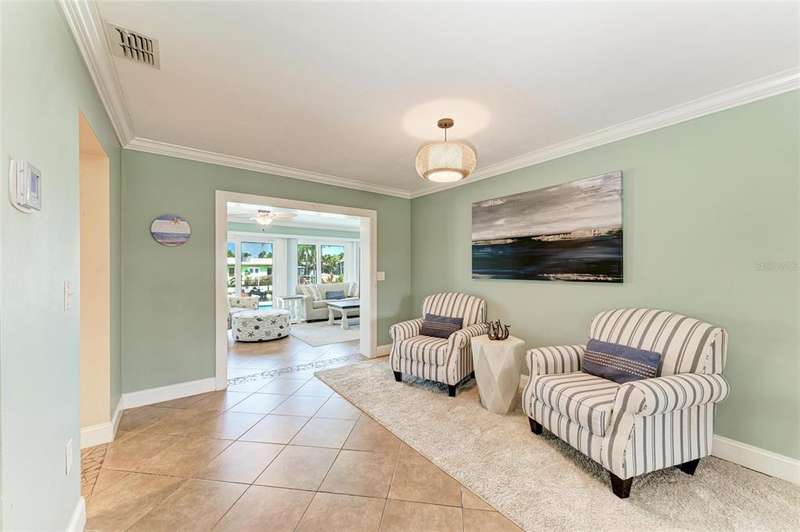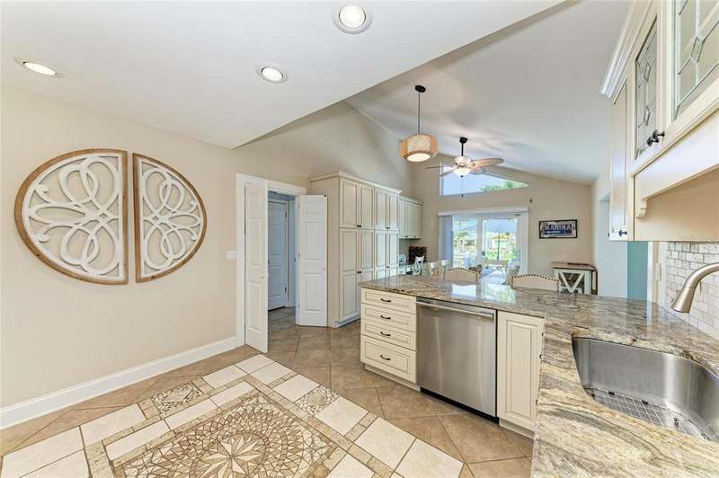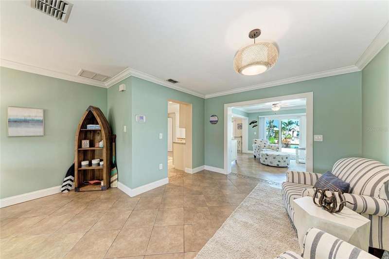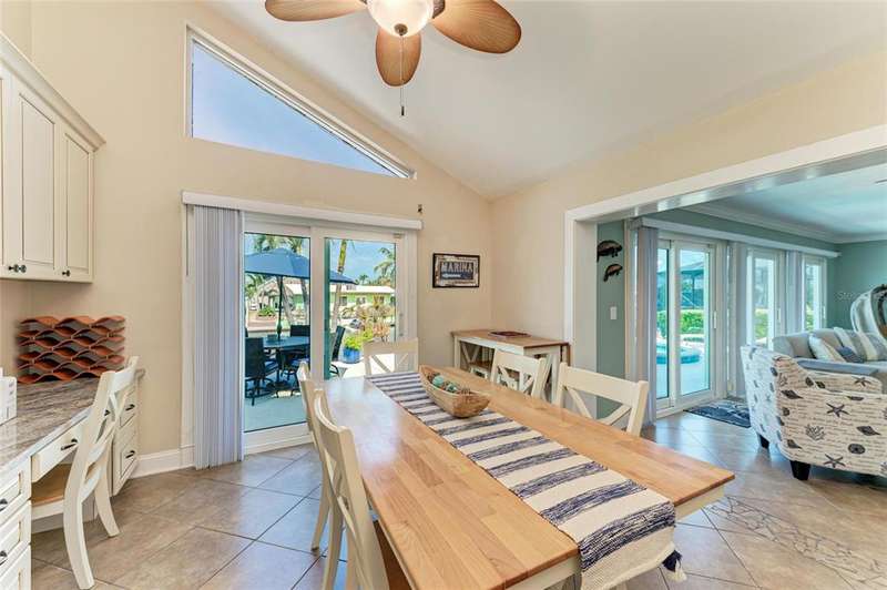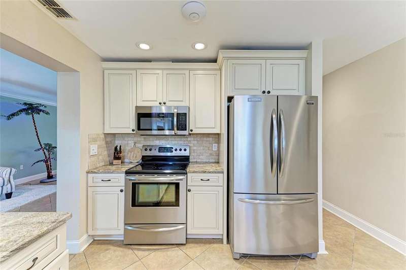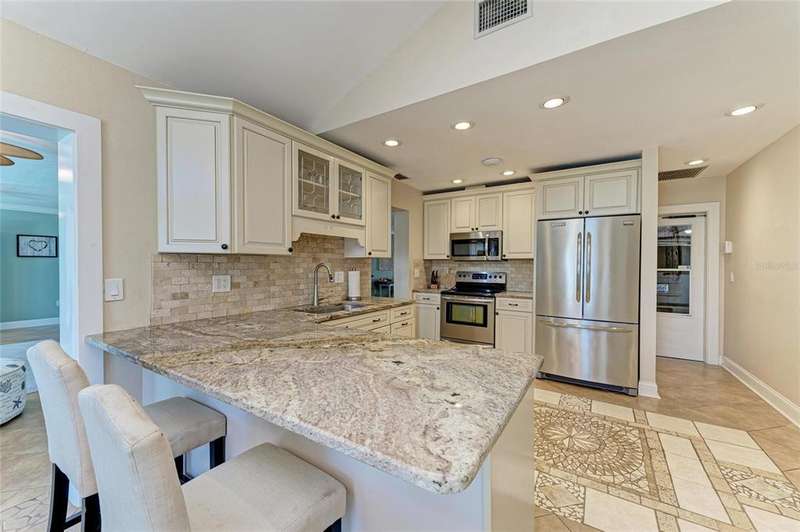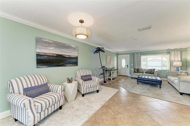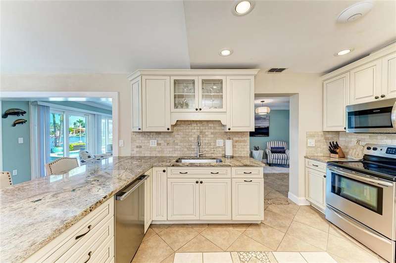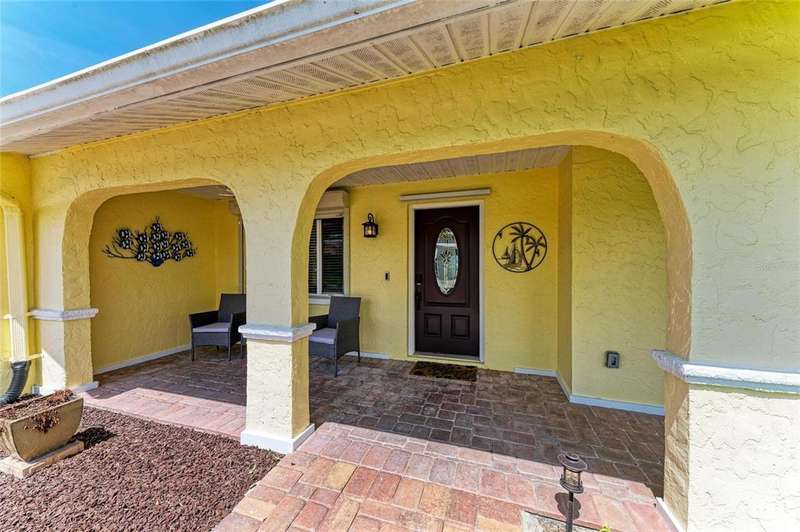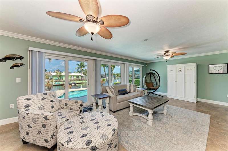 Under contract-accepting backup offers. ** $25,000 price improvement ** Welcome to your slice of Paradise with this beautifully well maintained waterfront residence in Coral Shores East only 3 miles to the sandy beaches of Anna Maria Island. This home experienced NO flooding in 2024 storms. ( Recent flood quote is only $1600) This home offers canal front living with direct access to the Intracoastal Waterway and Gulf of Mexico from your private composite 50ft dock with 10,000lb lift with power and water and fish cleaning table. There is also new dock lighting. Bring your powerboat or sailboat with with NO bridges out to big water. Imagine relaxing and soaking up the Florida sunshine in your pool/spa on the expanded patio (24’x18’) offering amazing sunset views. The pool was recently redone with new pebble-tech, coping, a new cartridge filtration system and a new pool pump! The pool is self cleaning and has a new heat pump and cooling feature with remotely controlled pool app allowing you to fully control the pool from anywhere! The entire lot is landscaped beautifully with lush grass, shrubs, potted plants, trees, and a well for irrigation. The backyard is surrounded by a beautiful fence and features an abundance of native plants and trees. The newly renovated kitchen features gorgeous wood cabinets, granite counter space for all your cooking needs and a large wall unit with pullouts and lots of storage. Crown moulding surrounds all rooms of this Brand new sliding hurricane doors (5) were installed in the family room and rear bedroom as well. The AC compressor has been replaced in the last year as well as the hot water heater. All plumbing fixtures and lighting fixtures have also been replaced in the last year. The electrical panel as been replaced with a 200amp main. All exterior windows that are not impact have roll-down shutters and a metal roof to keep your home secure from storms. The garage door was recently replaced with a hurricane resistant model. This home is NOT a "Member" of the HOA allowing for short term rentals. If you are looking for an amazing well maintained waterfront home, minutes to the beaches that allows you the benefit of short term rentals with the peace of mind of reduced flooding risks... you have found it !! Schedule your private showing today! This home will not disappoint!
