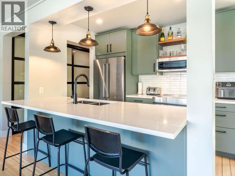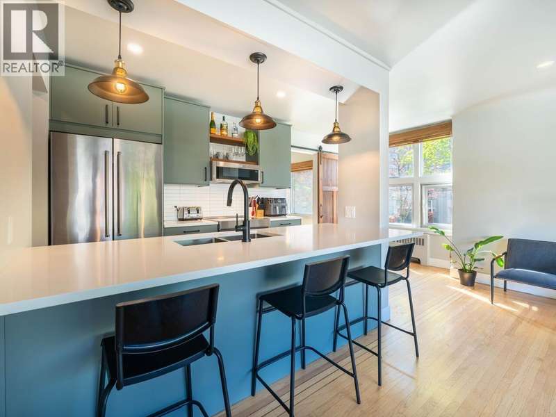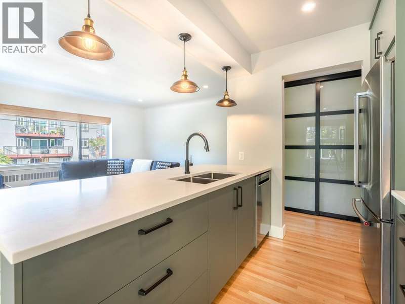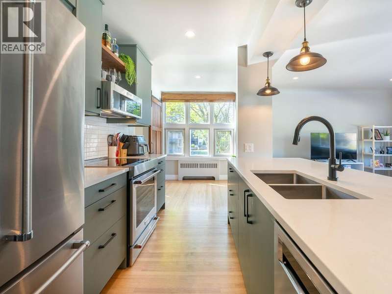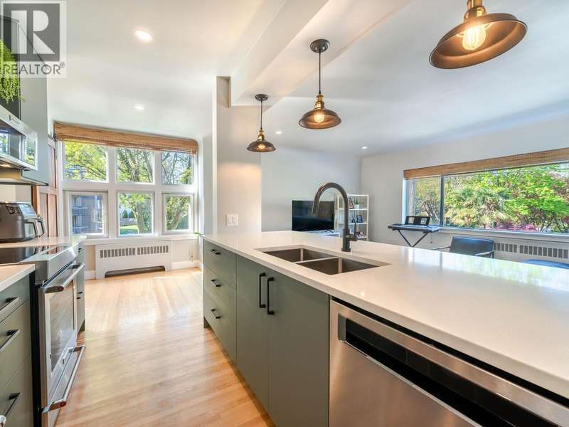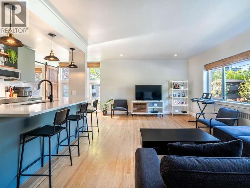 Welcome to this bright 2 bed, 2 bath corner unit in the Prince Charles Co-op, ideally located in Fairview. With 979 square ft of updated living space, this home features 8'2" ceilings, restored oak floors, and custom Levolor blinds. The open-concept kitchen includes KitchenAid stainless steel appliances, an induction cooktop, large pantry, ample cabinetry, & an eat-up bar-perfect for daily use or entertaining. Enjoy in-suite laundry plus access to shared facilities. Relax in the quiet garden courtyard. Though there´s no elevator, the unit is just one easy flight up. Co-op ownership (35% down) comes with major savings: no PTT, EHT. This adult-oriented 19+ building is pet-friendly and located near shops, cafes, UBC, beaches, and the upcoming SkyTrain extension. (id:58403)