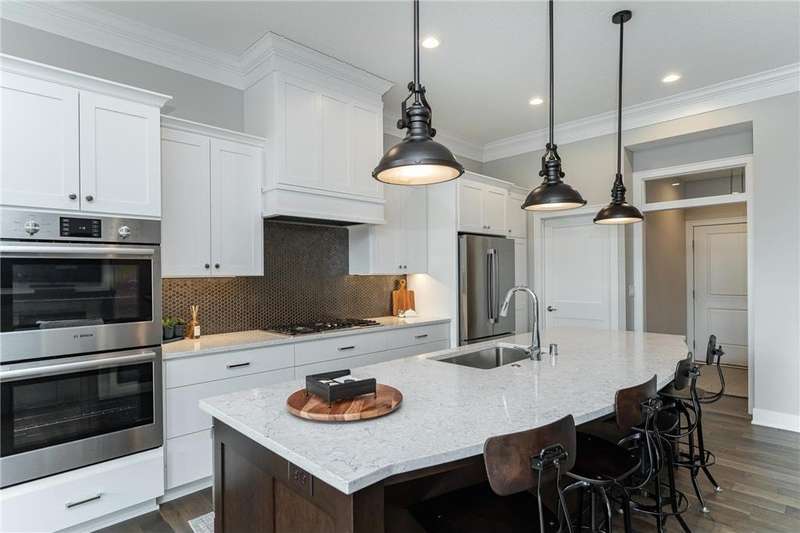 This beautiful slab, two story has a unique layout and stunning finishes! A stone wrapped porch welcomes you in the two story foyer, mudroom, and laundry room, just off the zero entry garage. The main level hosts a modern kitchen with gas stove and custom hood, spacious dining room, living room with fireplace, powder room, rear covered patio, and the primary ensuite has a relaxing bedroom, double vanity quartz tops, and zero entry walk-in shower, along with a generous walk-in closet. The upper level offers a expansive, open loft area, two large bedrooms, a fourth bedroom/office, full bath, a second washer/dryer hookup closet with storage, and a flex room, which is suitable for just about any use! The garage features the utility room, epoxy coat floor, gas line for heater, LED lights, prewired for EV charger unit and a floor drain, You won't see another one just like this!