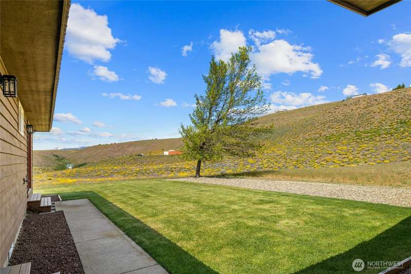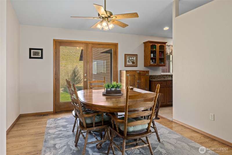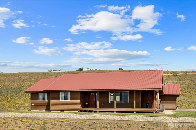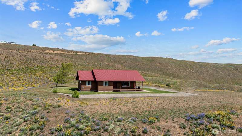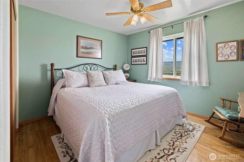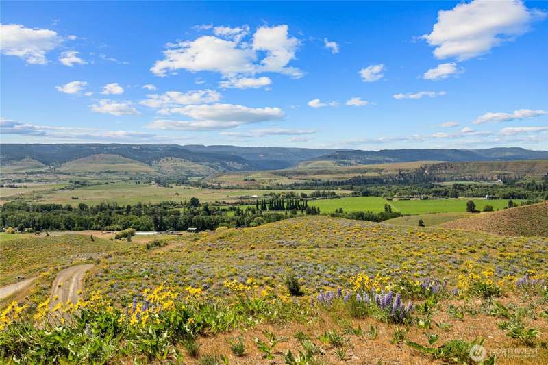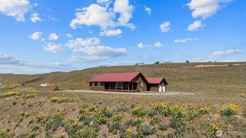 A truly exceptional property perched on a 50-acre private plateau,offering sweeping views of the valley and surrounding mountains.Inside, you'll find warm oak hardwood and tile flooring,an efficient kitchen with hard-surface countertops and custom tile backsplash,dining room that opens to the outdoors through French doors.The vaulted living area features windows that frame the landscape.The primary suite boasts an updated bathroom with a walk-in tiled shower and dual vanities with hard-surface countertops. A finished 24' x 24' two-car garage is heated.Outside,the lawns are maintained effortlessly with a sprinkler system.Relax under the covered porches and take in the ever-changing vistas that stretch as far as the eye can see.