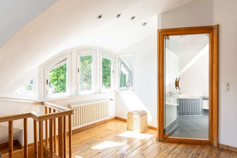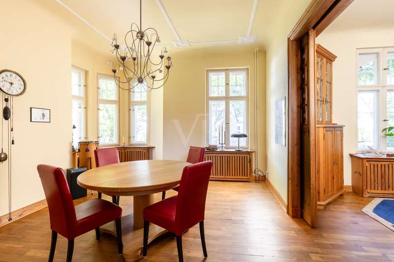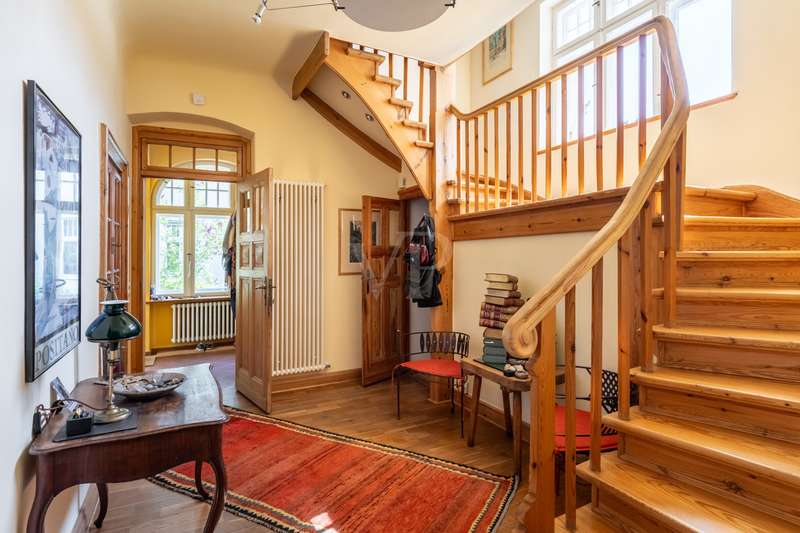 Welcome to this unique Art Nouveau villa dating back to 1912 - an architectural masterpiece that combines historical charm with contemporary living comfort. Nestled in a peaceful, green setting and lovingly modernized since 1994, this house today presents itself as a stylish retreat with high standards of quality and aesthetics. The building impresses with its elegant façade, typical Art Nouveau elements and harmoniously integrated modernizations, which preserve the house's authenticity while meeting modern living standards. Large windows, high ceilings and carefully preserved original details create a light-flooded, inviting atmosphere in all living spaces. This villa is more than just a house - it is a lifestyle. Let yourself be enchanted by the unique charm of this property and experience living at the highest level in a historic ambience. Arrange a viewing today and discover the special aura of this extraordinary property.