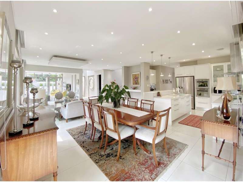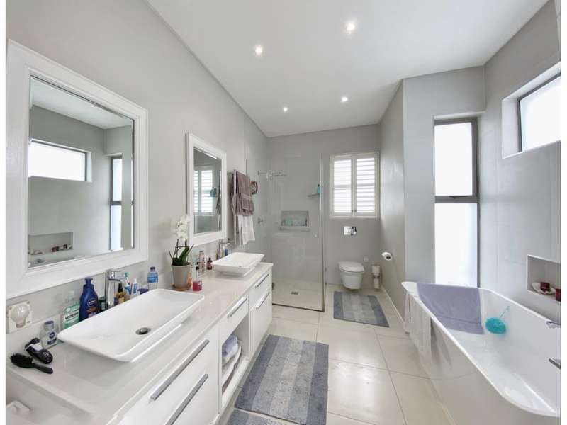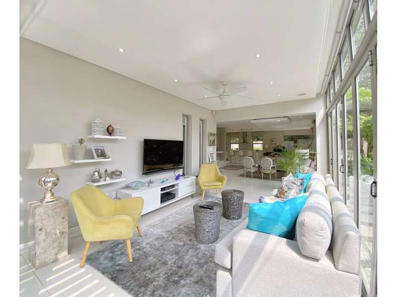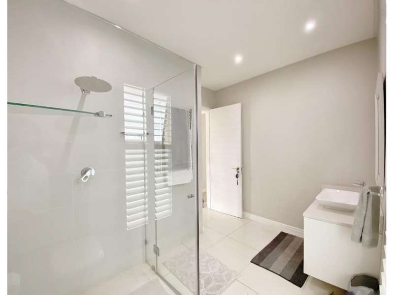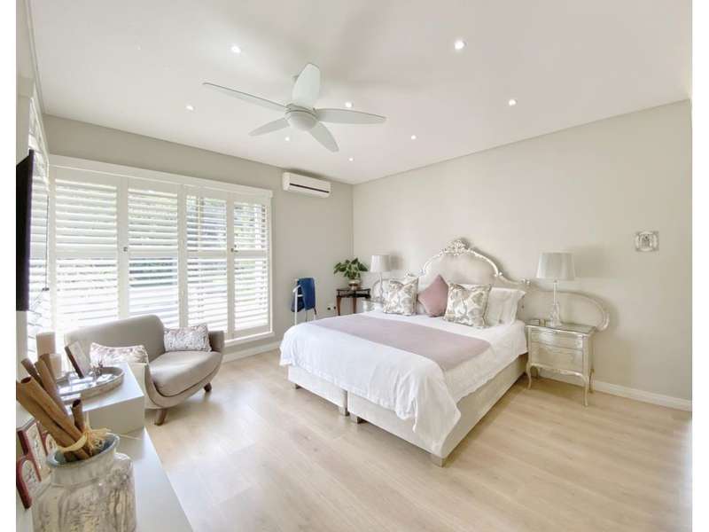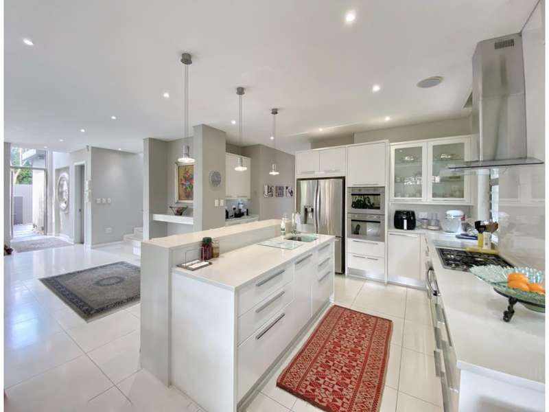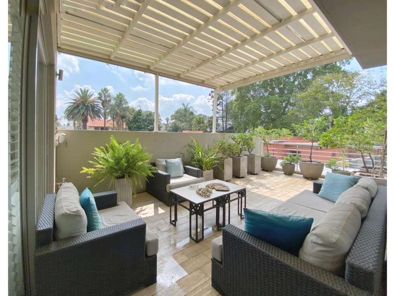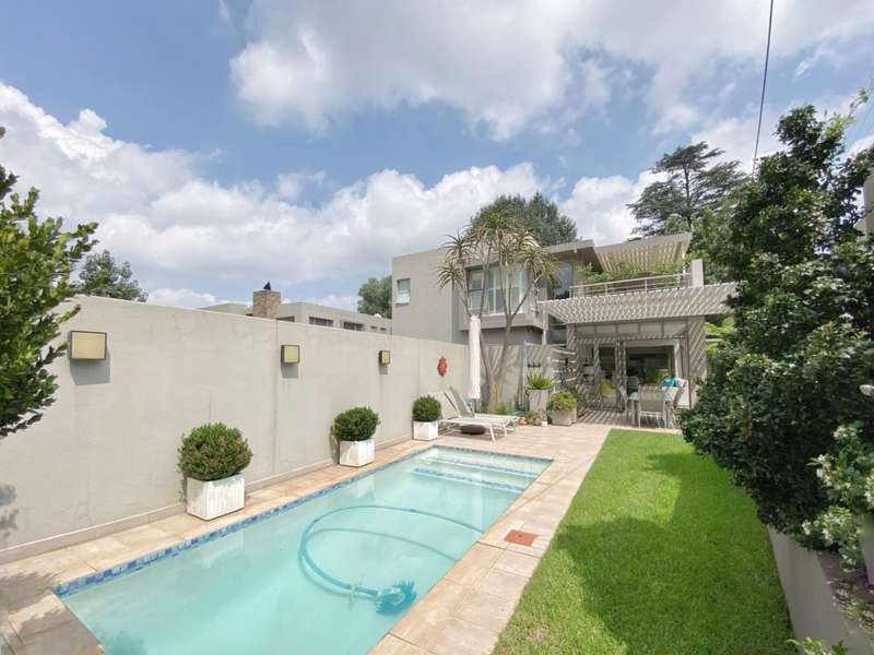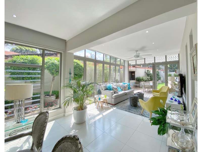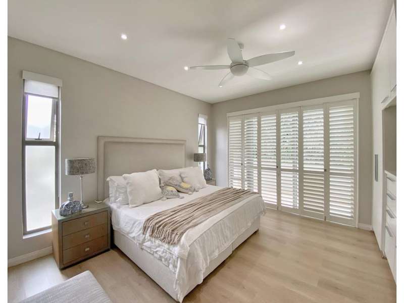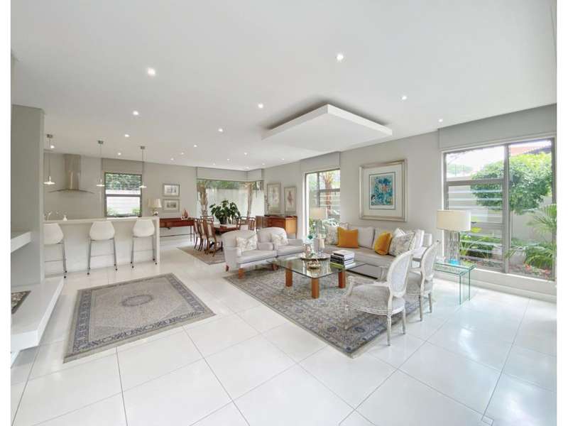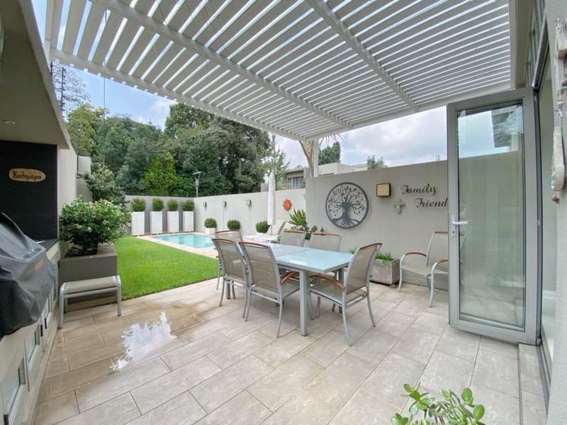 For the connoisseur looking to fulfil their highest expectations, this sophisticated cluster-style residence presents a semi-open plan floor design with high gloss, upmarket finishes to further enhance the elegant features of this home! One is welcomed through one of four well-proportioned receptions - with gas fireplace in the living room - flowing onto the warm wood kitchen complimented with Quartz tops and high gloss finishes. The 3 bedrooms (all en suite) feature generous proportions lit with natural lighting, and are serviced by the 3 modern bathrooms. The upstairs study is an added feature for those looking for some work-from-home space. The American shutters throughout and fitted blinds further add to the upmarket features of this home. Centrally located with access-controlled entry with only a few neighbouring homes, one can wine and dine family and friends through to the open patios overlooking a pool and landscaped gardens. With an eco-friendly design and forward-thinking concepts, this residence also offers an inverter, prepaid electricity, computerised irrigation, piped sound and excellent security.