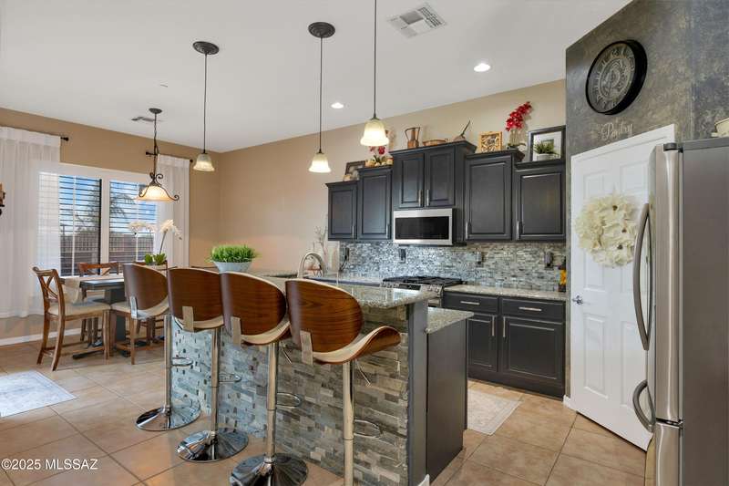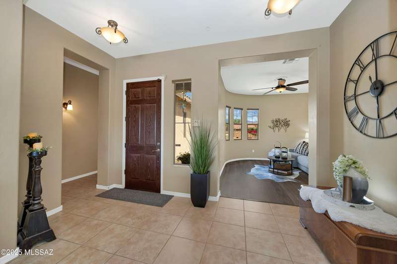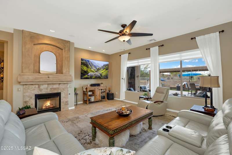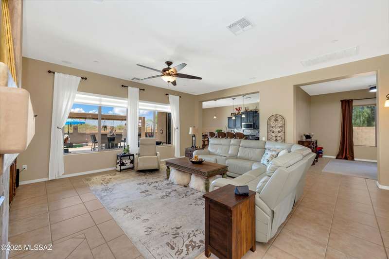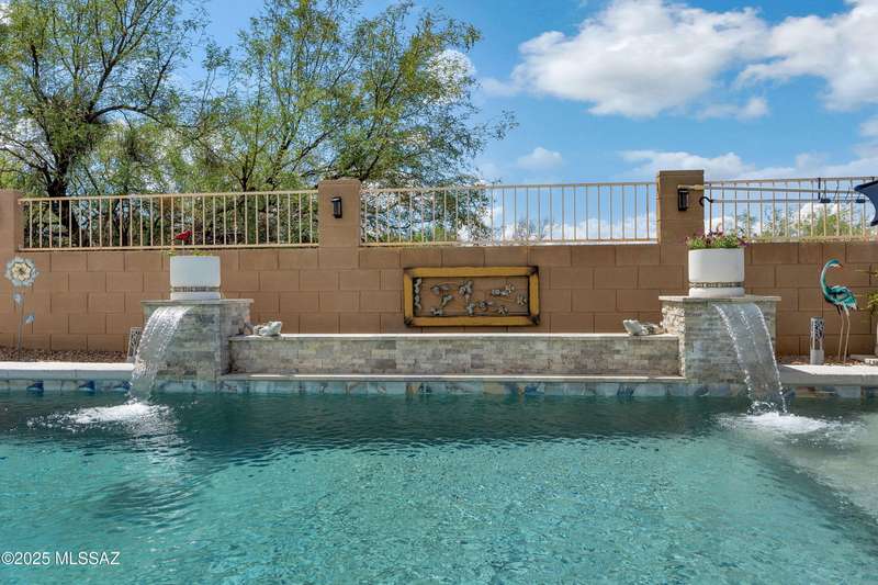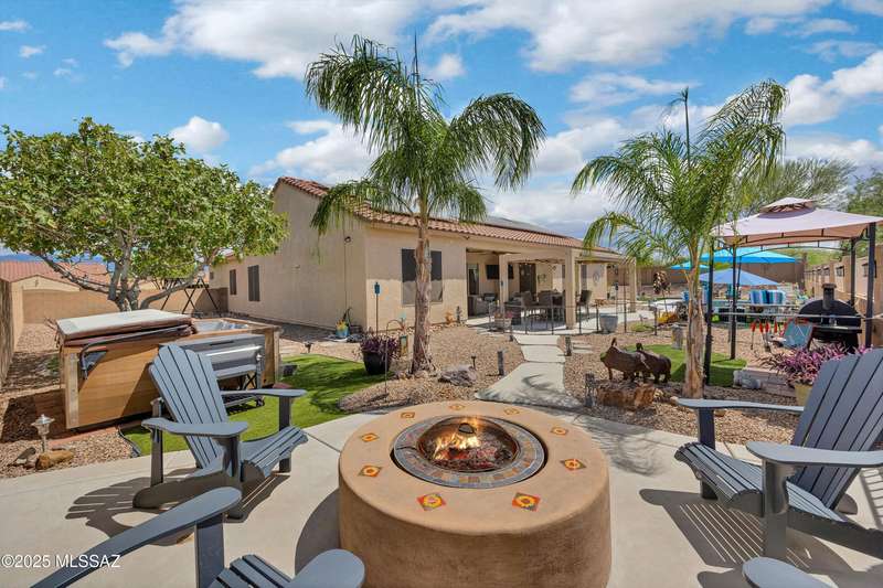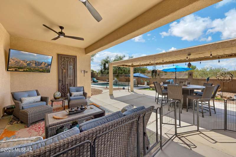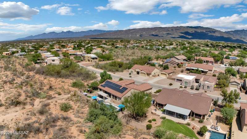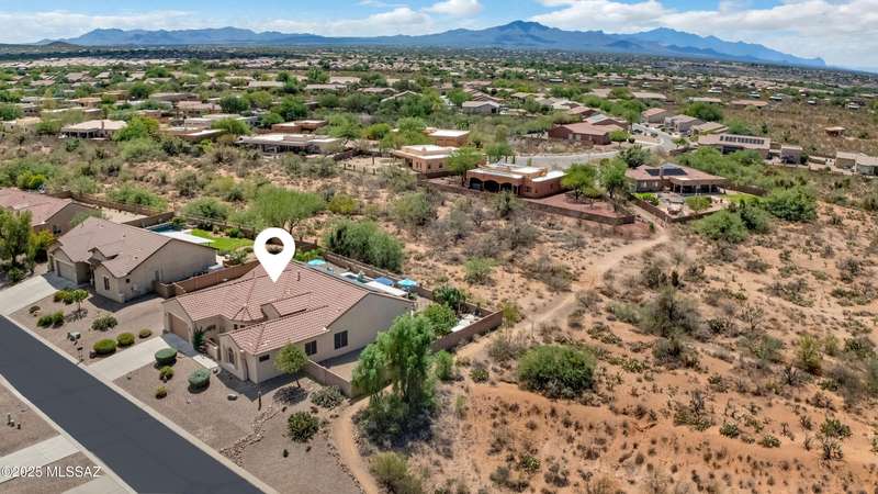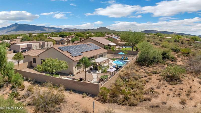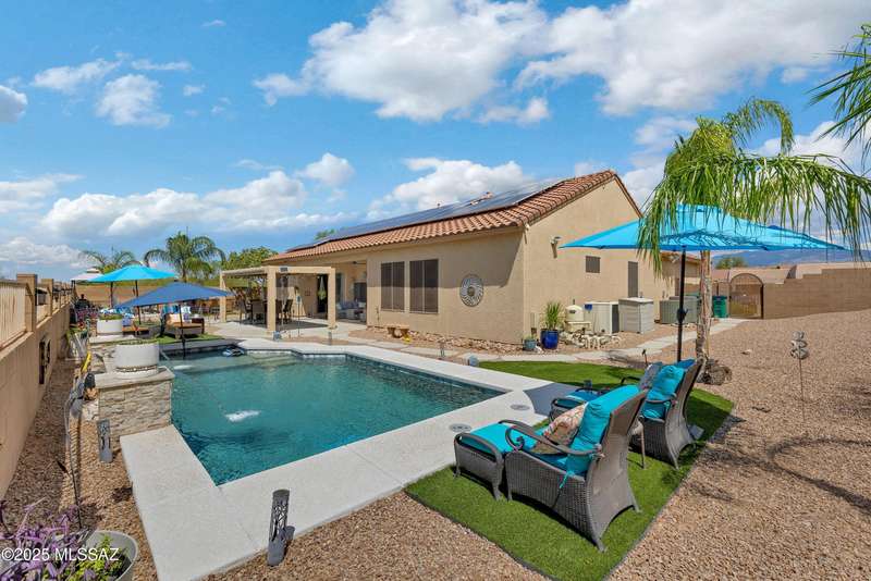 OWNED SOLAR! Stunning home with backyard oasis and sunset views! Enjoy a custom pool with waterfall, hot tub, and Ramada, all backing to open space with only one side neighbor. Inside you'll find 3 bedrooms, 3 baths, a den, formal dining, and a spacious kitchen with breakfast bar. Upgrades include 2 smart HVACs, PAID 16kW solar, 3 car tandem garage w/ wifi-enabled garage door, new master bath (2025), and laminate flooring throughout. Beautifully landscaped and located in the award-winning Vail School District.