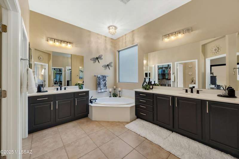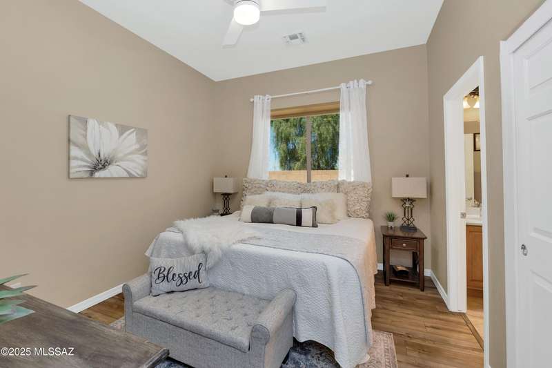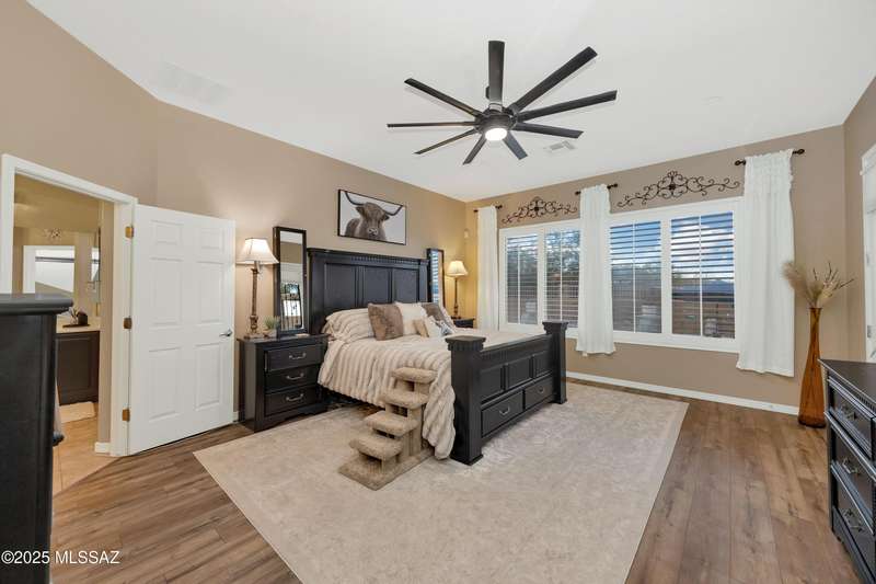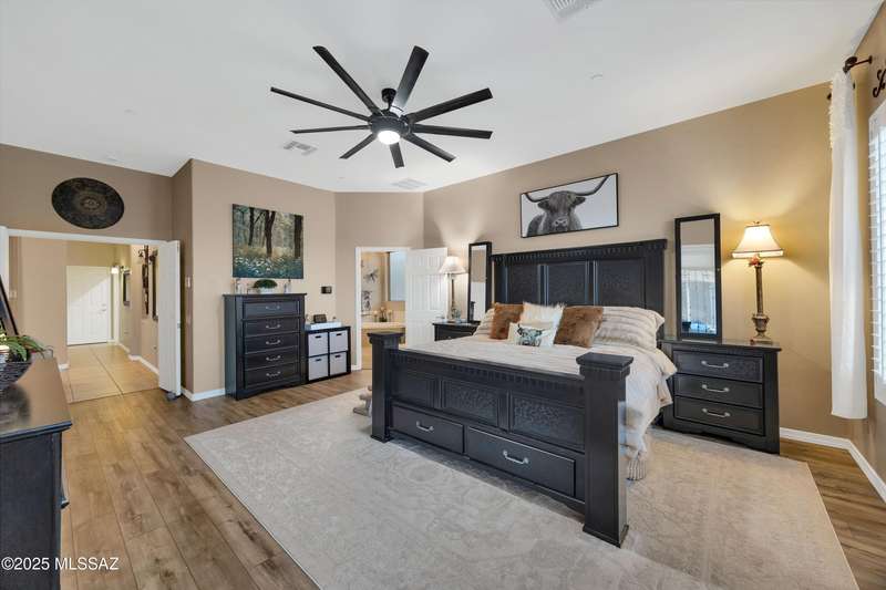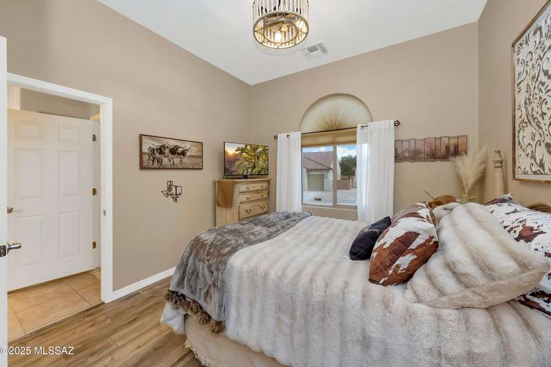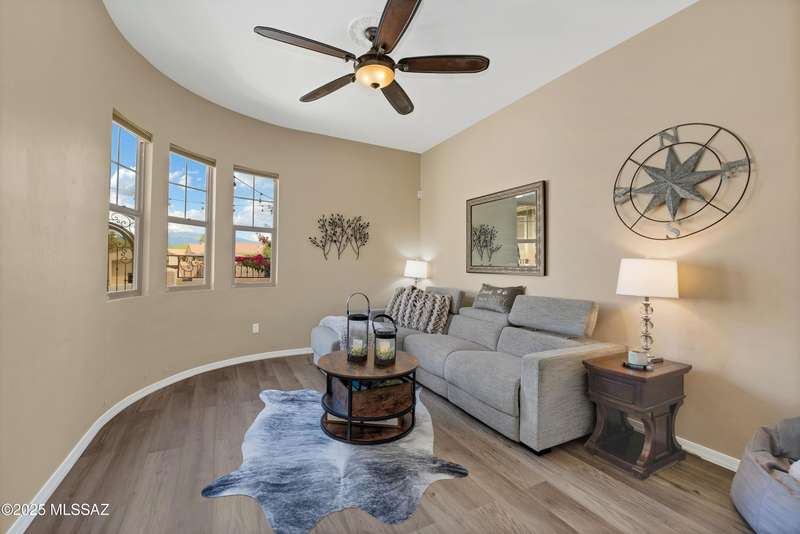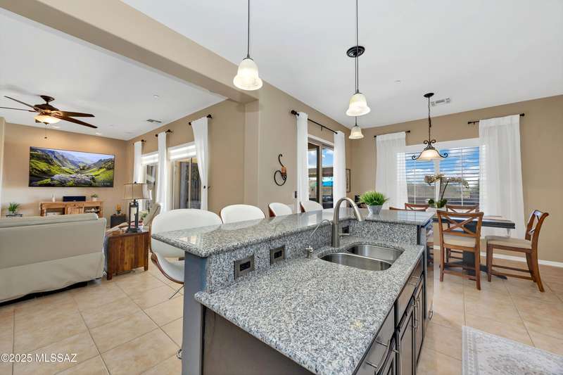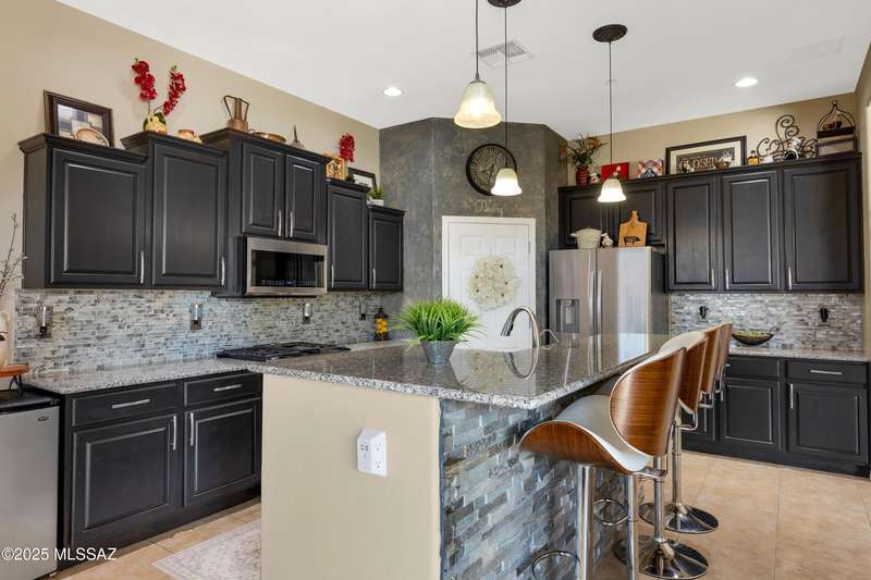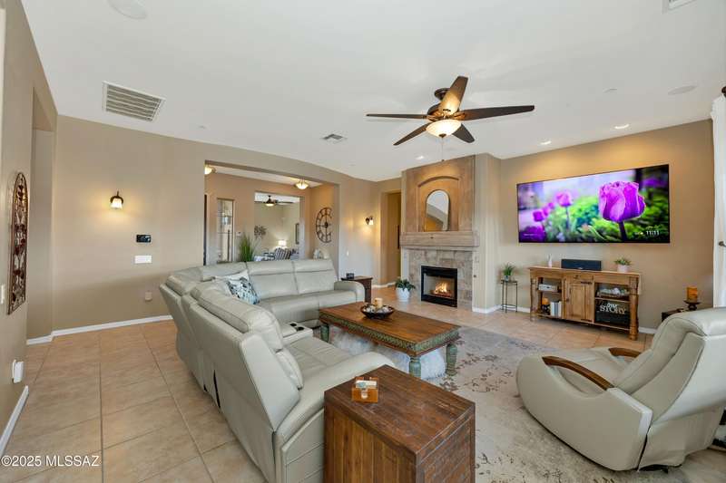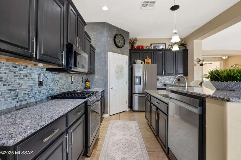 OWNED SOLAR! Stunning home with backyard oasis and sunset views! Enjoy a custom pool with waterfall, hot tub, and Ramada, all backing to open space with only one side neighbor. Inside you'll find 3 bedrooms, 3 baths, a den, formal dining, and a spacious kitchen with breakfast bar. Upgrades include 2 smart HVACs, PAID 16kW solar, 3 car tandem garage w/ wifi-enabled garage door, new master bath (2025), and laminate flooring throughout. Beautifully landscaped and located in the award-winning Vail School District.