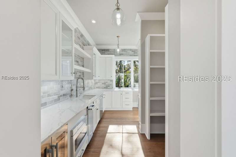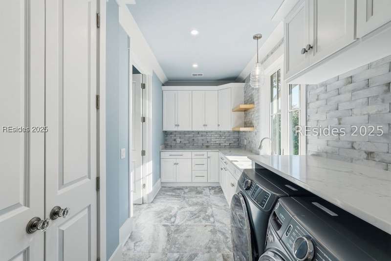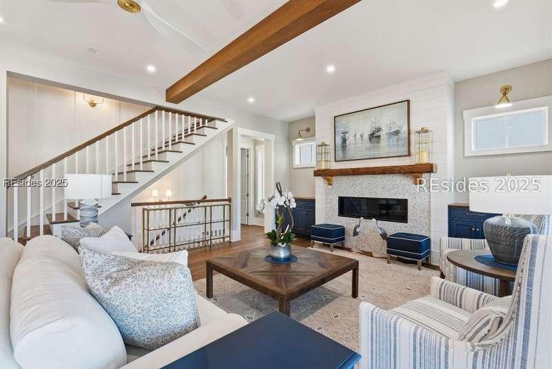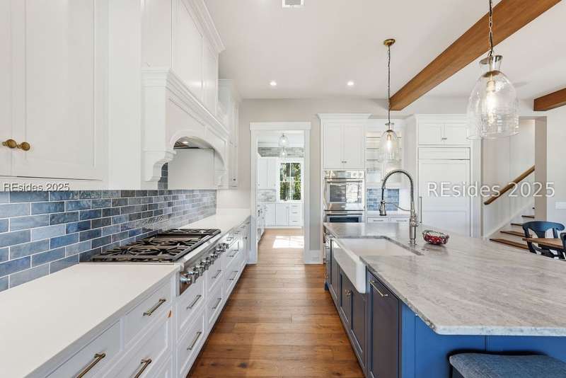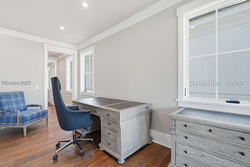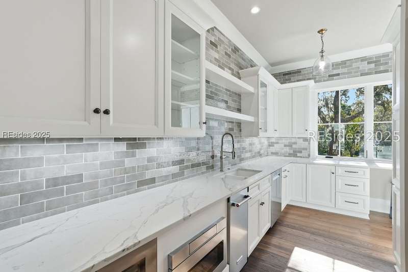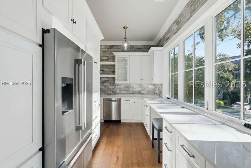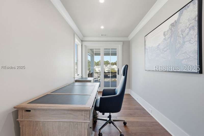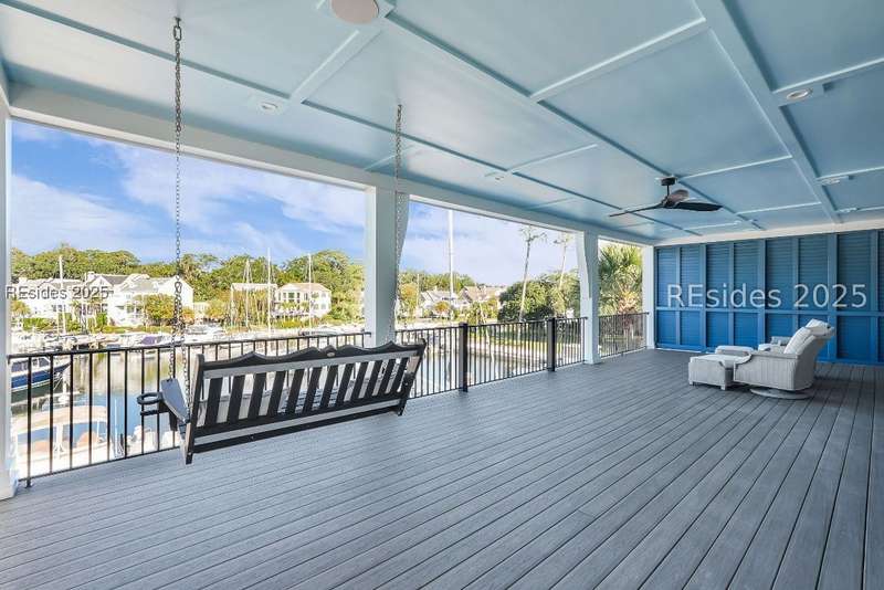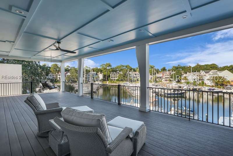 NOTHING BEATS NEW! Just Completed... Windmill Harbour detached Townhome overlooking the South Carolina Yacht Club Marina with 8,100s/f under roof. Custom quality construction with top of the line fixtures and finishes. No steps from driveway/garage to the elevator entrance. First Floor Level accessed through the Courtyard, or the 2-car garage. The Entry Foyer features a custom-built drop zone and a cushioned window seat. This level also includes a large flex room overlooking the marina that could serve as a gym or recreation room. There is an adjacent full bath, with walk-in tile shower. The sliding door (in the flex room) opens to the first of 3 covered patios. The Hot Spring "Aria" Spa is located on the foyer level Lanai. Take the Elevator to the 2nd floor living level where the harbor view gets even better! The open LR, Dining Area and Kitchen feature hardwood floors beamed ceiling, gas Fire Feature. The Kitchen is a Chef's dream with beautiful custom-made Amish cabinetry. The Islan