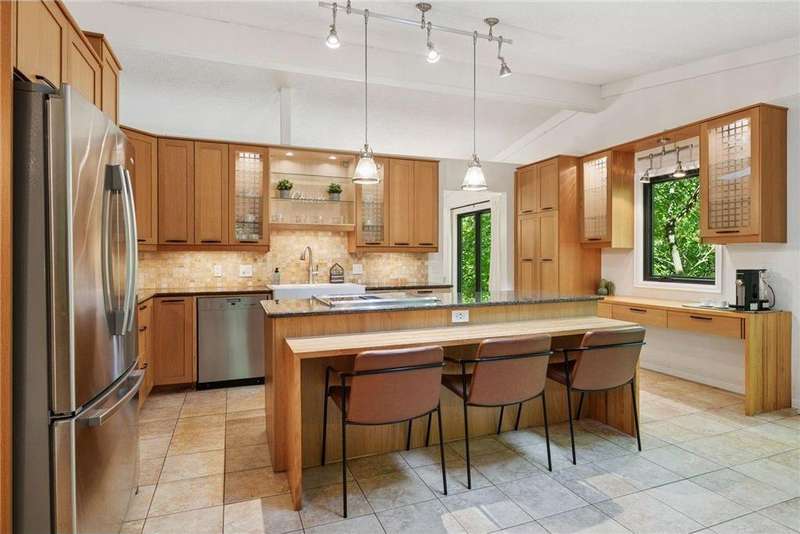 Welcome to this gorgeous home that feels like you’re living in the treetops. Step inside and you’ll find expansive, open living spaces filled with natural light from floor-to-ceiling windows. A cozy stone fireplace anchors the living room while sliding glass doors lead to elevated decks where you can sip your coffee among the trees. The chef’s kitchen features warm wood cabinetry, granite countertops, and stainless-steel appliances, plus an oversized island with seating. Spacious bedrooms and the home office nook offers a quiet, tucked-away space for remote work. Multiple decks and patios invite you to enjoy the wooded surroundings, fenced backyard and thoughtful landscaping. Whether you’re hosting dinner under the string lights or grilling on the patio, this home makes the most of its private setting. This home offers an attached 2 car garage and a detached 2 car garage. Located in highly desirable West Bloomington, you’ll enjoy easy access to parks, trails and shopping.