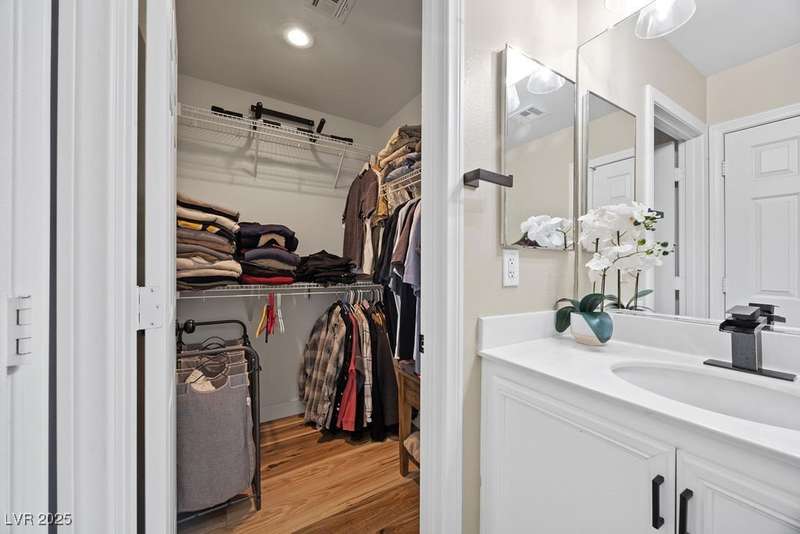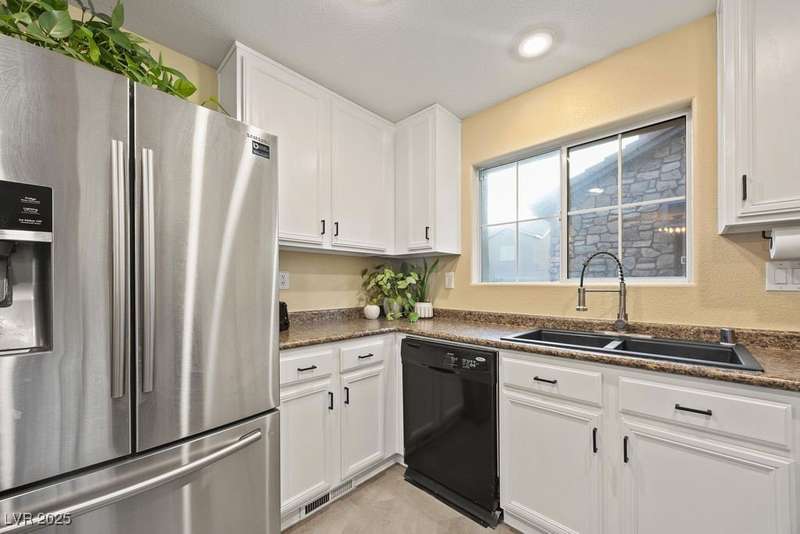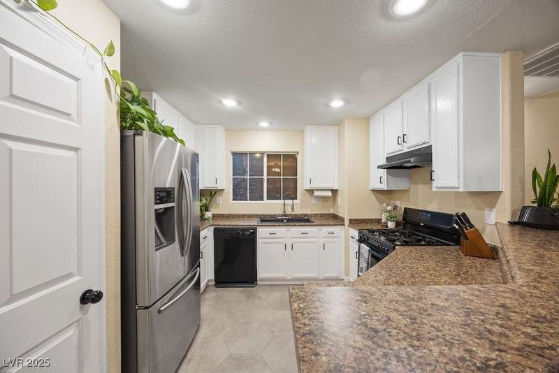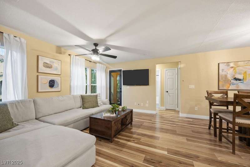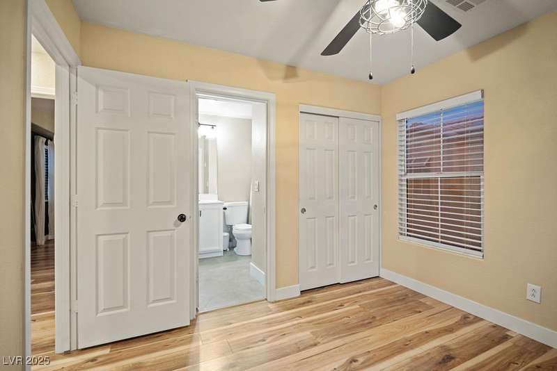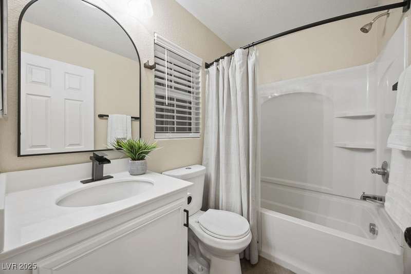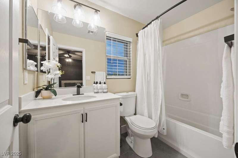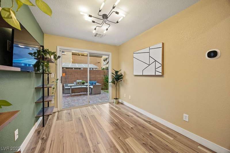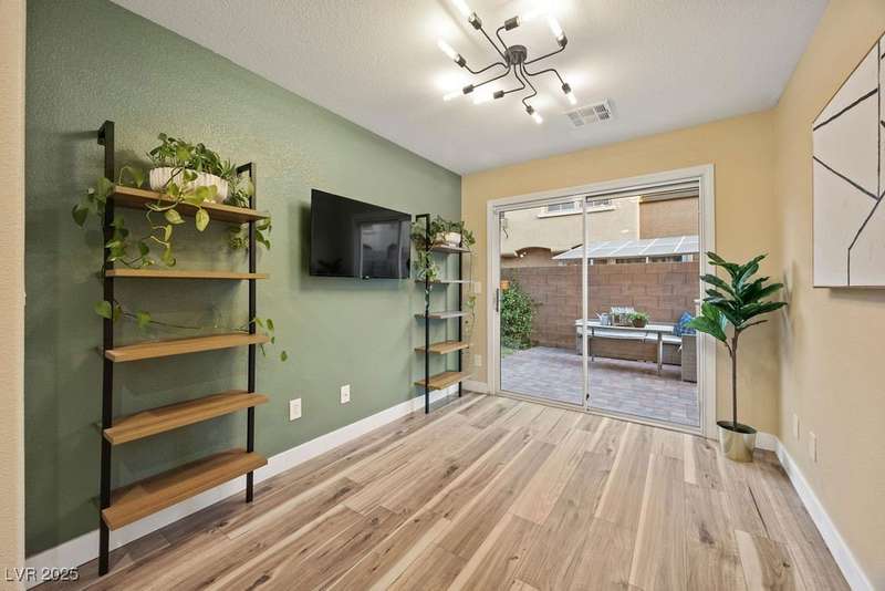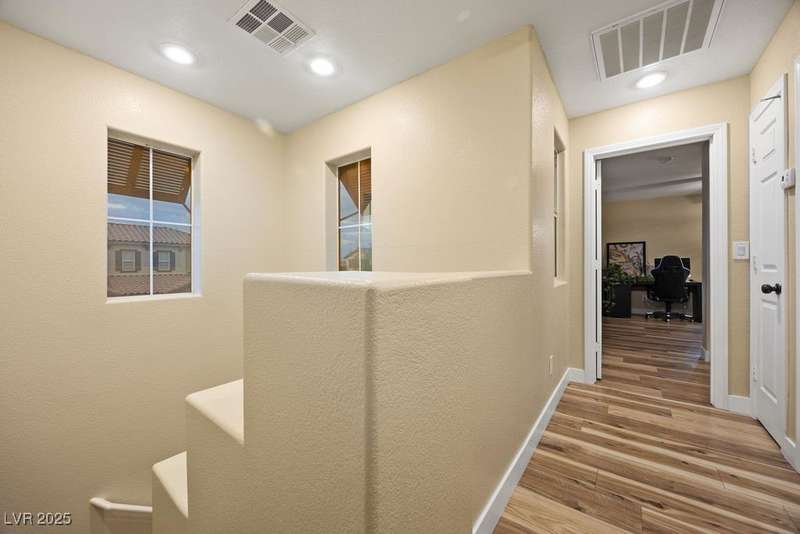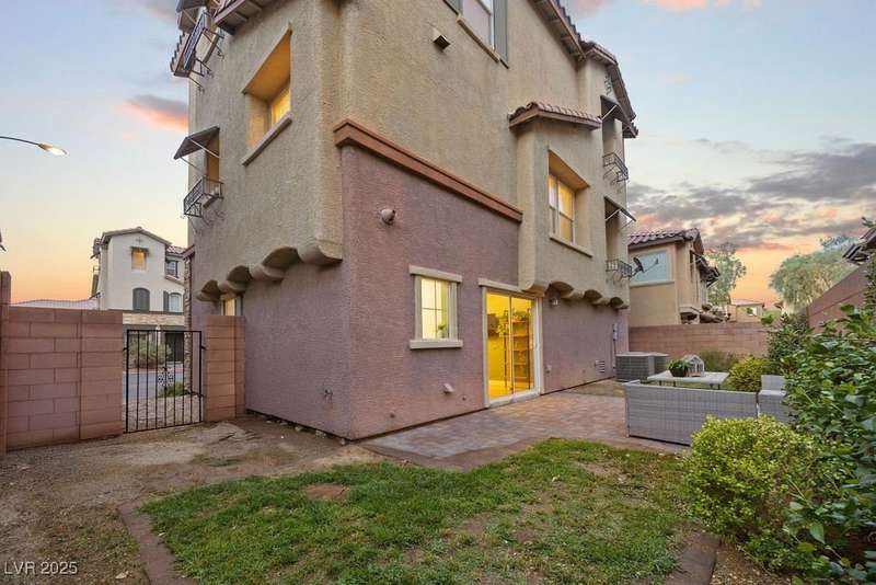 Tucked in a quiet cul-de-sac in a gated Mountains Edge community, this stunning 3-story, 3 bed + den, 3 bath home features a smart, functional layout. The primary suite and guest room (both with en-suite baths) are located on the 3rd floor, with a bedroom and full bath on the 2nd, and a den and laundry room on the entry level. The open-concept main living area leads to a peaceful covered balcony on the 2nd floor. Stylish upgrades include LVP flooring (no carpet!), designer hex tile in wet areas, modern faucets, mirrors, and lighting throughout. The private backyard offers space to relax or entertain. Enjoy access to recreational parks, jogging paths, sports courts, and a small park within the community. Just minutes from grocery stores, gyms, everyday conveniences, and only 10 minutes to the highway—this home blends comfort, design, and location effortlessly!