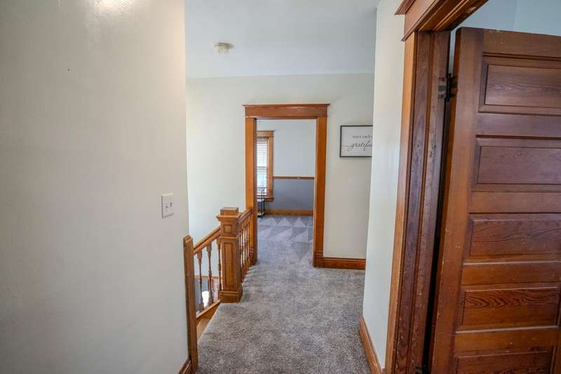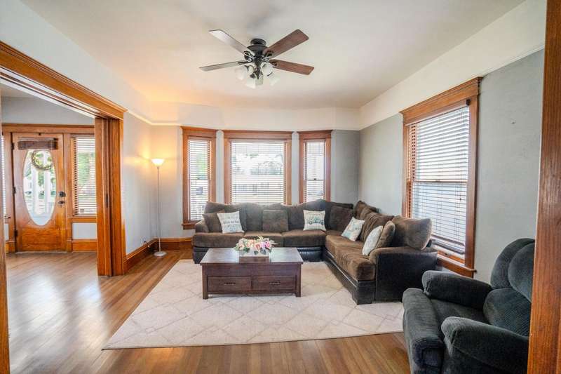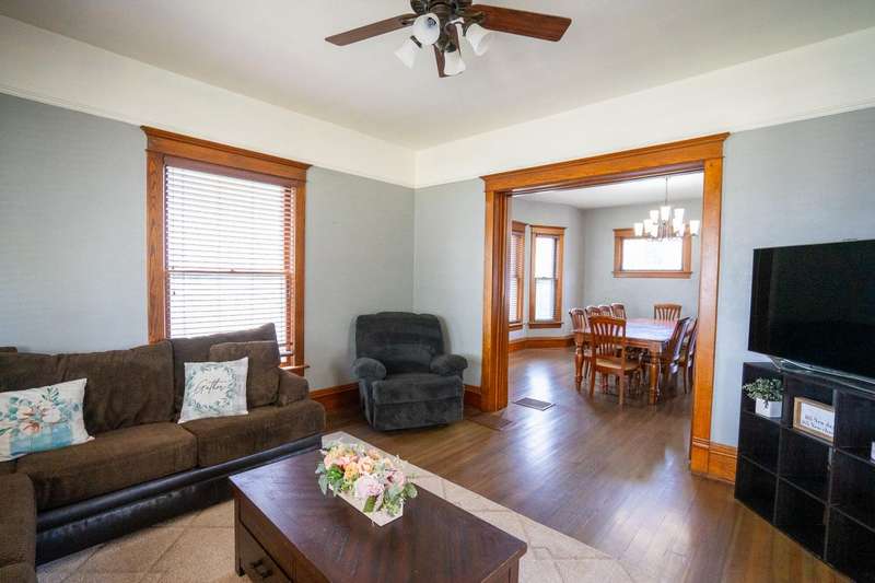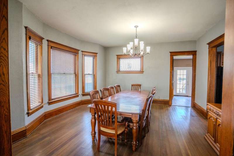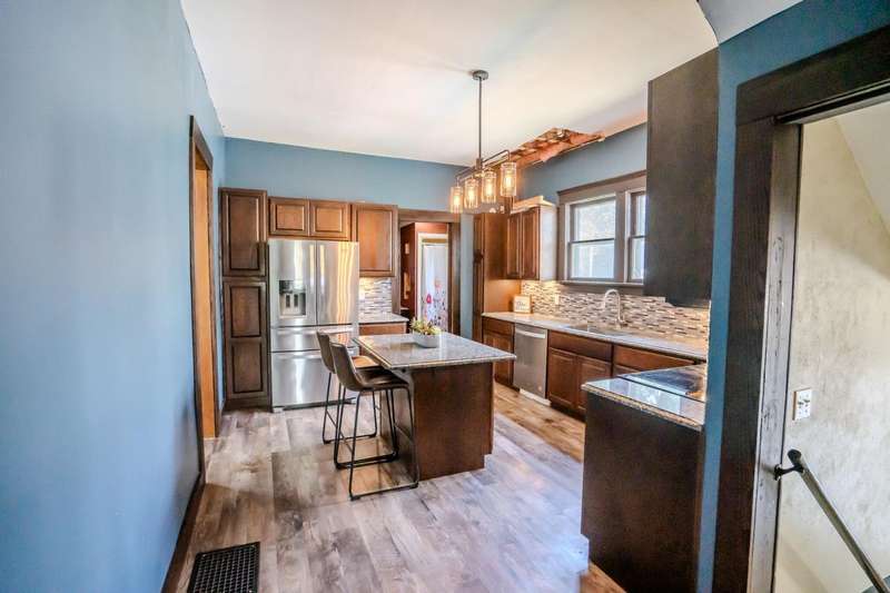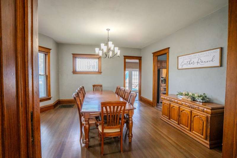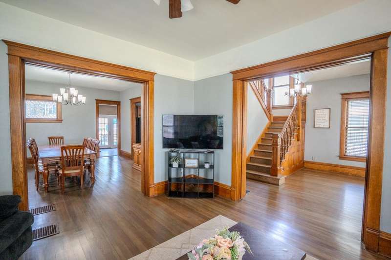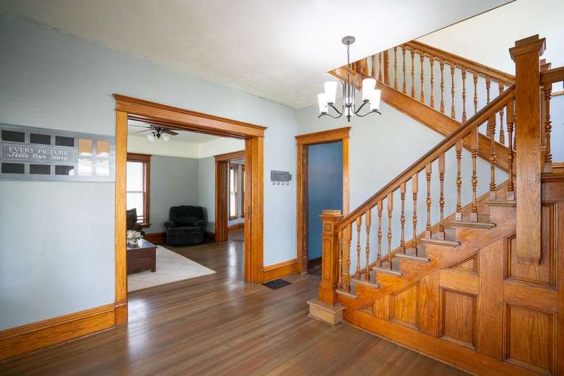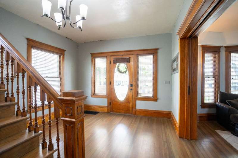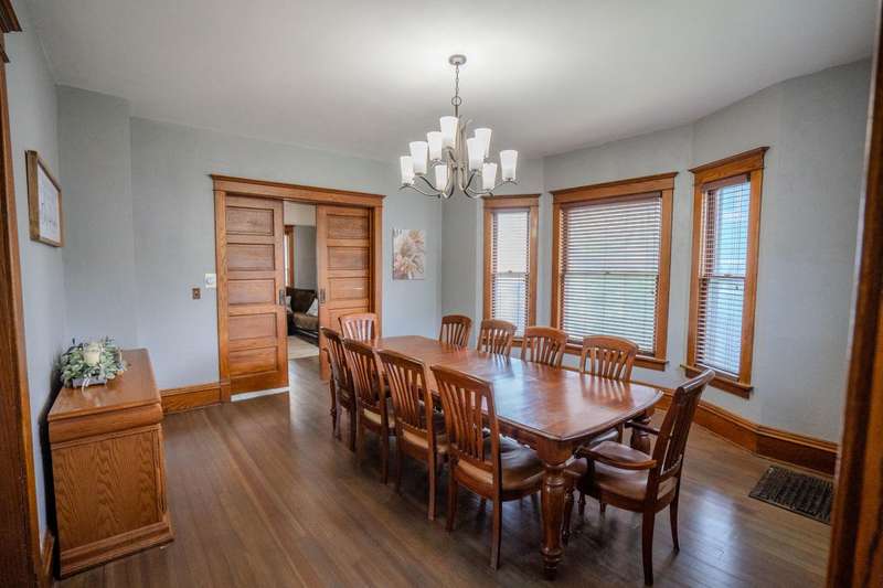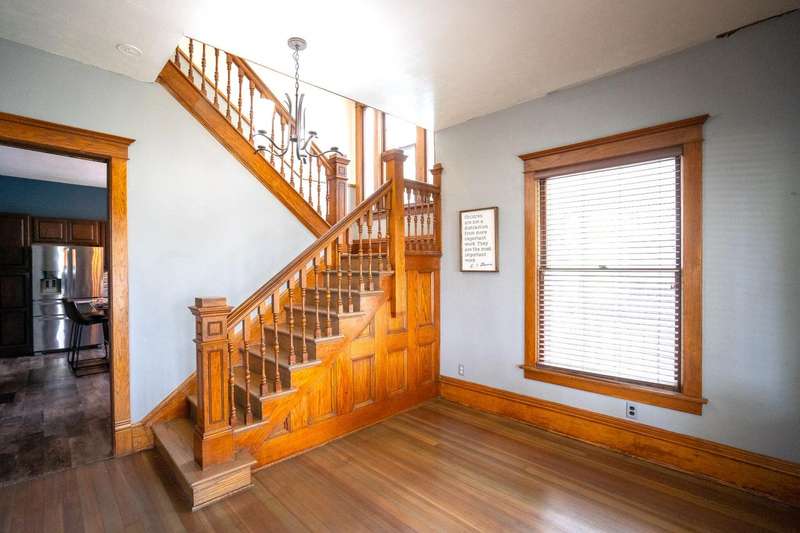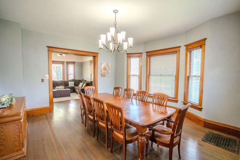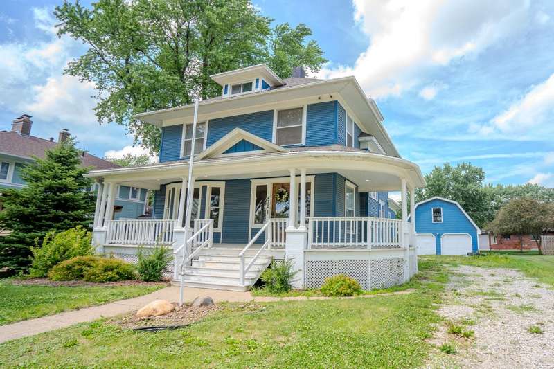 Step into timeless elegance with this beautiful 2-story Victorian home featuring 3 spacious bedrooms and 2 full baths. The inviting wrap-around porch sets the tone for classic charm and modern comfort. Inside, you'll find original woodwork, pocket doors, an open grand staircase, and gleaming hardwood floors throughout. The fully updated kitchen boasts custom cabinets, granite countertops, and a large island?perfect for entertaining. Enjoy the formal dining room and the convenience of main floor laundry. The finished basement offers great extra space for a family room, office, or guest area. Outside, an oversized 2-car garage with loft provides endless options for storage, hobbies, or a studio. Just 30 minutes from the metro, this gem blends historic beauty with modern updates. A must-see!