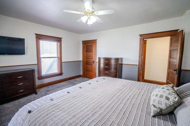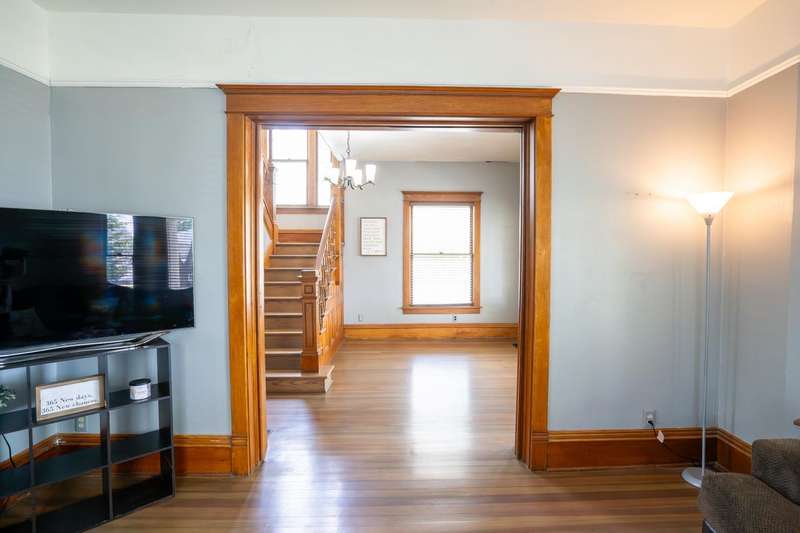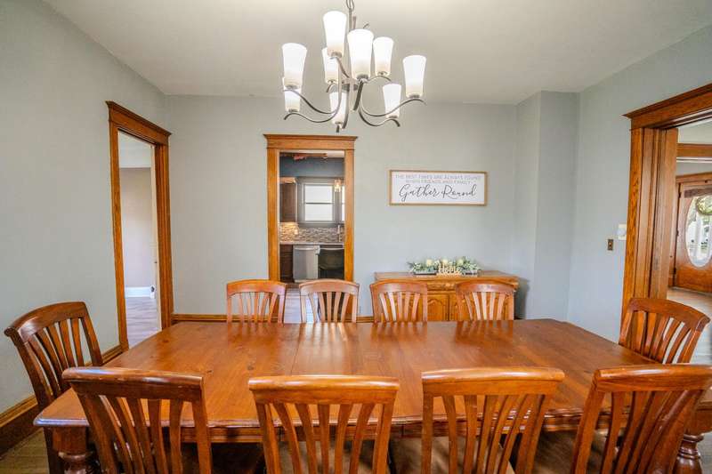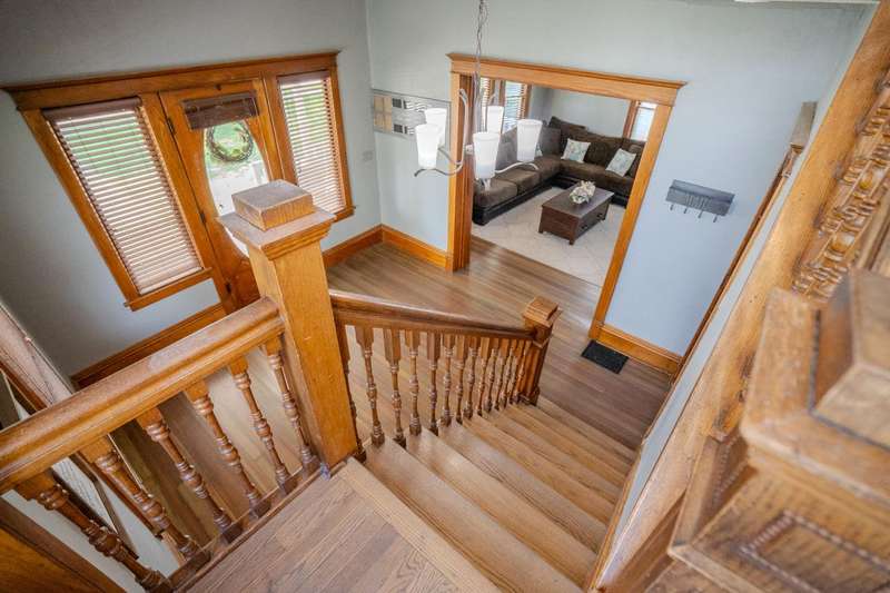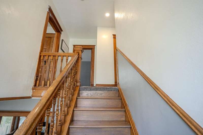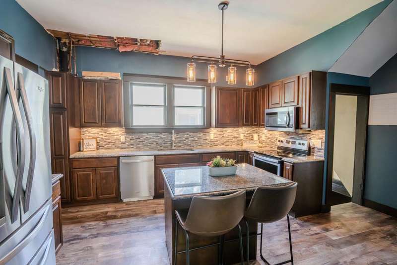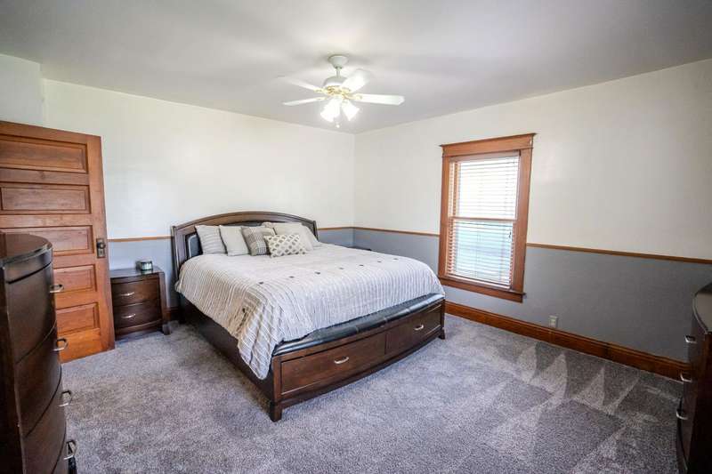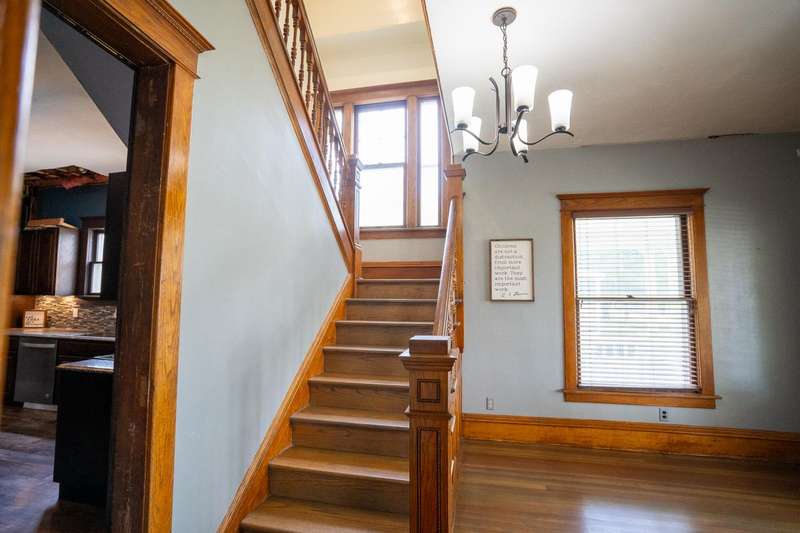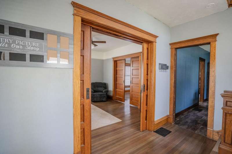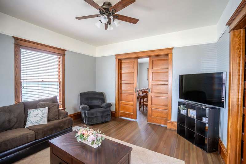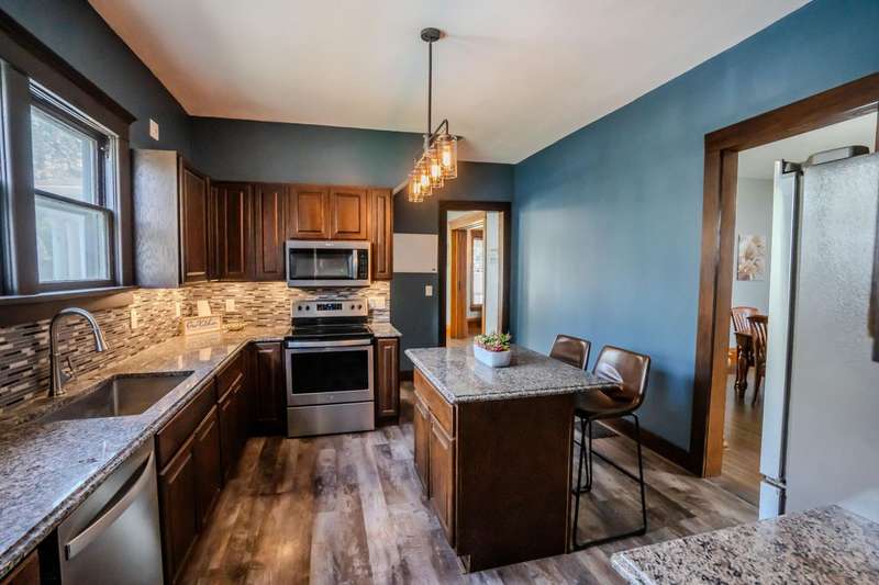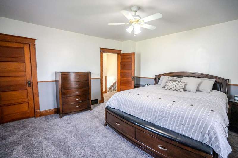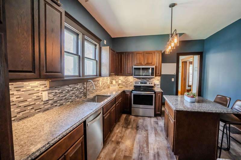 Step into timeless elegance with this beautiful 2-story Victorian home featuring 3 spacious bedrooms and 2 full baths. The inviting wrap-around porch sets the tone for classic charm and modern comfort. Inside, you'll find original woodwork, pocket doors, an open grand staircase, and gleaming hardwood floors throughout. The fully updated kitchen boasts custom cabinets, granite countertops, and a large island?perfect for entertaining. Enjoy the formal dining room and the convenience of main floor laundry. The finished basement offers great extra space for a family room, office, or guest area. Outside, an oversized 2-car garage with loft provides endless options for storage, hobbies, or a studio. Just 30 minutes from the metro, this gem blends historic beauty with modern updates. A must-see!
