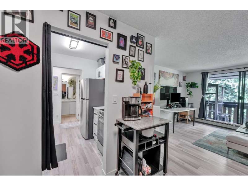 Spacious and beautifully updated top-floor 1-bedroom condo with in-suite storage. The kitchen has been tastefully updated with stainless steel appliances, new cabinet doors, counters, and a sleek backsplash. Enjoy new laminate flooring and modern LED lighting throughout. The recently redone covered balcony offers a private and peaceful tree lined outlook, perfect for relaxing. This unit includes one parking stall with a personal bike storage rack. Maintenance fees cover heat and hot water, plus access to "The Paddock" amenities, including an outdoor pool, sauna, basketball court, pool tables, and lounge area. Centrally located and move-in ready, this condo is ideal for first-time buyers, downsizers, or investors! Book your private showing today! (id:58403)