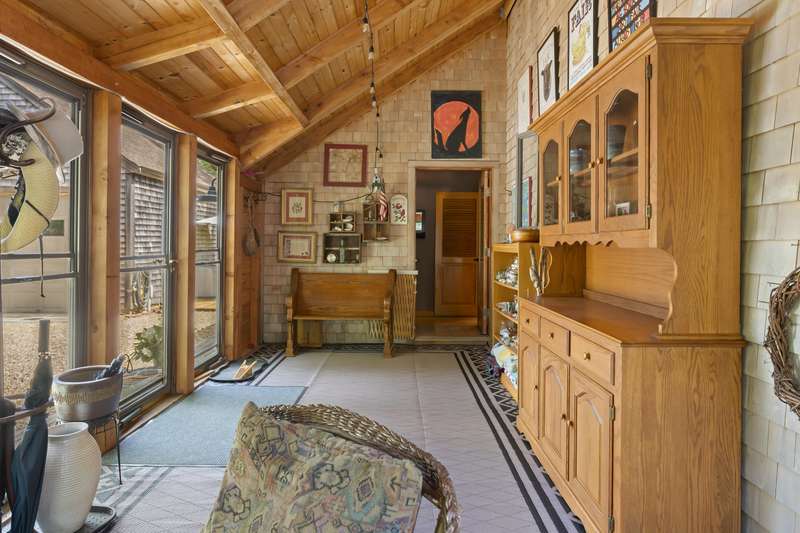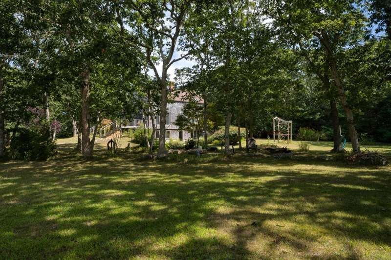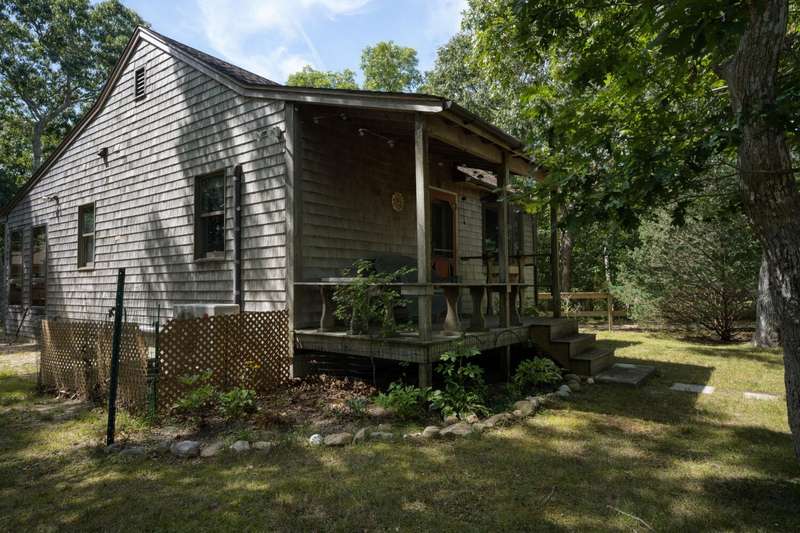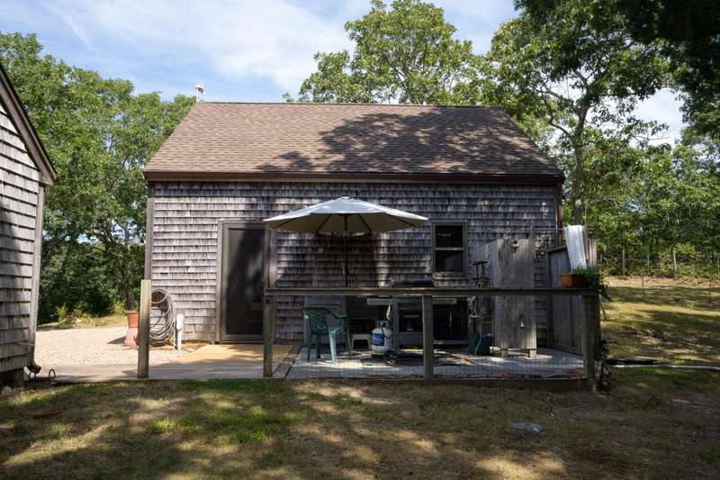 Tucked away behind association common land, this year-round compound offers the perfect blend of privacy, space, and flexibility. The post-and-beam main house features four bedrooms and combines timeless character with functional design, ideal for everyday living or seasonal enjoyment. A separate two-bedroom guest house with a welcoming farmer's porch is thoughtfully sited to ensure privacy and independence, complete with its own driveway and parking. The detached garage, with a loft above, adds even more versatility-ideal for storage or future finished space. Situated on one of the largest parcels in the Smith Hollow Association, the property enjoys a tranquil, park-like setting. With direct access to the bike path at the end of the road, you're just minutes from Edgartown and all down-island amenities. More than just a house-this is a place to call home.