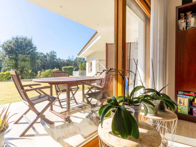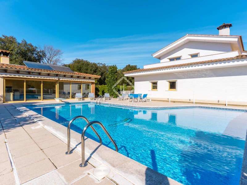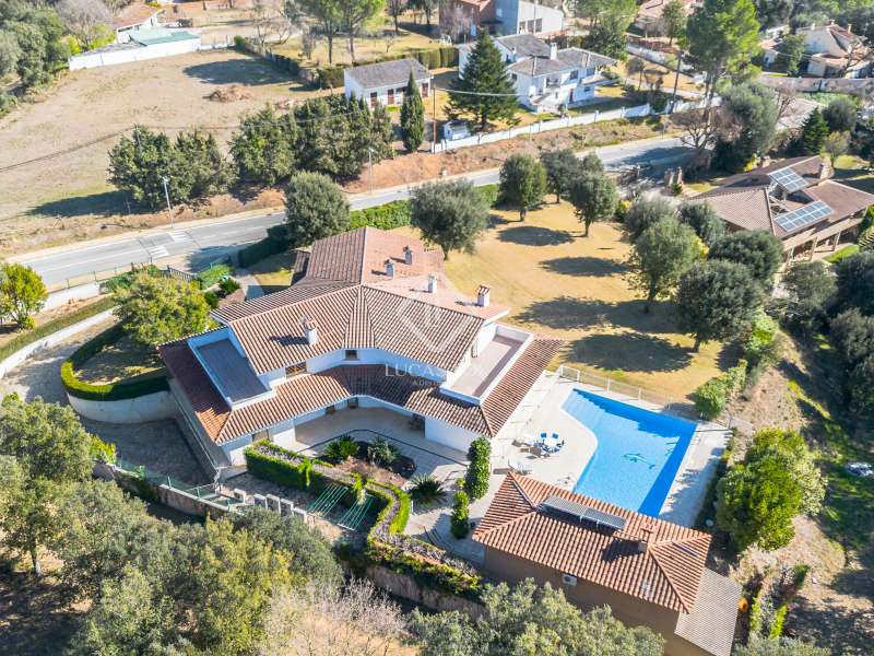 Lucas Fox presents this unique and elegant villa, located in the heart of the Llémena valley, one of the best preserved and spectacular natural places in the Gironès region, a few minutes from the city centre of Girona. The property was built in 1995 with a reinforced concrete structure and clinker-type brick walls. The property stands majestically on an urban plot of 3,098 m² and a private oak forest plot of 4,180 m², with a total plot area of 7,278 m². The house is distributed in three wings, with independent spaces that allow the possibility of housing more than one family. In total we find ten bedrooms, including two bedrooms with their respective private bathrooms with large round bathtubs, showers and changing rooms, as well as five full bathrooms and three guest toilets. In addition, it offers a separate space for guests including a living room, fireplace, double bedroom and bathroom, as well as a work area and a guest toilet . It also has a multipurpose room with access to one of the three terraces, which can be used as a gym or games room, among others, depending on needs. Great attention to detail has been paid in this house. Both the interior and exterior are truly elegant, thanks to its Roman travertine marble floors, among other features. It has niangon hardwood windows and metal blinds with adjustable and motorized slats. Likewise, it has solar panels for the production of sanitary water. In addition, the exterior walls have been meticulously insulated with a coating composed of a combination of expanded polystyrene, sprayed polyurethane, brick and exposed brick block, to achieve excellent energy efficiency. This innovative approach to construction ensures exceptional thermal comfort in all seasons, while significantly reducing energy consumption. Exterior, the property offers the pool house, an open-plan annex with a fireplace and barbecue, ideal for enjoying the outdoors, next to the extensive flat garden with grass. The property has a spacious open-plan garage. From its spacious interior spaces to the carefully designed gardens and wooded grounds, this property offers an exclusive lifestyle for those seeking the highest quality and tranquility.