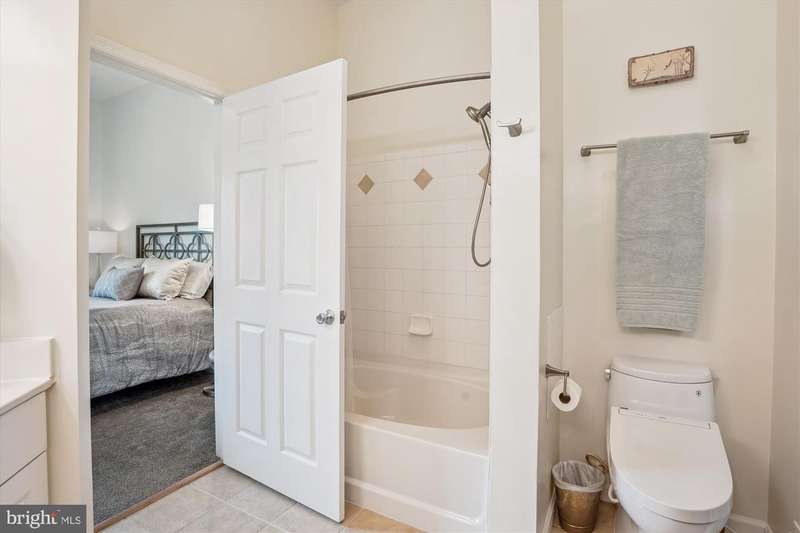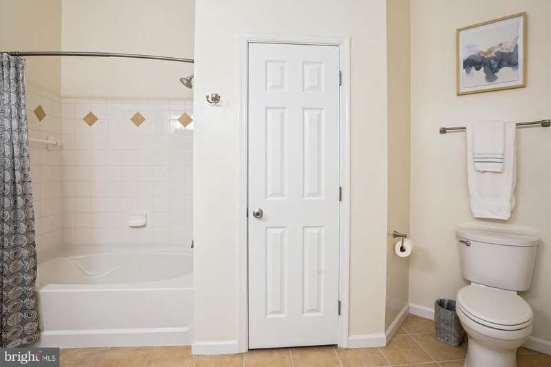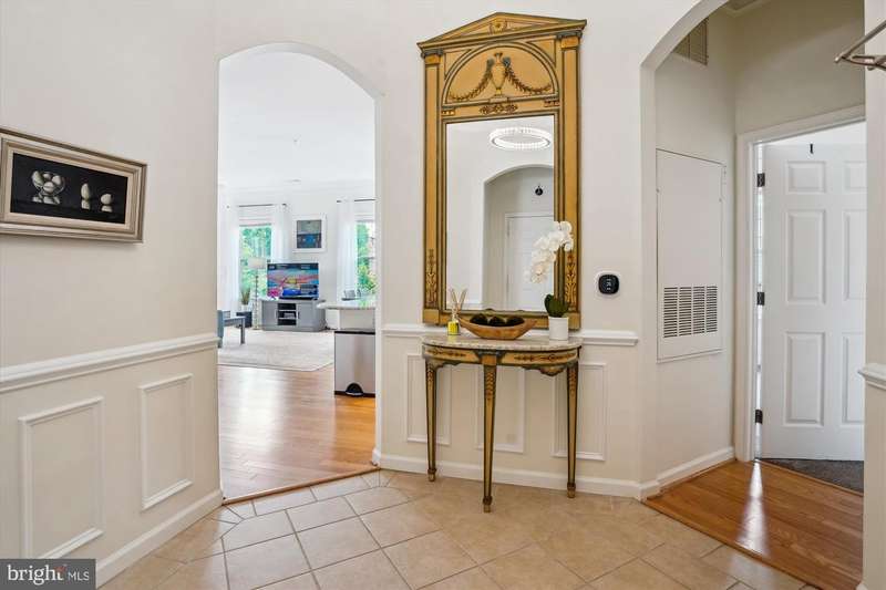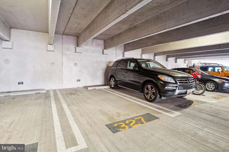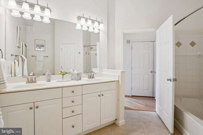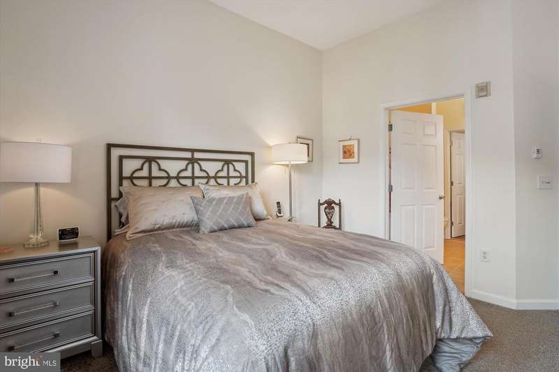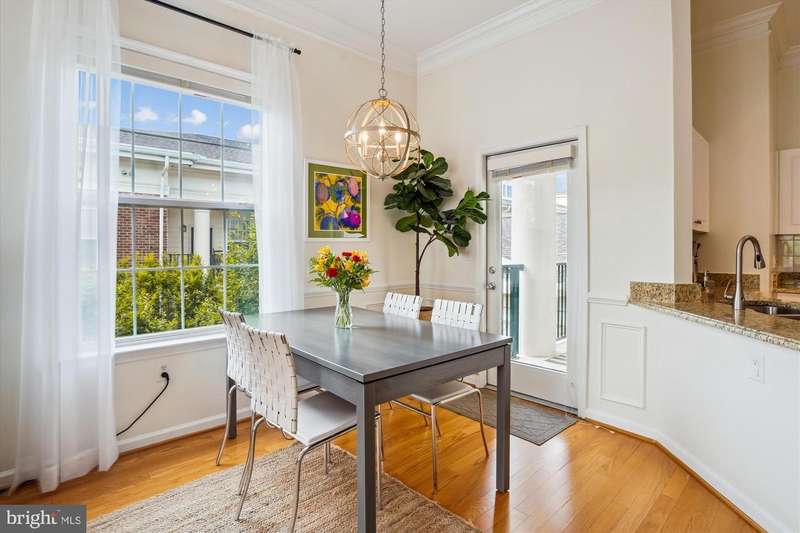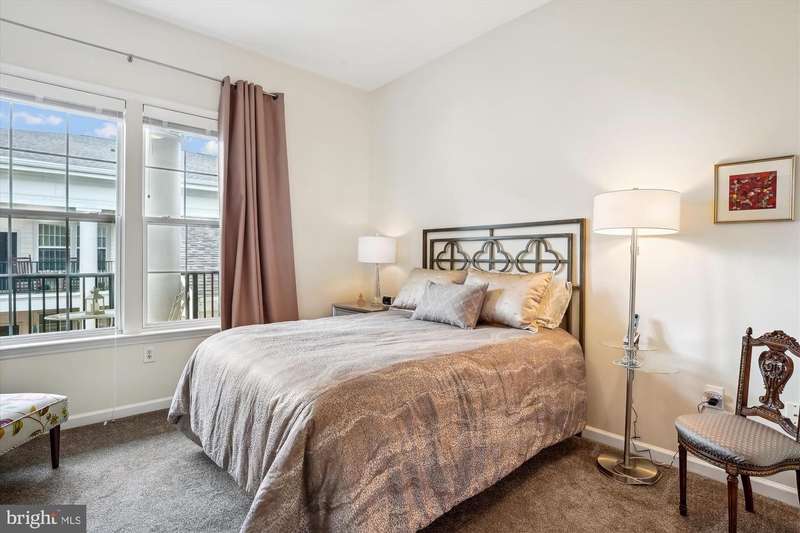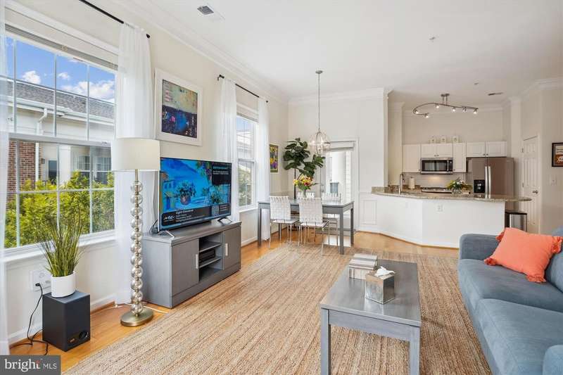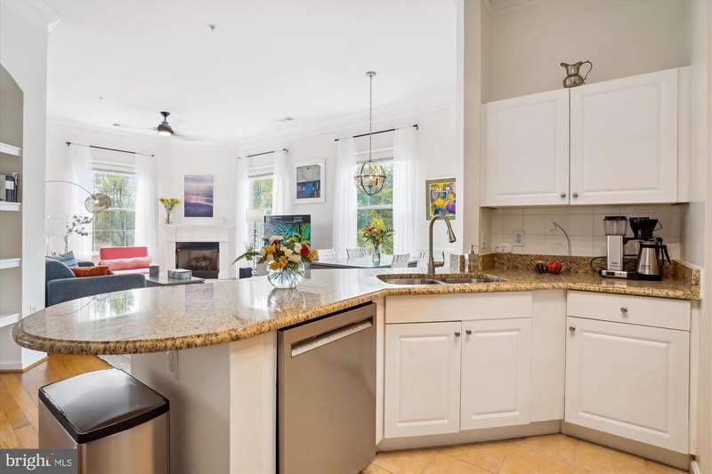 Stunning, light-filled, top floor corner unit with soaring 10-foot ceilings, creating a spacious and inviting atmosphere. Meticulously maintained, the lofty entry foyer invites you in. The open kitchen, featuring Stainless-steel appliances (2023), white cabinets, granite countertops and pantry, seamlessly flows into the light and airy living area-complete with hardwood floors, crown molding, elegant custom built-ins, and a cozy gas fireplace. TWO PRIMARY SUITES offer plush new carpet, large walk-in closets, and generous sized bathrooms equipped with double-sink vanities, relaxing tub/ shower, and upgraded toilets. A FULL SIZE washer and dryer is included for convenience, efficiency and comfort. Your PRIVATE BALCONY allows you to savor peaceful mornings with a cup of coffee or unwind in the evening with a glass of wine as you take in the tranquil setting. Updated features include custom window blinds, new ceiling light fans in each room and a stunning entryway chandelier. Major updates include a new Wi-Fi-controlled Ecobee smart thermostat, a new HVAC system (2024) and new HOT WATER HEATER (2024) and a FLO Smart Water Monitor with shut-off system. TWO GARAGE SPACES, #279 and #327, convey with the property and are conveniently located near the condo entrance for easy accessibility. Along with the many condo amenities you are just minutes from Kentlands' vibrant shopping, dining, and entertainment scene.
