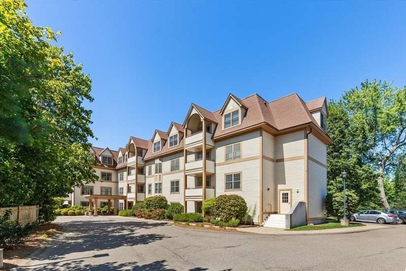 1 car garage! Luxury living in a premier 55+ community! This bright, 3rd floor, end unit, offers the comfort of single floor living in a secure elevator building. The oversized family & dining areas feature hardwood floors, crown molding, and access to a private covered balcony perfect to catch fresh air without leaving home. The open-concept kitchen has a double pantry and great storage. The primary bedroom includes a walk-in closet and spacious walk-in shower. 2nd bedroom is ideal for guests or a home office. Second full bath has a tub offering the best of both worlds with grab bars for safety. Condo features in-unit laundry. The residents of this community enjoy access to a fitness center, an elegant function room, and beautifully maintained outdoor patios. Conveniently located near shops, restaurants and medical centers including Newton-Wellesley Hospital. 2 deeded parking spaces. This condo combines comfort, security, and convenience in one of the most desirable towns.