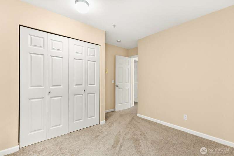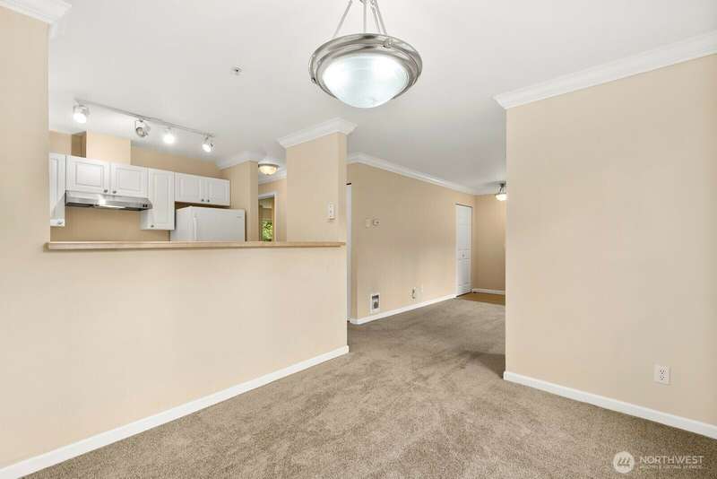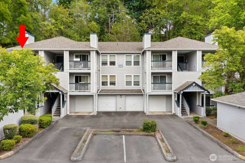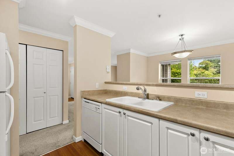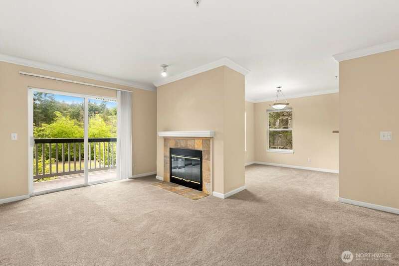 Welcome to the desirable Latitude Community! This top-floor, end-unit condo is nestled among trees & faces open green space, providing a private & peaceful setting. Well maintained unit features new carpet, gas fireplace, private balcony & rare private garage—ideal for secure parking or extra storage, plus one additional parking space & plenty of guest parking throughout complex. The well-maintained community offers a clubhouse, gym, game room, pool, hot tub & sauna. Enjoy peace & quiet, yet close proximity to shopping, dining & major amenities. HOA dues cover water, sewer, garbage, lawn care, road maintenance & snow removal. NO rental cap—making it great for homeowners or investors. Don't miss your chance to own at a fantastic value!