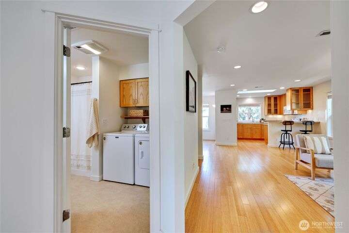 Welcome home to this bright and inviting 2-bedroom condo in the unique co-housing community of Meadow Wood! Get ready to relax in your own private treehouse, perched on the top floor, overlooking a peaceful courtyard and bordering a lush range of tall trees. With abundant windows opening to fresh air and a gentle breeze, the open floor plan is filled with natural light and includes a full bath, in-unit laundry, and a ½ bath off the primary bedroom. Enjoy a spacious community hall with a kitchen, library, game room, playroom, and mailroom, plus weekly dinners with your neighbors and nearly 7 acres of trails to explore. Conveniently located near PSNS, the Bremerton ferry, and Silverdale. This home is move-in ready and waiting for you!