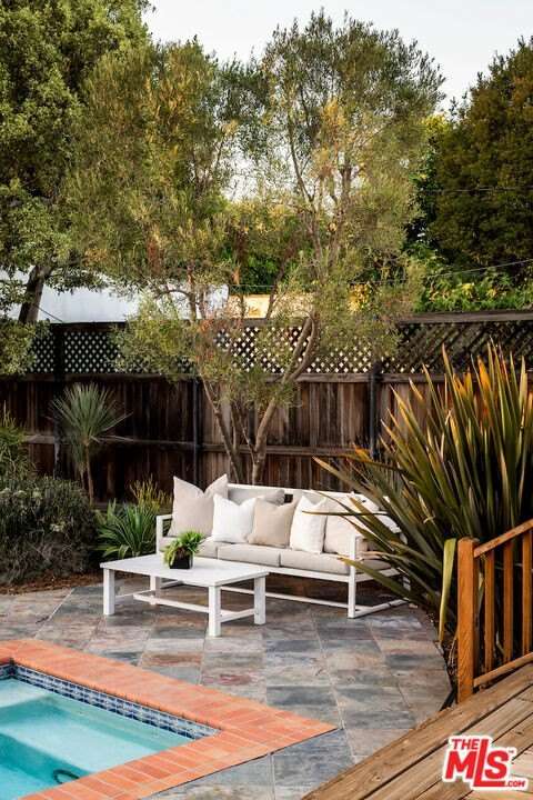 Location, Location, Location! Nestled in the heart of desirable Wilshire Vista, this absolutely charming English cottage style residence offers the perfect blend of character, comfort, and lifestyle. The living room welcomes you with gorgeous hardwood floors, coved ceilings, and a rare Bachelder fireplace, a stunning focal point that showcases timeless craftsmanship of the home. The 2 bed, 2 bath main house is complemented by a 1 bed, 1 bath pool cabana ideal private retreat for guests, a home office, or creative space. French doors off the living room open to your own oasis: a large lap pool with spa and fountains surrounded by lush landscaping. A spacious deck overlooking the pool sets the stage for outdoor dining, entertaining, or simply relaxing in the California sun. Situated on an expansive 7,448 sq. ft. lot, there's plenty of room to enjoy both indoor and outdoor living. All this, while being just one mile from LACMA, world-class dining, Equinox, LA Fitness, and only minutes to The Grove, Trader Joe's, Whole Foods, and Erewhon. This home is the perfect mix of historic charm and modern convenience in one of Los Angeles's most central and sought-after neighborhoods.
