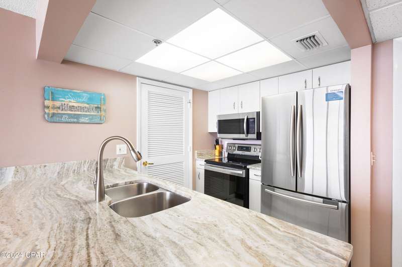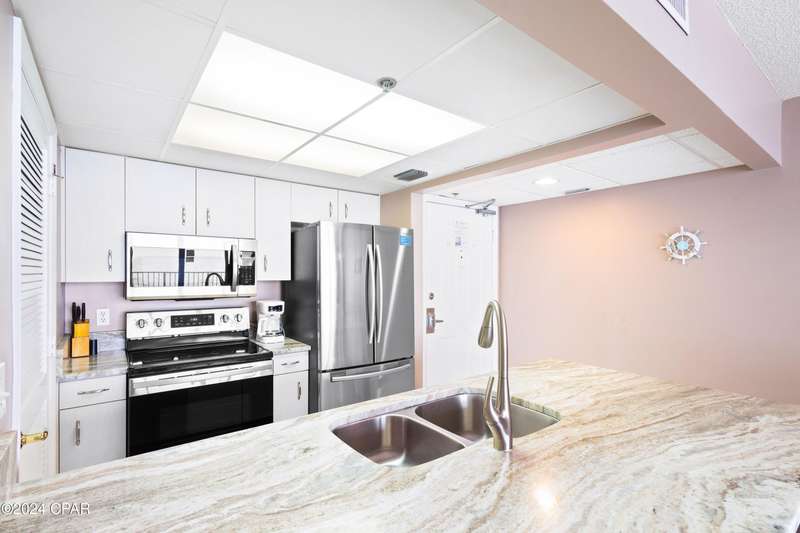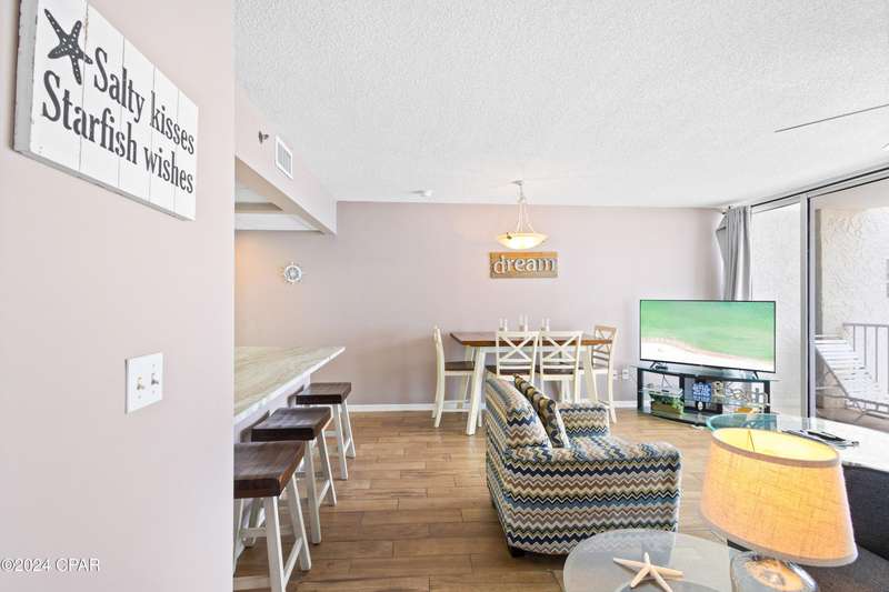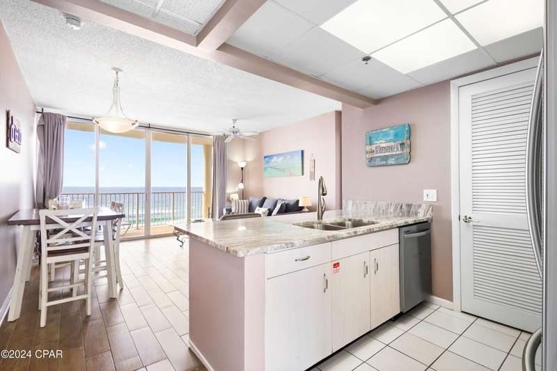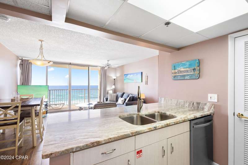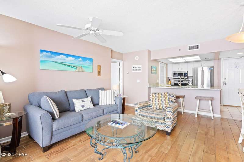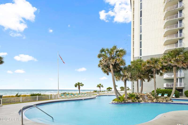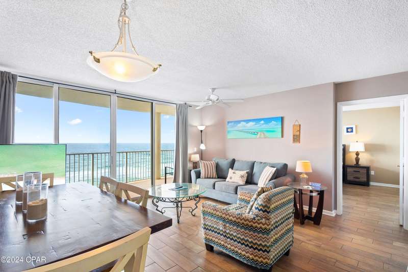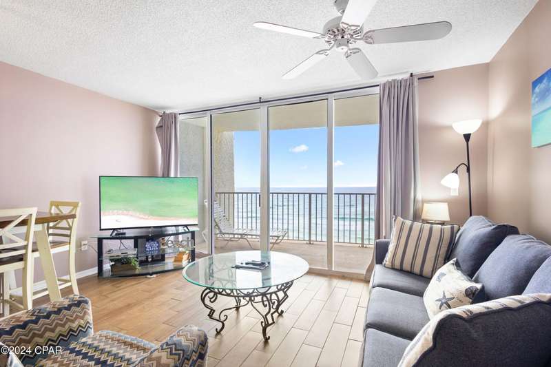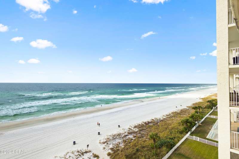 Experience stunning panoramic views of the Gulf of Mexico from nearly every corner of this beautifully furnished 1BR/1BA Long Beach Resort condo. The open-concept design offers seamless access to a private beachfront balcony from both the living room and the spacious bedroom. Perfect as a serene second home or a lucrative investment property, this condo is situated in one of the most sought-after rental destinations. Long Beach Resort boasts a gated entrance, 3 sparkling pools, relaxing hot tubs, and a dedicated beach for residents and guests. Plus, you're just a short stroll away from popular dining, shopping, and entertainment options.