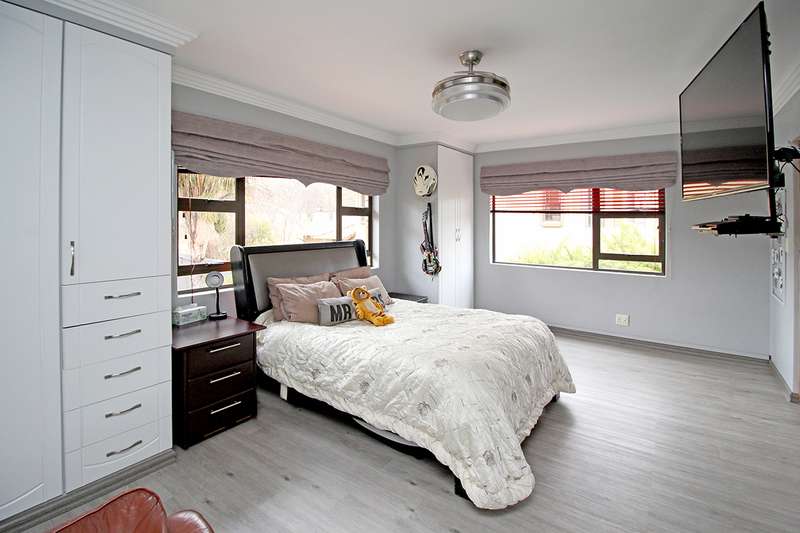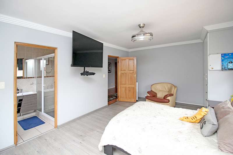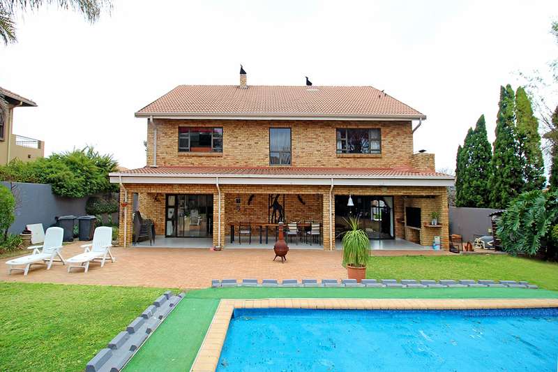 Large family home in Thornhill Estate. Low-maintenance face-brick property which has been curated and designed for modern family life. Big family spaces, while also allowing privacy, rooms, and options. This home is incredibly flexible with 5 bedrooms all en-suite. All bedrooms have central gas-heating, laminated floors and custom bathrooms. An option for the 5th bedroom loft for older kids, teenagers – as a gym, study, TV lounge or gaming room. Downstairs features 2 living spaces with fireplaces and the opportunity to entertain or intimate comfort. Custom kitchen, laundry and scullery leading to garden facing patio and braai-area. Independent, freestanding flatlet with private entrance, storage shed, water harvesting tanks with pump, solar heated pool. Aluminium door and window frames throughout. 2 driveways and access for cars and plenty private parking. In proximity to Flamingo Shopping Centre & Go Ape. Also, Greenstone Mall, Green Valley Shopping Centre, Stoneridge Mall, Greenstone Crescent & Modderfontein. Excellent access to N3 Highway and well as the N12 to OR Tambo Airport. Significant business and commercial estates in the area including Longmeadow, Linbro Park & Meadowview, as well as the forthcoming Modderfontein developments. Schools in the area include: Edenglen Primary, Hurlyvale Primary, Edenglen High, Edenvale High, Curro School, Founders Hill College & forthcoming Taroko school. Other significant nearby landmarks are the Modderfontein Golf Course, Modderfontein Nature Reserve & Gautrain bus stops.