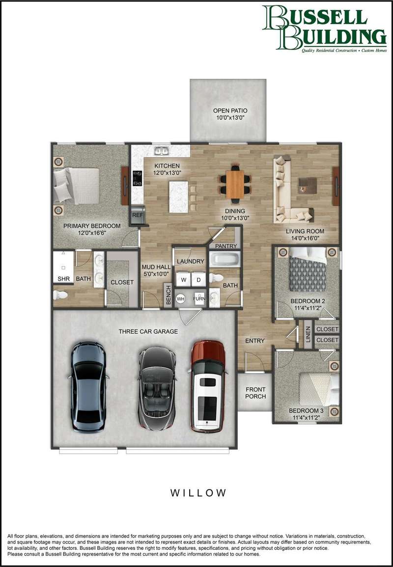 The Willow offers 1,620 sq. ft. of thoughtfully designed space, perfect for modern living. The open layout connects the living room, kitchen, and dining area, creating a comfortable space for family gatherings and entertaining. The master suite features a private bath, providing a peaceful retreat at the end of the day.With two additional bedrooms, there's plenty of room for family or guests. Enjoy outdoor living with the back patio, and take advantage of the spacious 3-car garage for all your storage needs. The Willow combines style and practicality, making it the perfect place to call home.*Photos may be of a similar home*