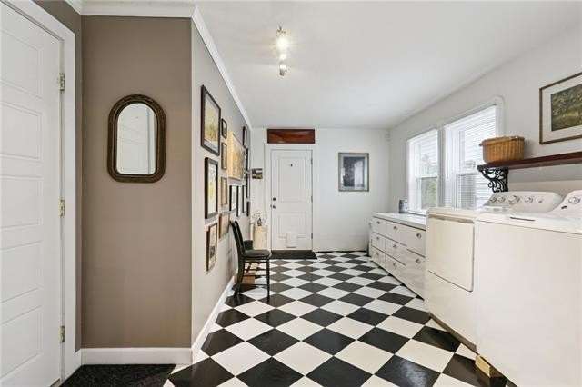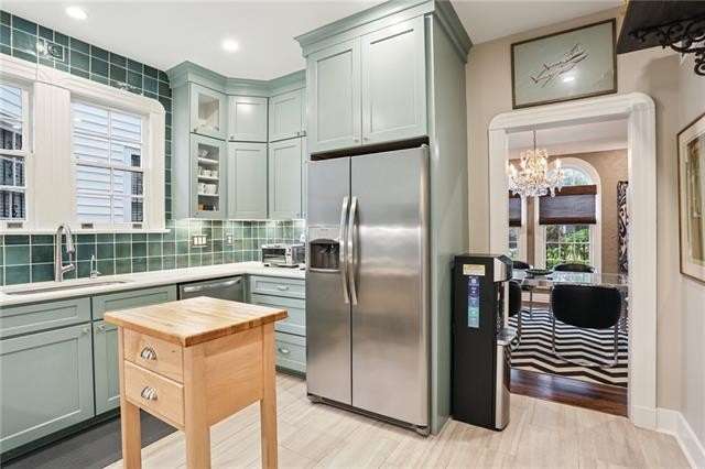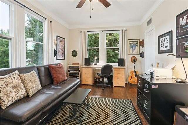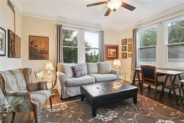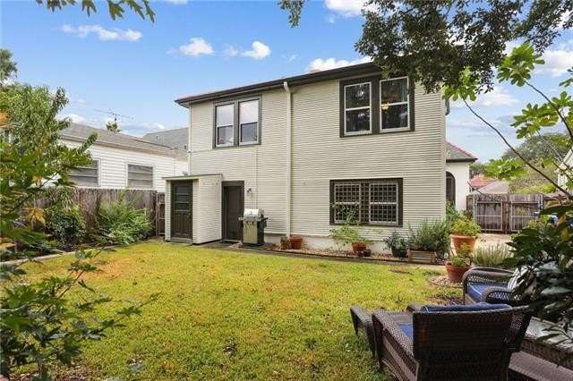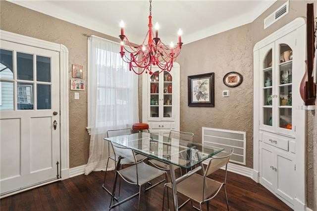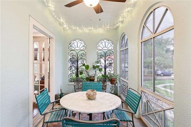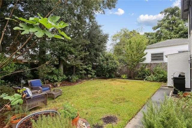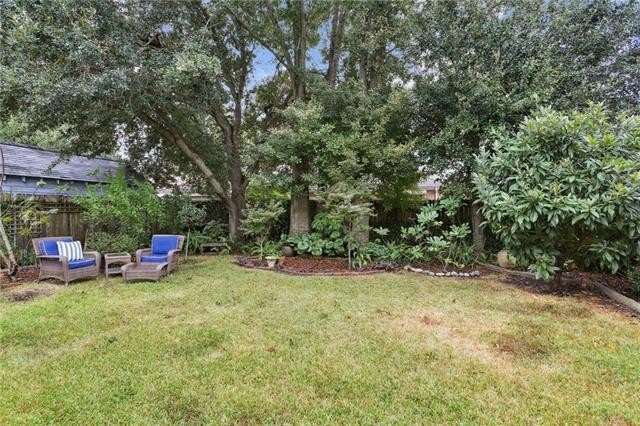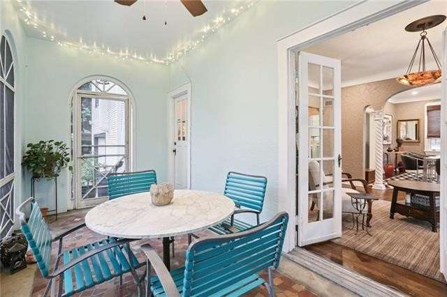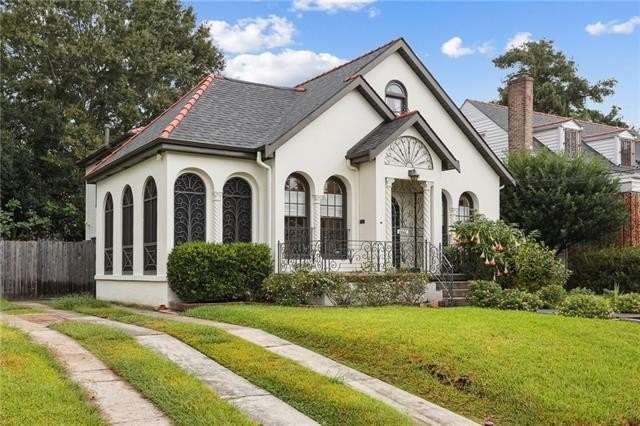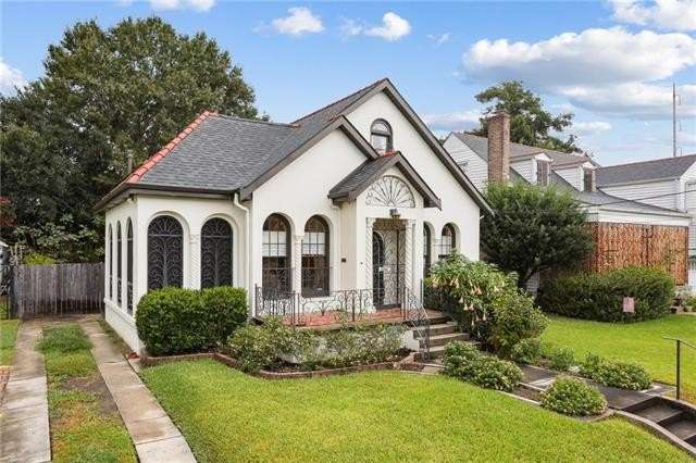A beautifully restored Spanish Revival in the heart of Gentilly Terrace, this classic 1920s home seamlessly blends architectural charm with modern comfort. Thoughtfully restored from top to bottom, it retains its original character with coved ceilings, plaster walls, detailed millwork, and gleaming wood floors, complemented by art deco–inspired baths and wrought-iron accents. Abundant natural light fills every room, including the gracious living and dining rooms, which are separated by an elegant arch and original columns. The living room opens to a large screened porch, ideal for relaxing or entertaining. The renovated kitchen offers modern functionality while maintaining the home’s historic appeal, and the adjacent breakfast room, featuring charming original built-ins, connects directly to the screened porch for seamless indoor-outdoor living. The oversized bedrooms provide exceptional comfort and flexibility, and the home offers excellent storage throughout, including a large laundry room with built-ins. Recent updates include new HVAC systems, updated electrical and plumbing, and a five-year-old roof. A long driveway provides ample parking and leads to an attached garage that could also serve as a workshop. The fully fenced backyard is beautifully landscaped with fruit trees and gardens. Set on a raised, terraced lot in Flood Zone X, the property has never flooded. Conveniently located near Gentilly Boulevard and Elysian Fields, this exceptional home offers quick access to the Lakefront, Mid-City, and the French Quarter, as well as excellent nearby schools and parks—an elegant example of New Orleans architecture restored to perfection.