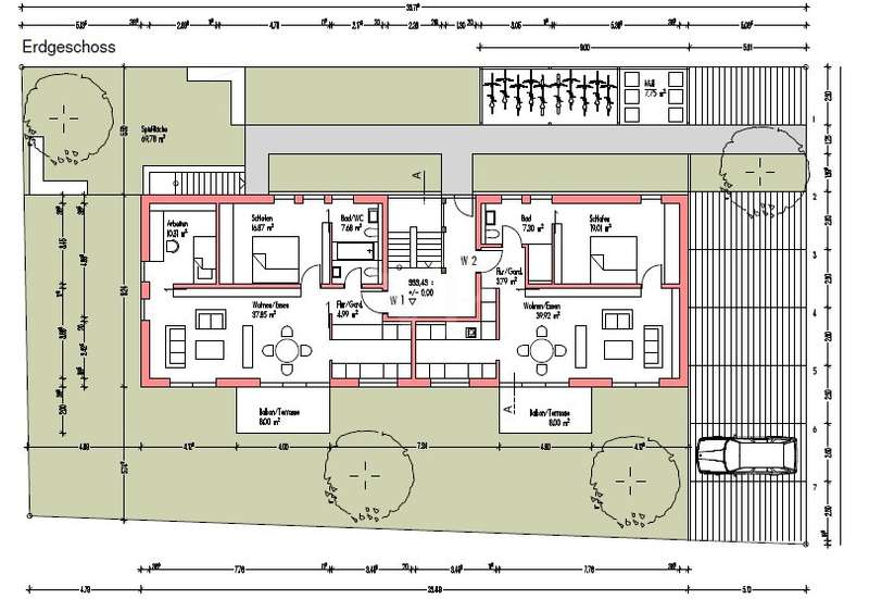Built in 2014, this apartment building is situated on a plot of approx. 670 m² in a quiet yet centrally located residential area. The building has a total living space of around 415 m², which is divided into four spacious 3-bedroom apartments and one 2-bedroom apartment. All units have a well thought-out layout and offer contemporary furnishings that guarantee long-term rentability. The property has been let continuously without vacancy since completion. The current net cold rental income is approx. 53,460 euros per year and offers further potential for growth due to the location and the quality of the fixtures and fittings. Thanks to the solid construction, the as-new condition and the fact that there is no elevator, the maintenance costs are extremely low, making this property a stable and secure investment. The apartments are characterized by bright rooms, open-plan living and dining areas and high-quality materials. Modern double glazing, easy-care floor coverings and central heating ensure efficient living comfort. The bathrooms have a timeless design and are fitted with high-quality sanitary ware. Each apartment has its own cellar room. There is also a communal cellar with space for baby carriages and garden tools, as well as a separate laundry room. The property is easy to maintain and offers a total of seven outdoor parking spaces. There is also a storage room on the property for bicycles and garbage cans. With a reliable rental structure, stable income and additional development potential, this apartment building represents a high-yield and future-proof investment. We would be happy to provide you with further information or arrange a viewing.