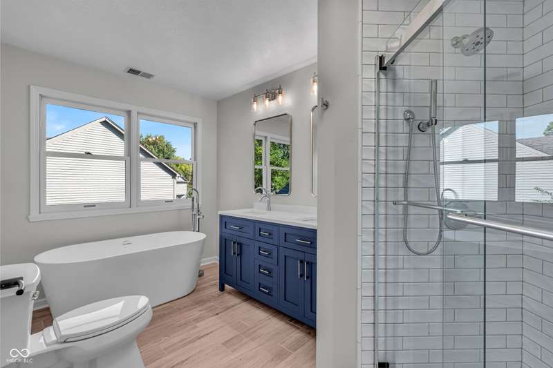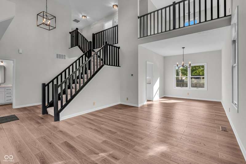 Beautiful completely updated home in prime Fishers location. 3 Bdr plus a loft and 2.5 baths. Main floor features wonderful open floor plan with vaulted and 9 foot ceilings. All new LVP flooring, fresh paint, light fixtures. Updated kitchen w/ new 42 inch slow close cabinets, dove tail drawers, quartz counters, LG appliances and a large pantry. Large light filled Family Room w/ 9 ft clngs and wood burning fireplace. Huge primary bedroom w/ walk in closet, updated bath w/ double sinks, beautiful shower and separate soaking tub. Updated hall bath w/ new tub, tile and vanity. Large 10x13 loft with skylight w/ solar shade overlooks living room. Exterior features all new professional landscaping and a new beautiful 20x14 paver patio overlooking large fenced in yard and new dimensional roof and gutters. This home has been completely updated and is a pleasure to show.