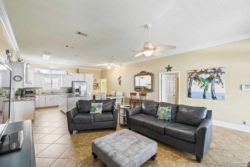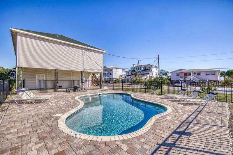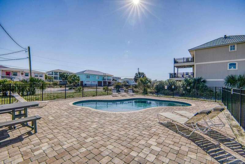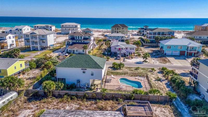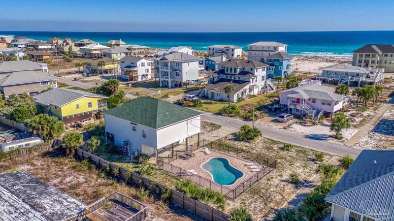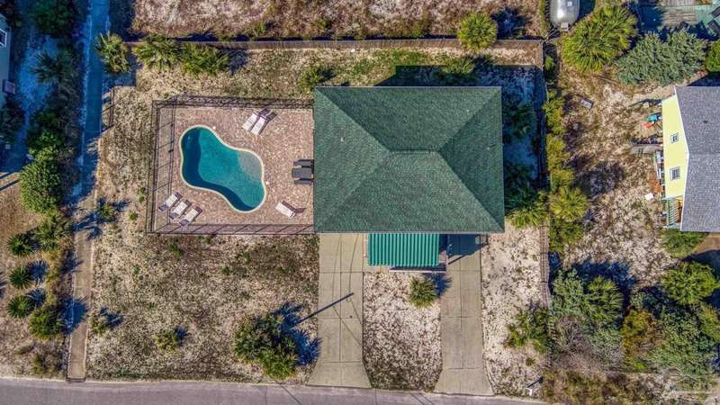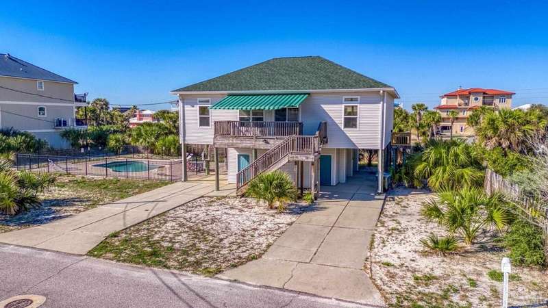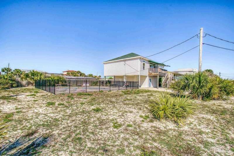 Escape to the Beach where your next Home Awaits! The spacious & light-filled open-concept living area seamlessly connects the kitchen, dining, & living spaces, creating a warm and inviting atmosphere for gatherings with family & friends. There are high ceilings, crown molding and tile floors throughout this split floorplan boasting 3 large bedrooms & 2 full baths, not to mention the downstairs game room & additional storage. This home is completely furnished & ready for you to enjoy or rent & sleeps 11 as furnished. The heart of this home is a large kitchen with island, granite counters & tons of cabinets. Whether you're preparing a casual breakfast or hosting a lavish dinner party, this kitchen is equipped to handle it all. Dive into your own private saltwater - heated - in-ground- pool, perfect for cooling off on warm days or enjoying a refreshing evening swim. The spacious pool deck offers ample room for lounging & entertaining, creating your own personal paradise. This property is an oasis of tranquility just steps from the pristine sparkling Gulf waters. Enjoy effortless access - a 1 minute away - with your beach cart on the walkway to the beach next to the house. Spend your days swimming, sunbathing, shelling, or simply strolling along the Emerald Green Waters. And when you return home - rinse off with the convenient outdoor shower. The soothing sounds of the waves will be your daily soundtrack. Embrace the coastal lifestyle with covered patio or when we get the occasional shower, the Playroom offers all sorts of games like ping pong, Pop-a-Shot & Foosball. The Playroom & covered patio are also great for al fresco dining or simply relaxing & enjoying the gentle sea breeze in the shade. Upstairs you can watch the water on the front deck where there is a remote awning for those hot & sunny afternoons. This home offers convenient access to all of the restaurants, shops & activities the Beach and Boardwalk has to offer! AC 2024, Roof 2023, Pool/Pool Heater 2021.