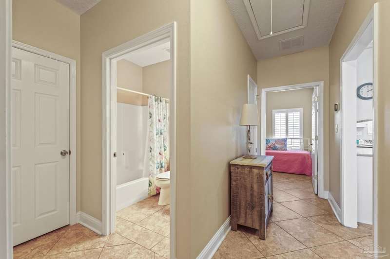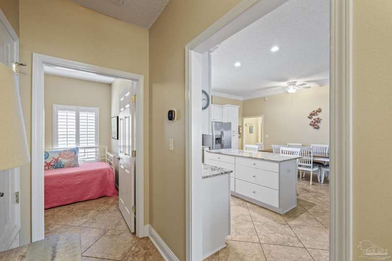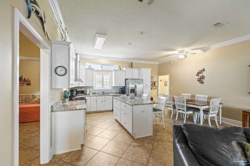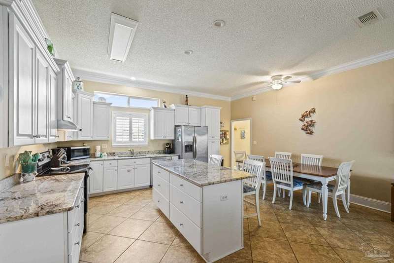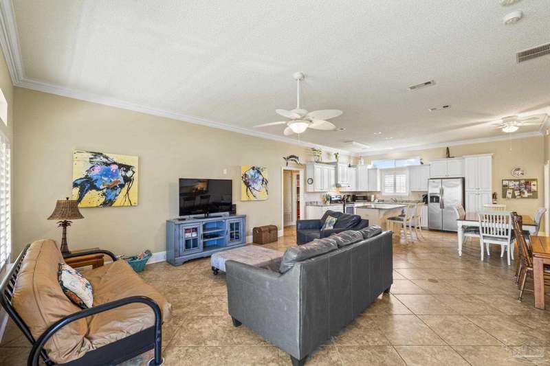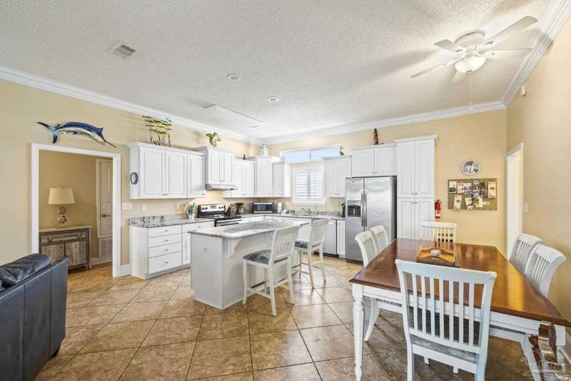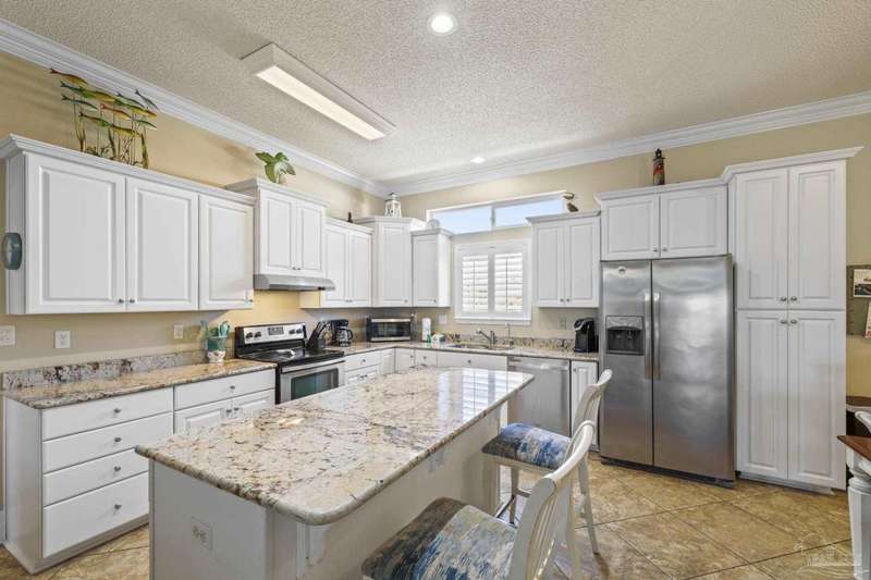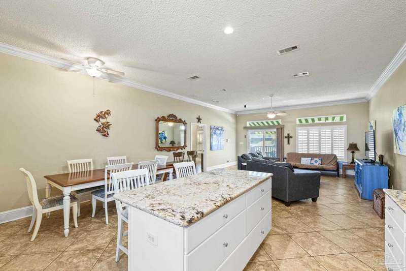 Escape to the Beach where your next Home Awaits! The spacious & light-filled open-concept living area seamlessly connects the kitchen, dining, & living spaces, creating a warm and inviting atmosphere for gatherings with family & friends. There are high ceilings, crown molding and tile floors throughout this split floorplan boasting 3 large bedrooms & 2 full baths, not to mention the downstairs game room & additional storage. This home is completely furnished & ready for you to enjoy or rent & sleeps 11 as furnished. The heart of this home is a large kitchen with island, granite counters & tons of cabinets. Whether you're preparing a casual breakfast or hosting a lavish dinner party, this kitchen is equipped to handle it all. Dive into your own private saltwater - heated - in-ground- pool, perfect for cooling off on warm days or enjoying a refreshing evening swim. The spacious pool deck offers ample room for lounging & entertaining, creating your own personal paradise. This property is an oasis of tranquility just steps from the pristine sparkling Gulf waters. Enjoy effortless access - a 1 minute away - with your beach cart on the walkway to the beach next to the house. Spend your days swimming, sunbathing, shelling, or simply strolling along the Emerald Green Waters. And when you return home - rinse off with the convenient outdoor shower. The soothing sounds of the waves will be your daily soundtrack. Embrace the coastal lifestyle with covered patio or when we get the occasional shower, the Playroom offers all sorts of games like ping pong, Pop-a-Shot & Foosball. The Playroom & covered patio are also great for al fresco dining or simply relaxing & enjoying the gentle sea breeze in the shade. Upstairs you can watch the water on the front deck where there is a remote awning for those hot & sunny afternoons. This home offers convenient access to all of the restaurants, shops & activities the Beach and Boardwalk has to offer! AC 2024, Roof 2023, Pool/Pool Heater 2021.
