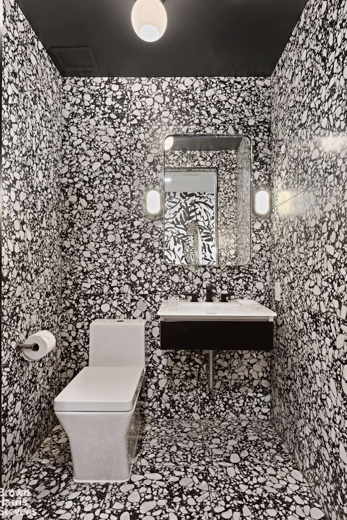 Rounding out this impeccable home is a full laundry room with a separate washer / dryer, a strikingly decorated powder room, high ceilings, and herringbone floors.