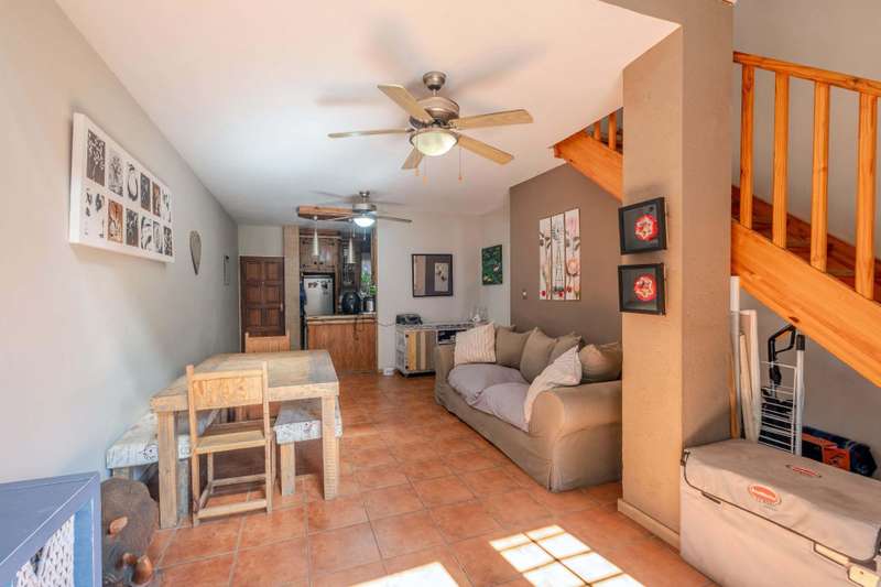 Exclusive Mandate with Chas Everitt. Nestled within a meticulously maintained and ideally located complex in Rietvalleirand, this charming townhouse offers a perfect blend of comfort and convenience. The ground floor boasts two generous bedrooms?Çöone with an ensuite bathroom?Çöalongside a well-appointed open-plan kitchen featuring timber cabinetry, a guest bathroom and a spacious living area. The living room opens directly onto a wonderful garden, providing a safe, expansive space for children and pets to play. Ascend to the upper level and you?ÇÖll discover a sophisticated undercover entertainment area complete with a built in braai. This area, seamlessly connected to the second upstairs living room, is sheltered by a thatched roof supported by Harvey Tiles?Çöcombining elegance with durability. Other than the entertainment area, the unit has a tiled roof. Additional highlights include: ?Çó A large double garage plus extra open parking and ample visitor parking ?Çó A pet-friendly complex ?Çó A communal pool and shared entertainment area ?Çó Convenient access to major routes, local schools, hospitals, and other essential amenities Experience the perfect townhouse lifestyle?Çöspacious, stylish, and set within a serene yet accessible location.