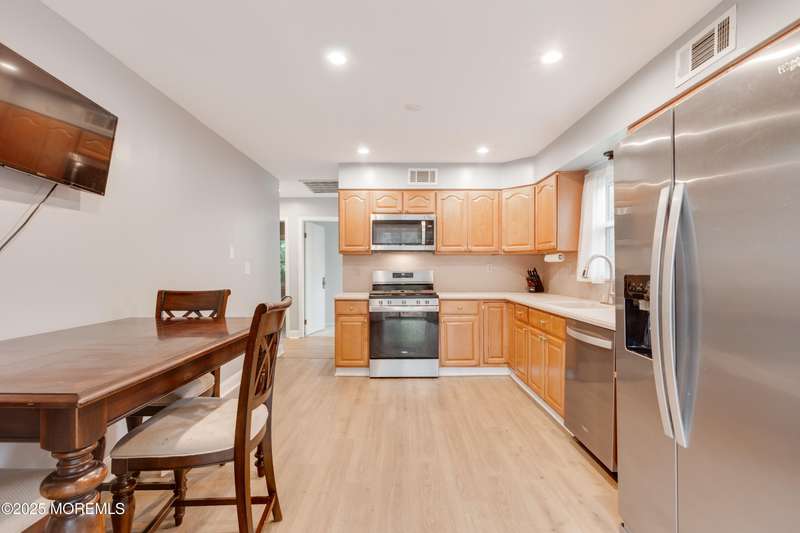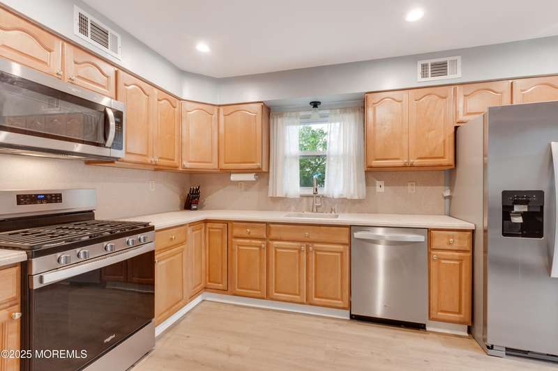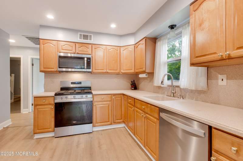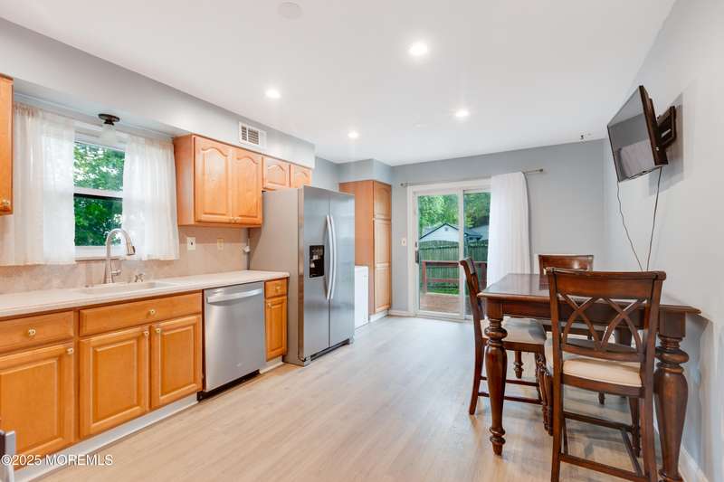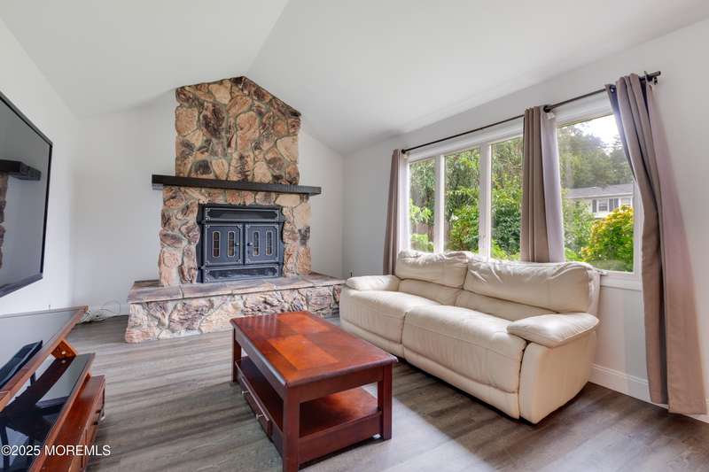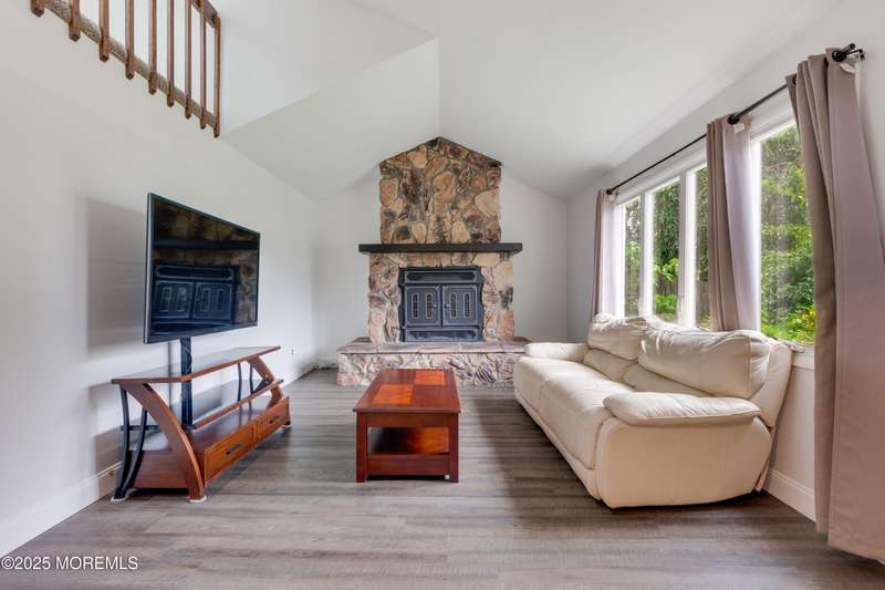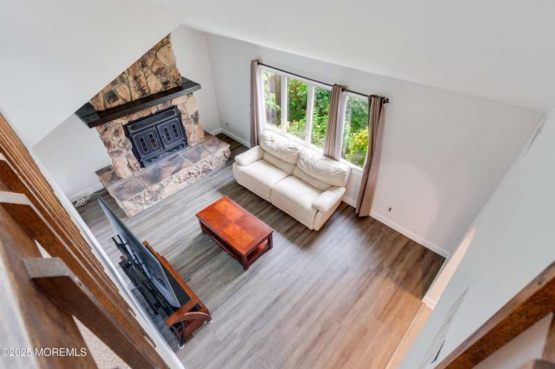 Welcome to this 4 bedroom, 2 full bathroom home. The living room features a stone fireplace while the eat-in kitchen boasts plenty of cabinets and countertop space, a full appliance package and sliders that open to a deck and patio perfect for outdoor dining and relaxation. The first floor boasts the primary bedroom, additional bedroom, full bathroom and office space for remote working. The second floor features two bedroom and full bathroom with balcony overlooking the living room. The fenced yard with mature landscaping provides privacy. Additional highlights include an attached garage with attic storage as well as an oversized driveway for off-street parking. Newer water heater, air conditioning and furnace. Don't miss the opportunity to make this wonderful property yours!
