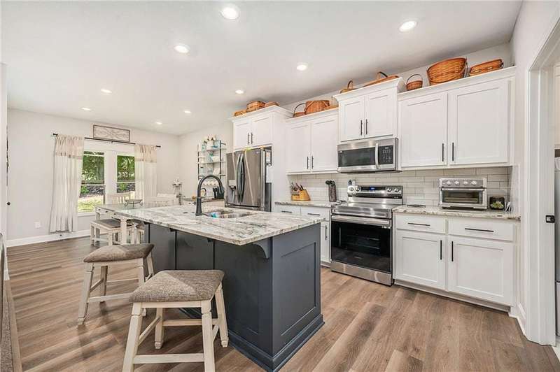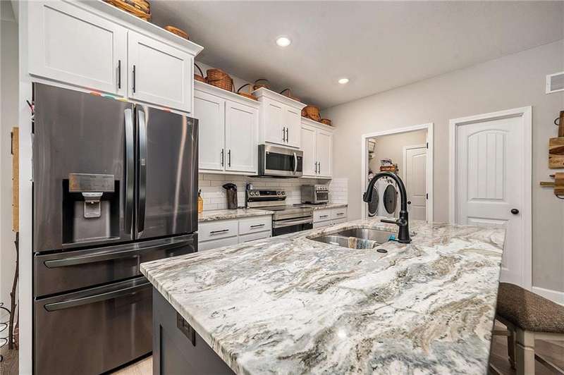 Major Price Reduction!! Motivated Seller! Built in 2024, this brand-new home combines modern design, thoughtful functionality, and a setting that feels both peaceful and connected. From the moment you step inside, youre greeted by beautiful contemporary finishes and a bright, open layout that feels welcoming.The spacious living room is filled with natural light from two large windows and features a cozy electric fireplace the perfect focal point for gatherings or quiet evenings at home. Flowing seamlessly into the kitchen, this open-concept layout makes entertaining effortless.The kitchen is a true showstopper with stainless steel appliances, granite countertops, sleek white cabinetry, and a walk-in pantry that adds both style and convenience. Just off the kitchen, youll find a dedicated laundry room on the main floor, making everyday tasks easier than ever.The dining area is designed for both daily meals and special occasions, with two large windows and access to the balcony, where you can enjoy morning coffee or evening sunsets overlooking the trees. The open flow of this living space truly makes it the heart of the home.The main-floor primary suite is a private retreat featuring a spacious bedroom, two windows for natural light, dual sinks, and a generous walk-in closet. Two additional bedrooms, each with their own walk-in closets, and a full bathroom complete the main floor, providing plenty of space for family, guests, or a home office.Downstairs, the fully finished basement expands your living space with a large recreation room perfect for a home theater, game room, or second family room. A fourth bedroom and full bathroom make this level ideal for guests or extended family. Youll also find a large utility/storage room, giving you all the space you need to stay organized.Outside, the property backs to a wooded area with a walking trail, offering a peaceful and scenic backdrop.