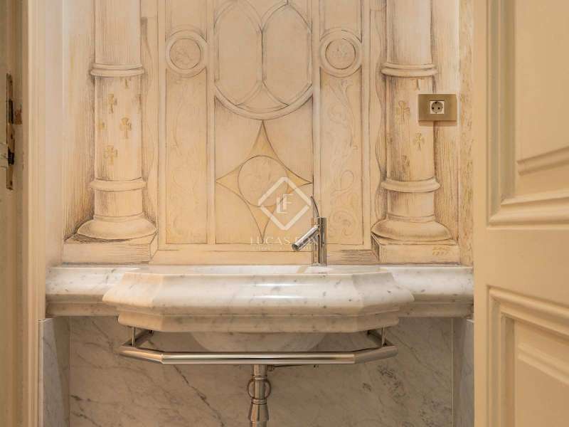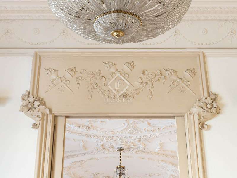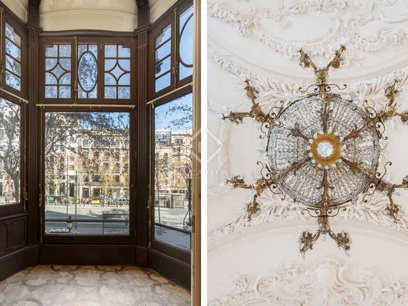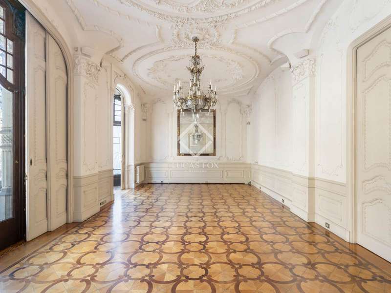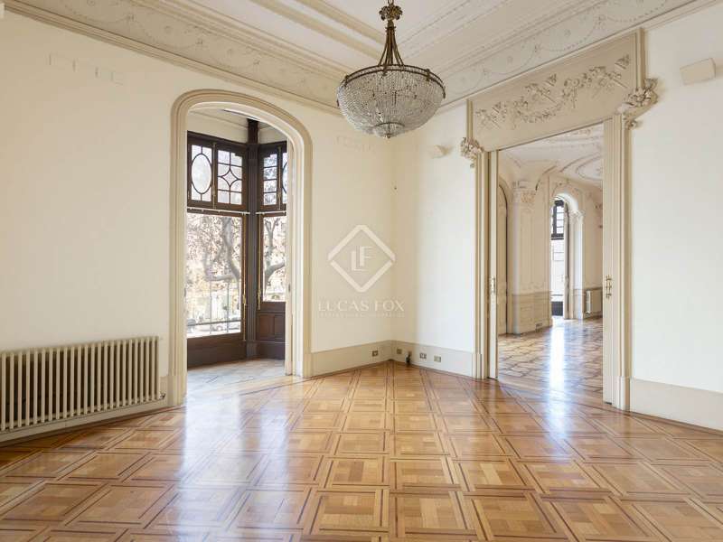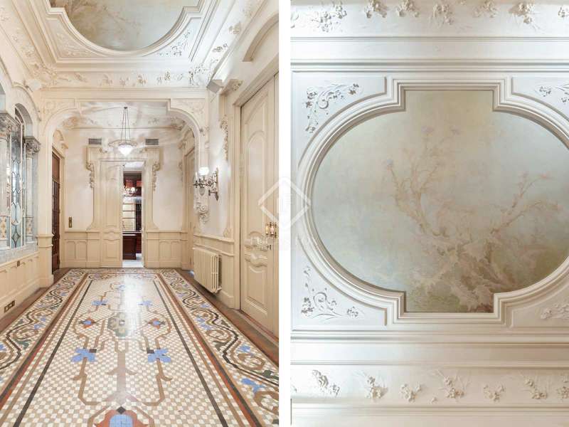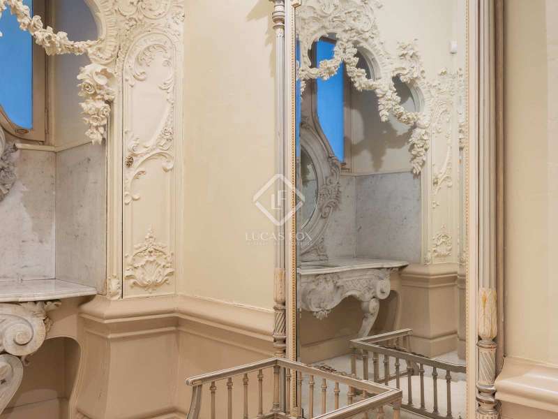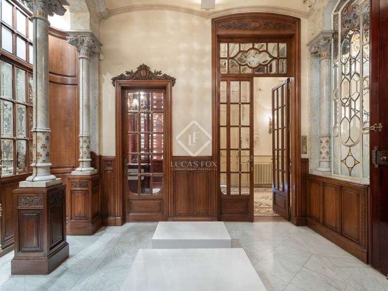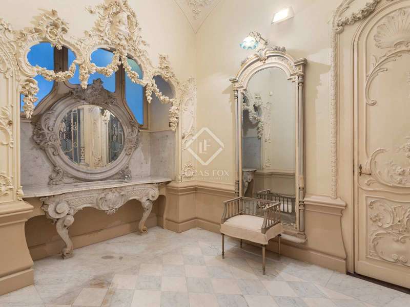 On the principal floor of what is quite possibly the most exquisite Modernista Palace on the city's most desirable street, Paseo de Gracia, we find this remarkable property for sale. Casa Palau Malagrida is a listed building by the early twentieth century architect Joaquim Codina I Matalí and it is an example of the Modernista movement in all of its glory. The façade of this spectacular palace features central balustrade and curved window seating areas, all embellished with decorative relief plasterwork and floral patterns. This impressive property measures some 632 m² (511 m² in register) and boasts a fabulous 311 m² palace garden with a beautiful central water feature and areas for relaxation and outdoor dining. The property occupies the entire Principal floor of the building and contains several rooms that may be used by the new owner as required. They are currently designed for use as 4 bedrooms, 6 bathrooms, a waiting room, library and an office. The master bedroom has its own bathroom and boasts a generous 50 square metre surface area. The 2 mezzanine floors house the children or guest bedrooms with a bathroom and the staff quarters which include a kitchen and are completely separate. The living area consists of a splendid living room and connected dining room with endless period features such as high ceilings with decorative mouldings, picturesque window seats and floor tiles. Between the dining room and the modern kitchen we find a unique room which has been completely lined with mahogany wardrobes and is designed for use as a bar area, the ideal place for entertaining guests. Amazing views of Paseo de Gracia can be seen from the front of the property and the stunning garden is at the rear, an oasis of peace, tranquillity and beauty at the heart of the city. Rarely does such a unique architectural gem come on to the market, making this a once in a lifetime opportunity to acquire an exquisite piece of Barcelona's Modernista heritage.