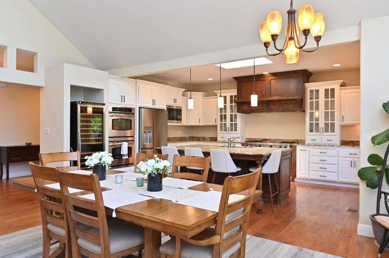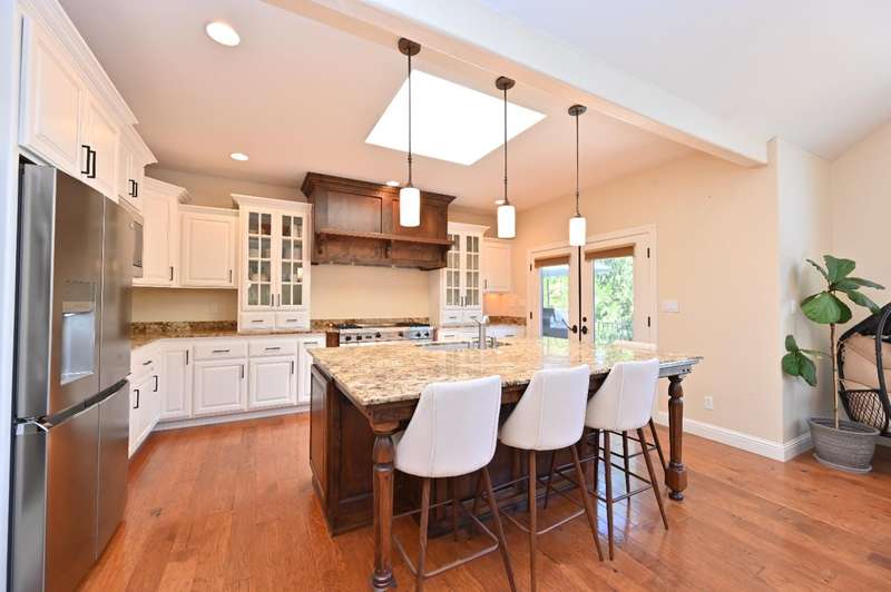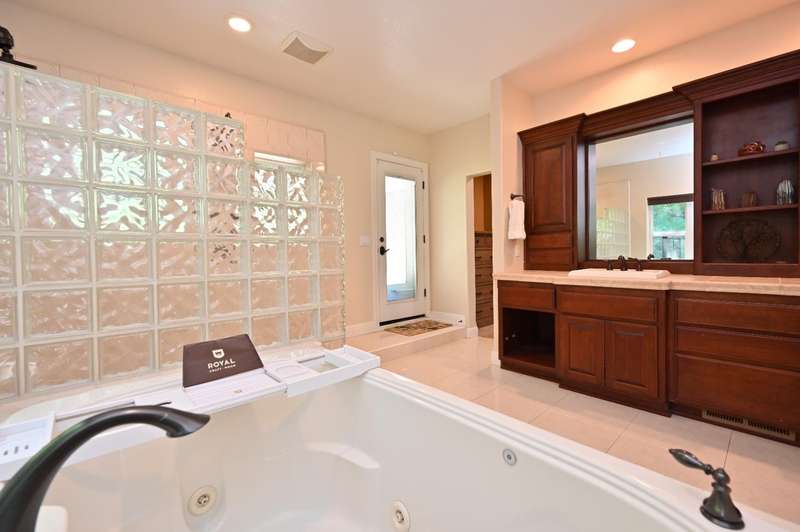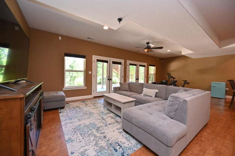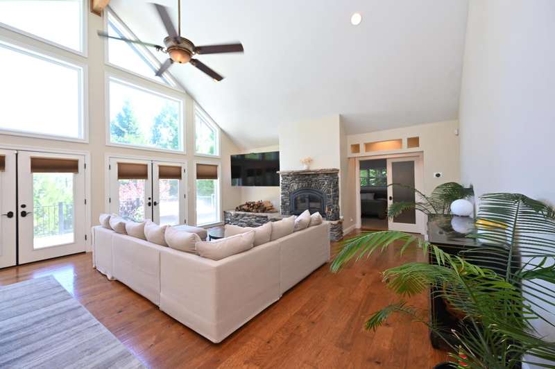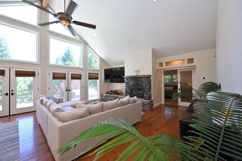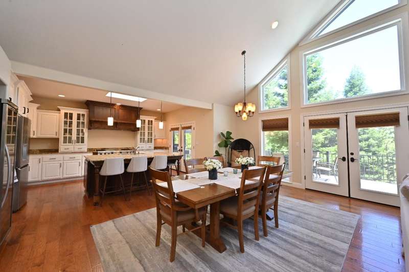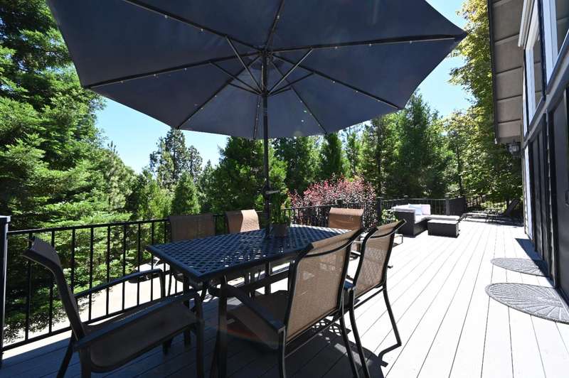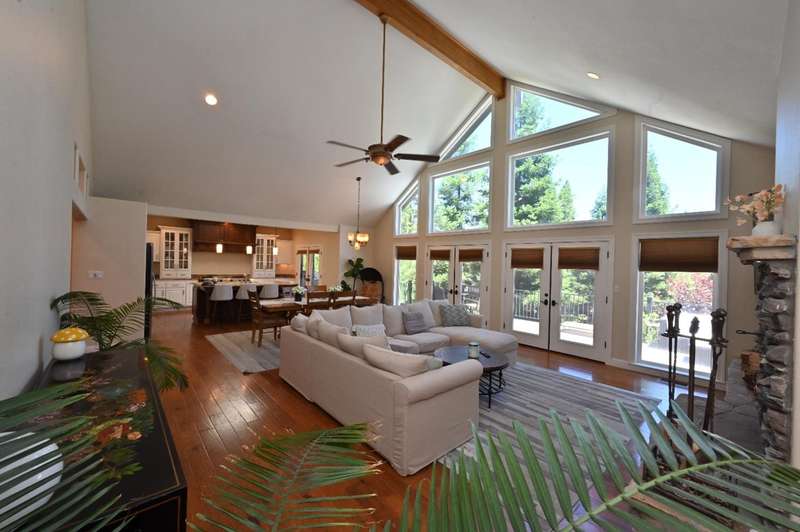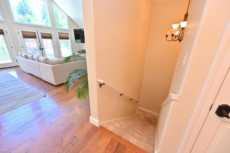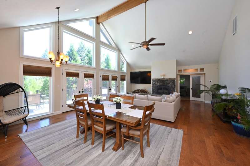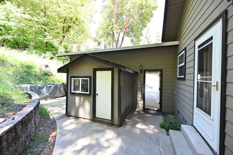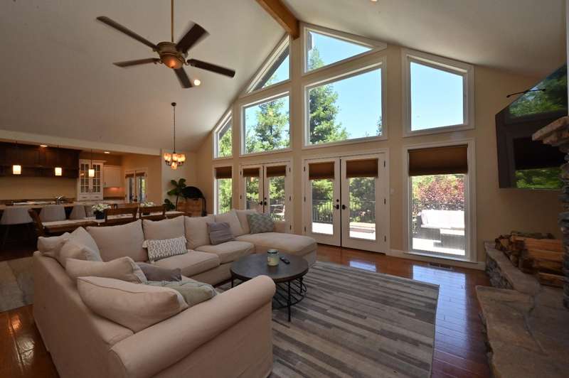 This stunning mountain retreat located is in the beautiful pines in Mace Meadows and offers tranquil views, classy upgrades, and flexible living spaces designed for comfort and style. Expansive floor-to-ceiling windows and double French doors lead to a Trex deck, flooding the home with natural light and seamlessly blending indoor and outdoor living. The versatile layout includes three bedrooms and three full baths, with a spacious lower level featuring a private bedroom and bath, a family/game room, a bar ideal for entertaining, and a gym area. The beautifully updated kitchen has freshly painted cabinets and newer appliances including a microwave, refrigerator, dishwasher, and disposal. Upstairs areas are freshly painted, adding to the home's modern appeal. The luxurious primary suite includes a spa-inspired walk-in shower, bathtub overlooking peaceful views, updated faucets, sinks and showerheads, and a large walk-in closet. Smart home features include an 18kW auto-start Generac generator, Ring cameras, a Nest thermostat and a tankless water heater. Oversized three-car garage, backyard shed and abundant storage. Located minutes from Tiger Creek, Kirkwood, Bear River, South Lake Tahoe, Fairplay/Shenandoah Valley Wine Country. Roof clearance done and uploaded.