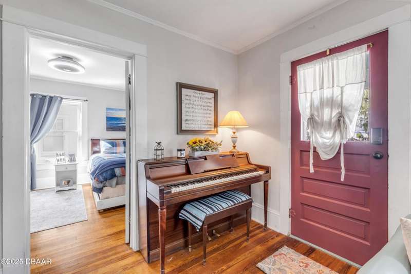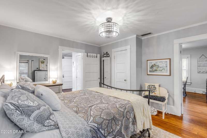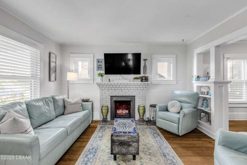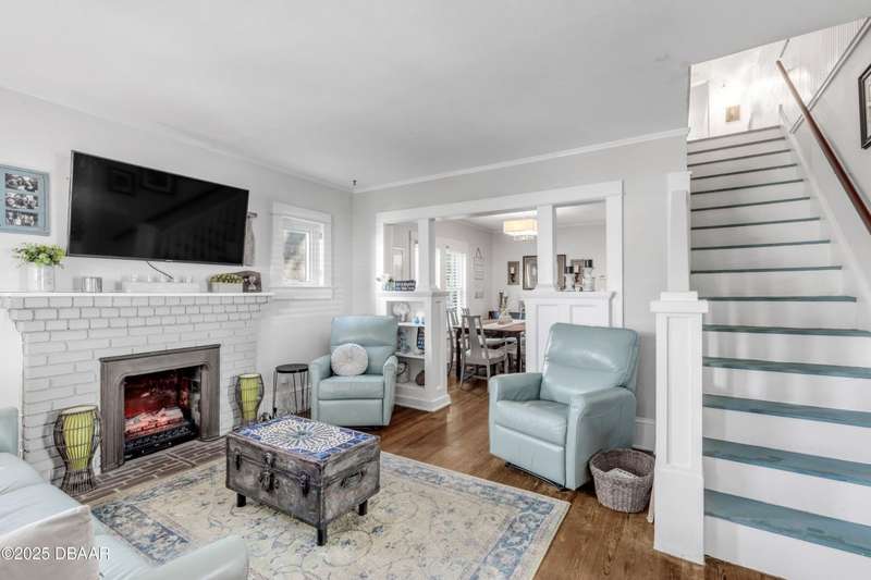Step into timeless charm and endless opportunity with this beautifully preserved 4-bedroom, 2-bath home in the heart of New Smyrna Beach's Historic District. Radiating coastal elegance and historic character, the property offers rare versatility with multiple zoning designationsincluding R5 multifamily, Bed & Breakfast overlay, and Arts Overlay District. Whether you dream of owning a boutique wine bar, cozy caf�©, art gallery, or simply a historic residence, the possibilities are endless. Eligible businesses may also benefit from a parking waiver, making it easier to bring your vision to life. Full of character inside and out, the home features original hardwood floors, a cozy brick fireplace, updated chef's kitchen with new appliances, and a recently renovated baths. Both the front and back porches have been rebuilt with new wood decking, perfect for enjoying sunrises or sunsets. Additional updates include Anderson windows, storm doors, and a new A/C system. The spacious backyard offers mature landscaping, a hot tub, and rear access. Just steps from shopping, dining, Riverside Park, and the Brannon Centerand minutes to the beachthis property is a rare opportunity to own a piece of history with modern comforts in one of the city's most desirable districts.