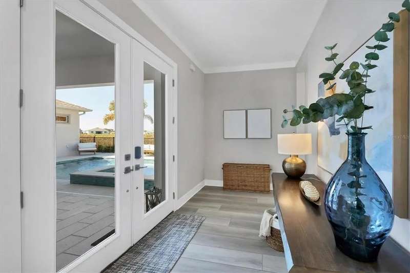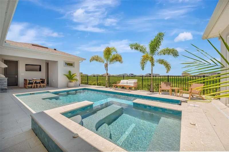 PRICE IMPROVEMENT NOW OVER $100,000.00 BELOW BUILD COST!!! Exceptional Quality & Privacy â?? Luxuriously Updated Courtyard Pool Home with Casita adn IMPACT GLASS THROUGHOUT!!! Welcome to 10391 Torchwood Sea Way, a beautifully upgraded 4-bedroom, 3-and 1/2 bathroom home situated on an exceptionally private preserve lot with no rear neighbors. This rare courtyard-style home features a stunning saltwater pool and spa with swim up bar and built-in stools â?? the perfect backdrop for outdoor entertaining and relaxation. Step into your own private oasis with a 1-bedroom, 1-bathroom casita and a fully equipped cabana-style outdoor kitchen, ideal for hosting guests, multigenerational living, or creating the ultimate home office or retreat. Inside, the open-concept living area boasts a designer kitchen with a massive center island, upgraded appliances, large walk-in pantry, and a pot filler â?? a dream for any chef. The luxurious primary suite offers private access to the courtyard pool and spa, and a spa-inspired ensuite bath with dual vanities, an oversized walk-in shower, and a gorgeous freestanding soaking tub. Located in the Mirada Community, a one-of-a-kind lagoon lifestyle destination featuring: A massive crystal-clear lagoon with sandy beaches, Live music and entertainment, Acres of resort-style water activities A vibrant atmosphere that feels like your own private resort every day.